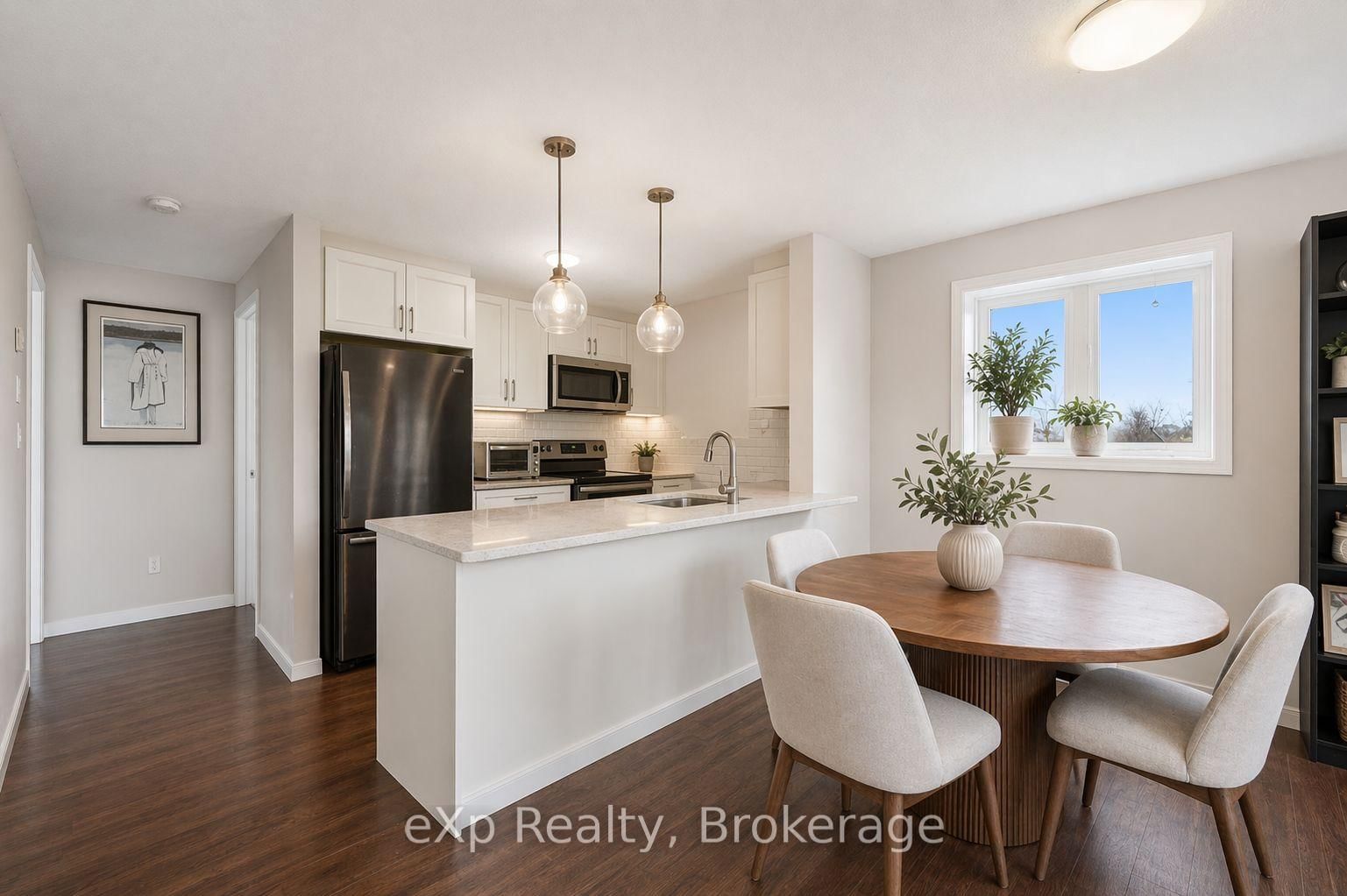 Welcome to your next chapter at 87-35 Mountford Drive-a place where first-time buyers stop scrolling and start imagining. The Stacked Townhouse on 87-35 Mountford Drive has 2 bedrooms, 1 bathrooms, and is located in the community of Grange Road .Tucked into a family-friendly pocket of Guelph and overlooking Peter Misersky Park, this bright 2-bedroom stacked townhouse offers a lifestyle that's hard to find at this price point. Enjoy your morning coffee on the front balcony and unwind in the evening on your oversized rear balcony with peaceful park views-two full-width outdoor spaces that truly extend your living area (because one balcony is nice... but two is better).Inside, the open-concept layout is both functional and inviting, with a seamless flow between the kitchen and living room-perfect for hosting, relaxing, or everyday living. The kitchen features a breakfast bar and modern lighting, creating a natural gathering space.Both bedrooms are generously sized and positioned at the back of the unit, each offering park views and direct access to the large private balcony-your own quiet retreat. A full 4-piece bathroom and in-suite laundry add everyday convenience.Located in a welcoming neighbourhood close to parks, schools, transit, and the Victor Davis Recreation Centre, this is an ideal opportunity to step into homeownership in a community you'll love.If you've been waiting for that perfect first home... this could be the one that opens the door.