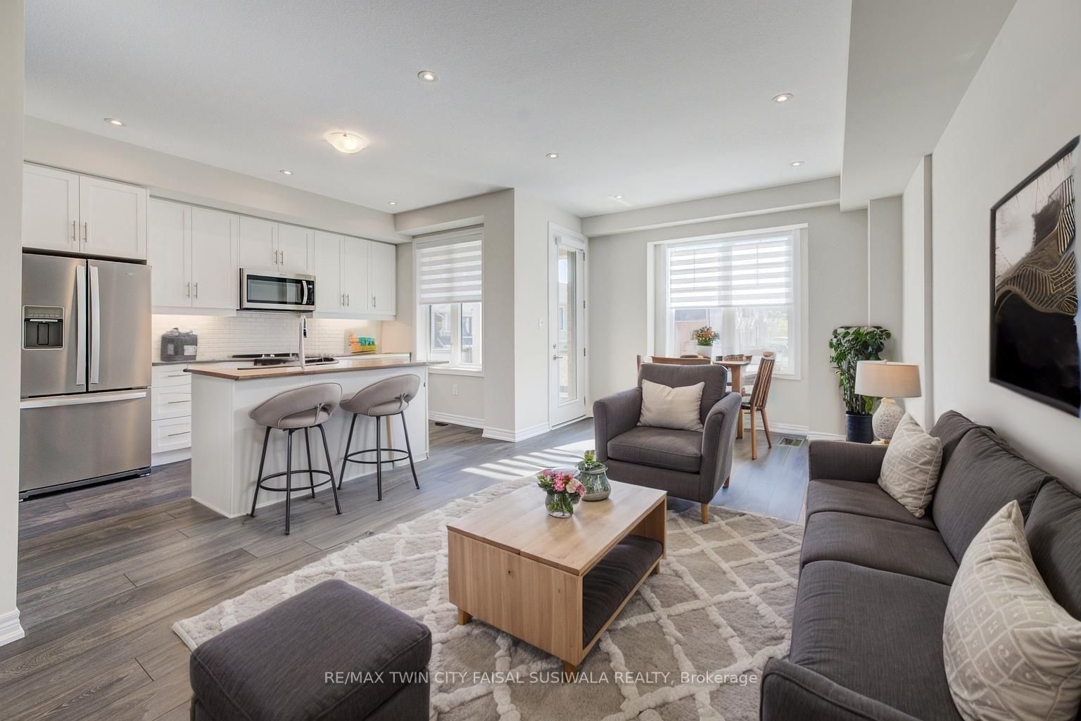 STYLISH. The 3-Storey on 116-10 BIRMINGHAM Drive has 2 bedrooms, 2 bathrooms, and is located on a 37.65 x 22.68 ft loton < .50 acres in the community of . SPACIOUS. STEPS FROM IT ALL. Welcome to your next chapter in this modern townhome-#116-10 Birmingham Drive, Cambridge. Tucked into a vibrant and walkable community, this home spans 3 thoughtfully designed levels and offers over 1,350 sq ft of sun-filled living space. From the moment you step inside, you're greeted by contemporary finishes and a bright, open-concept layout that feels both welcoming and functional. The heart of the home is the main living area-anchored by a sleek kitchen featuring granite countertops, stainless steel appliances, custom 39" upper cabinetry with LED lighting, and a breakfast bar perfect for casual meals or morning coffees. The adjoining family room flows effortlessly to a private, covered terrace balcony-an ideal spot to relax and unwind. Upstairs, the primary retreat is your private escape, complete with a walk-in closet, private balcony, and upgraded blackout blinds. A second bedroom offers ample space for guests, family, or a home office, while designer carpet and mirrored closets elevate the space. The 4pc bathroom completes this level. The ground level offers bonus flexibility with in-suite laundry and convenient interior access to the garage-plus a second private entrance and your own driveway. With two-car parking (garage + driveway), upgraded pot lights, smart storage, smart exterior lights, 200AMP panel, and custom window treatments throughout, every detail has been carefully curated. Located just minutes from shops, restaurants, parks, schools, and highway access, this move-in-ready home checks every box. Whether you're a first-time buyer, busy professional, or savvy investor-this is one you don't want to miss. Photos are Virtually staged.