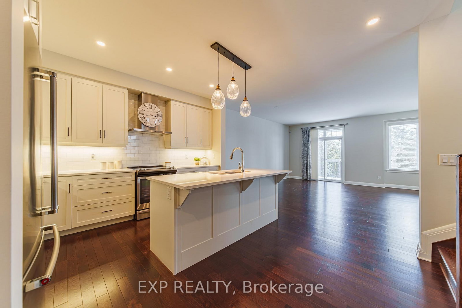 Welcome to this stunning, large end-unit townhome in the highly sought-after community of Stonebridge, offering no front or rear neighbours and a groomed tree view from the back on all three floors. The 2-Storey on 334 Kilspindie Ridge has 3 bedrooms, 3 bathrooms, and is located on a 117.81 x 26.05 ft lot in the community of Barrhaven - Stonebridge . Built by Uniform, this Lawrence model offers approximately 2,265 sq.ft. of beautifully finished living space with thoughtful upgrades throughout.The bright, open-concept main floor features hardwood flooring and a spacious living area anchored by a cozy gas fireplace controlled by a light switch. The gourmet kitchen includes quartz countertops, an extended island, soft-close cabinetry, and four stainless steel appliances, including a fridge with filtered water and automatic ice maker. Patio doors lead to a deck, perfect for entertaining.Upstairs, closets have been upgraded with double hanging, and the primary suite boasts a walk-in closet system and a luxurious ensuite. Large medicine cabinets enhance both bathrooms, and a convenient second-floor laundry adds function.The fully finished walk-out basement includes hardwood floors, a full 4-piece tiled bathroom, and patio doors leading to a private backyard. Outdoors, enjoy stone pathways, a 3-year-old 8'x10' shed, and perennial gardens with peonies, lilacs, magnolia, phlox, irises, hydrangeas, and roses.Additional features include blinds throughout, privacy film on select windows, a full retractable front door screen, Celebright roofline lighting controlled by a phone app, a security system, and all rooms freshly painted. Located minutes from shops, parks, and amenities, this home offers comfort, privacy, and exceptional living.