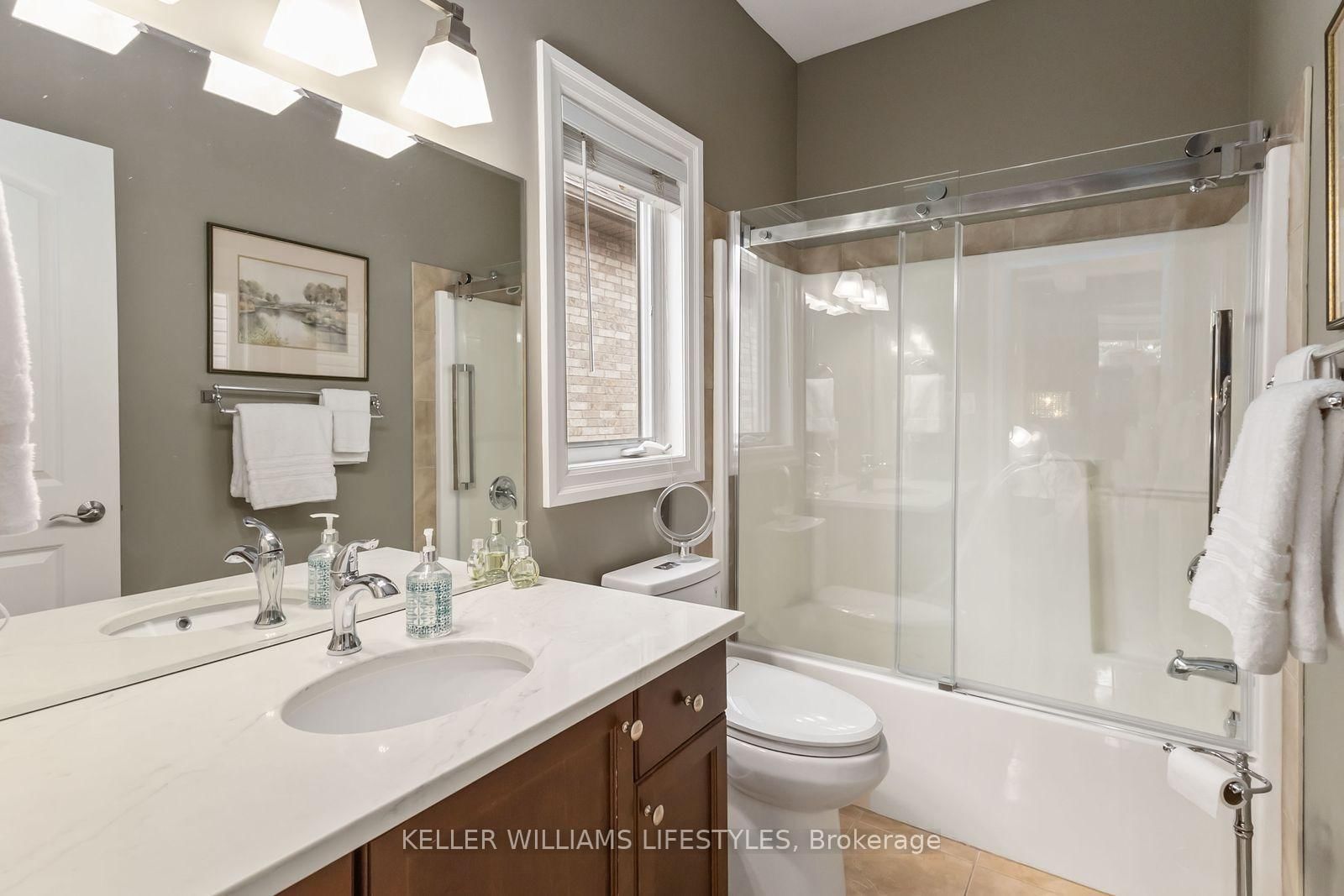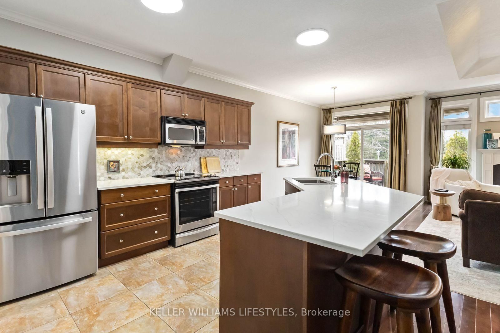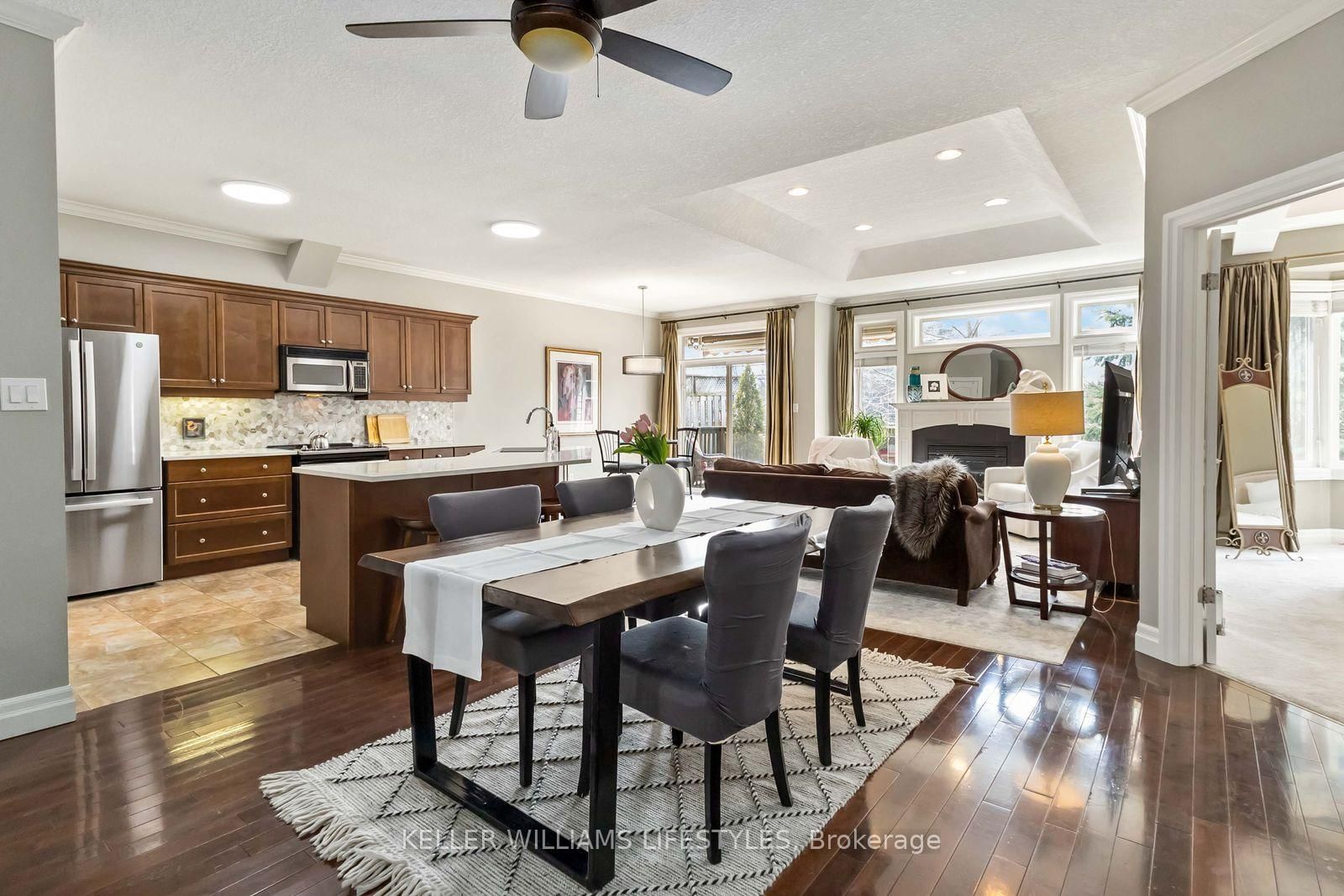 Where country serenity meets city convenience. The Bungalow on 9-1 St. John's Drive has 2 bedrooms, 3 bathrooms, and is located in the community of North B . Welcome to King's Gate on the Park, nestled in the sought-after Arva enclave. This updated end unit offers 2+2 bedroom, 3-bathroom bungalow townhome offers effortless one-floor living, within steps to the scenic greenery of Weldon Park. Designed with both style and practicality in mind, the main level features hardwood floors, tray ceilings, main-floor laundry, and a versatile den that can be enclosed for a second bedroom. The open-concept living space is warmed by a cozy gas fireplace and flows seamlessly into the updated kitchen-complete with quartz countertops, stainless steel appliances and a breakfast bar overlooking a bright, sun-filled dinette. Step out onto the west-facing deck to enjoy sunset views. The primary suite offers a spacious walk-in closet and a private 4-piece ensuite. The fully finished lower level extends your living space with two generously sized bedrooms, a 3-piece bath and a large family room-perfect for a home theatre, games area or entertaining. New carpeting (2026) adds comfort to the family room and one of the bedrooms. Roofs replaced 2025. Enjoy the benefits of Arva's lower property taxes and modest condo fees, all just minutes from Masonville Mall, University Hospital and Western University.