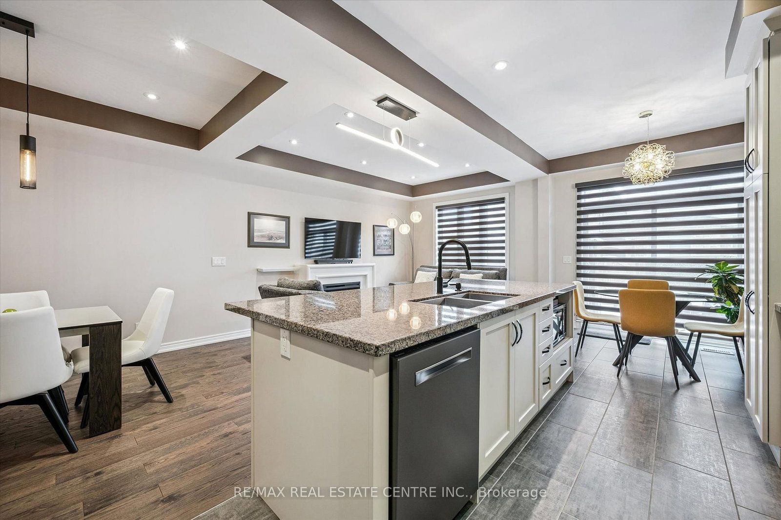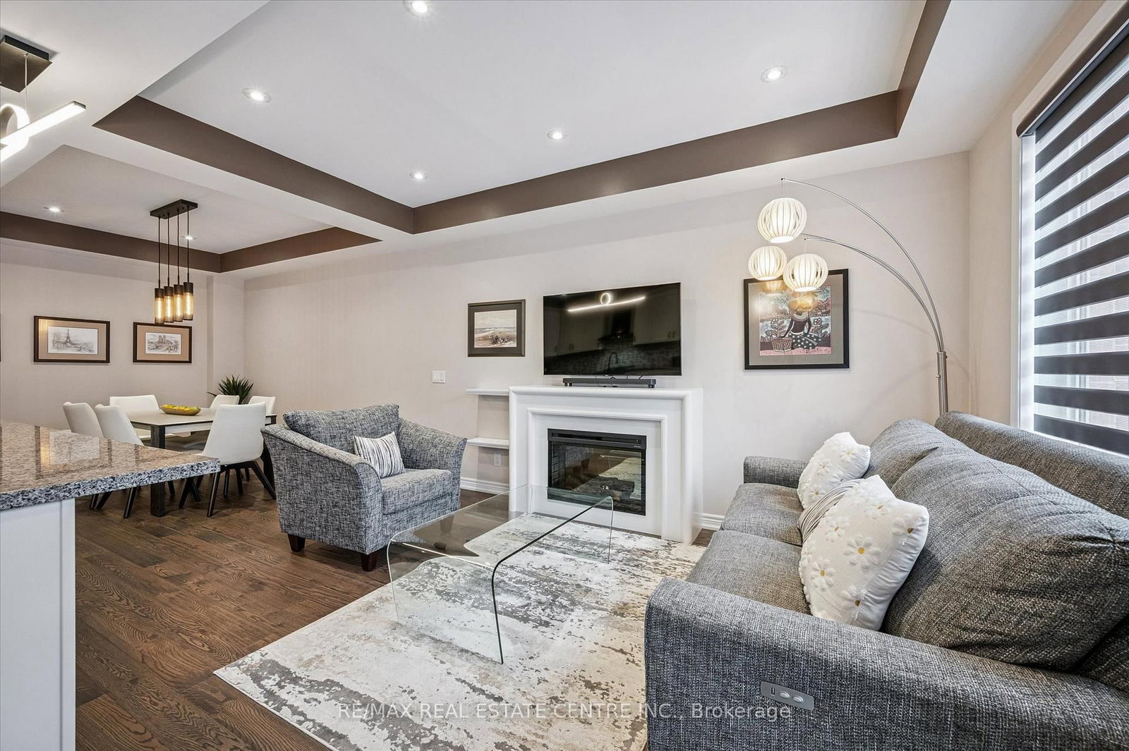 • Living Room: hardwood floor, Electric Fireplace, Pot Lights