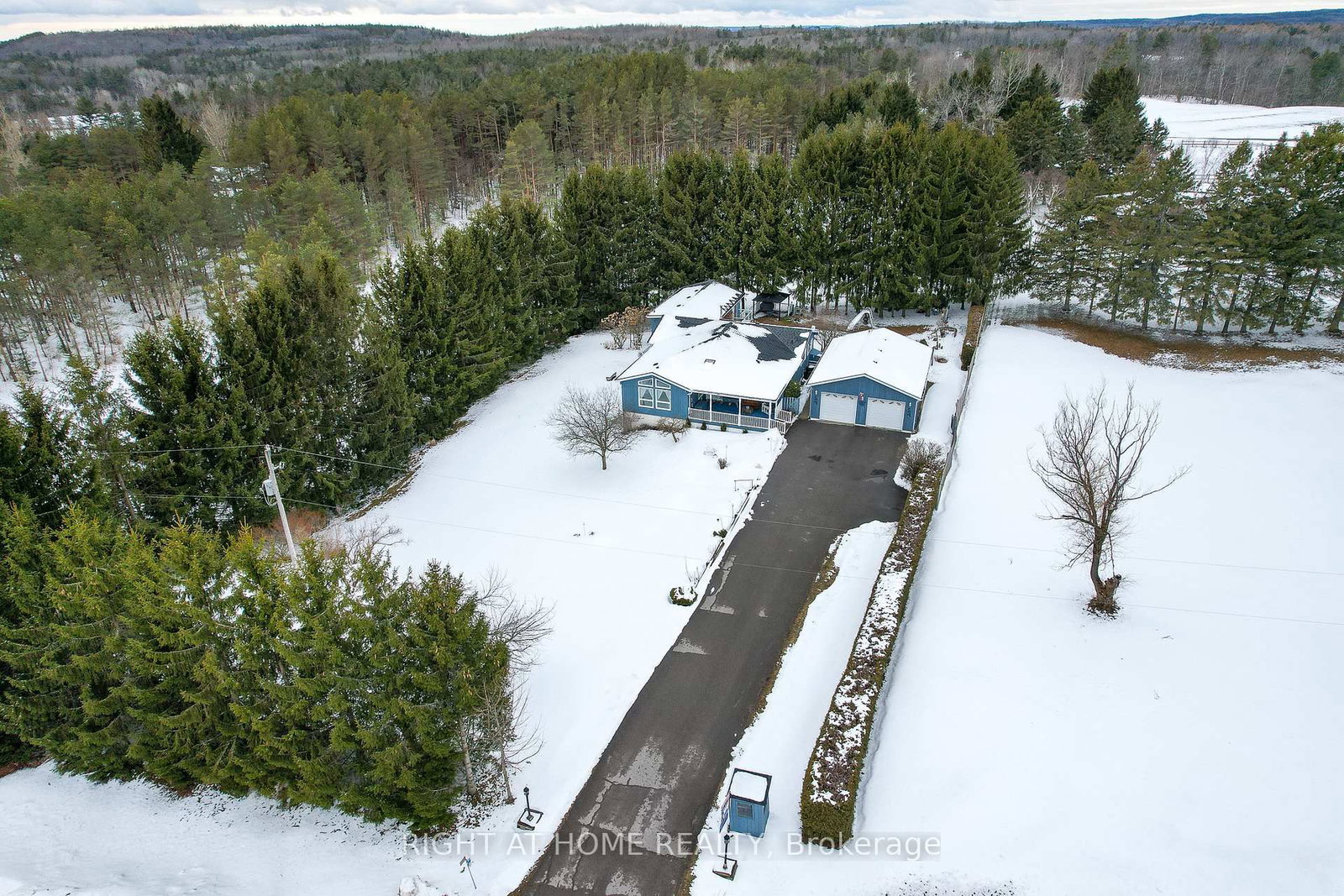 Exceptional meticulously maintained Multi-Family Country Home in a charming board and batten exterior with a matching large detached Workshop/Garage on Scenic Acreage - Minutes to Highways 407, 401 & 115 and the Ganaraska Conservation. The Bungalow on 9632 County 10 Road has 5 bedrooms, 3 bathrooms, and is located on a 308 x 152 ft lot in the community of Rural Port Hope . Welcome to your dream retreat! Nestled on a quiet country road and surrounded by rolling hills, picturesque horse farms and the Ganaraska Forest at your doorstep, this property offers a rare blend of privacy, natural beauty, and convenient access to major highways and amenities. Enjoy a true four-season lifestyle-hike, bike, ride, or snowmobile right from your doorstep and immerse yourself in the surrounding outdoor paradise. This spacious bungalow offers over 4000+ sq ft of living space with 5 total bedrooms across both levels is thoughtfully designed for both comfort and connection to nature, featuring three decks/balconies on the main level and a fully finished lower level with three walkouts, providing seamless indoor-outdoor living and stunning views of the private landscape. Inside, the home boasts bright, expansive principal rooms, vaulted ceilings, gorgeous pine wood plank floors, three full bathrooms, and a chef's kitchen complete with granite countertops and ample cabinetry. A full second kitchen offers excellent flexibility, allowing the home to function as two separate living spaces-ideal for multi-generational living or income potential. Step outside to your heated, in-ground saltwater pool, surrounded by beautiful perennial gardens-perfect for relaxing or entertaining. Additional features include a 26' x 36' insulated garage/workshop with heater, a tool shed, a large storage tent for all your recreational equipment, and a charming gazebo to enjoy the peaceful surroundings.