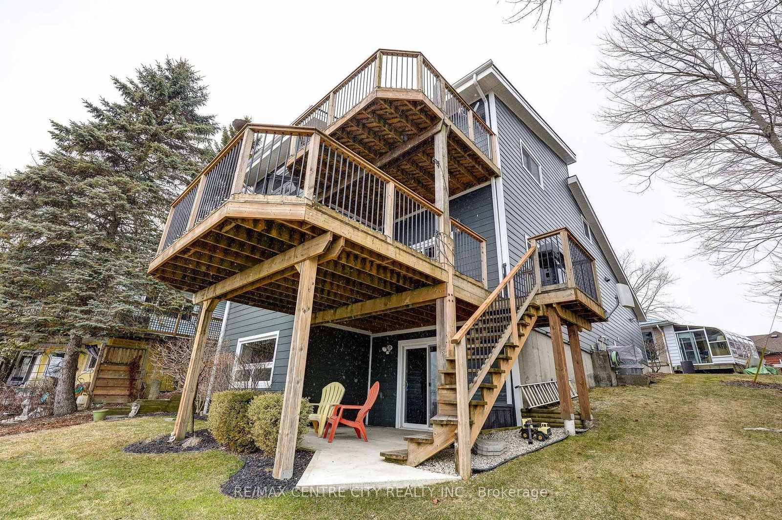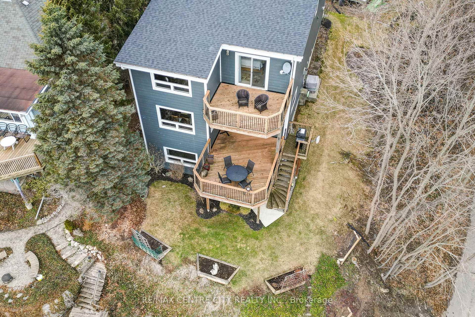 Welcome to 205 Cornell Drive, a stunning 2-storey home perched a top of Port Stanley offering breathtaking panoramic views of Lake Erie from every level. The 2-Storey on 205 Cornell Drive has 3 bedrooms, 3 bathrooms, and is located on a 92.12 x 29.94 ft loton < .50 acres in the community of Port Stanley . With exceptional curb appeal, a concrete driveway, and a double attached garage, this home makes a lasting first impression. Inside, you're greeted by a bright, open foyer that flows into a thoughtfully designed main floor. The garage entry leads to a practical mudroom with laundry, a 2-piece bath, and ample storage. The inviting living room features a beautiful stone gas fireplace and is filled with natural light, with sliding doors opening to a spacious deck overlooking the lake.Up a few steps, the dining area boasts a large picture window, perfectly framing the water views, while the kitchen offers a functional layout with a breakfast bar island for everyday living and entertaining. The open staircase is highlighted by dramatic floor-to-ceiling windows and a striking stained glass accent. The upper level features a serene primary suite complete with a walk-in closet, 3-piece ensuite, and private balcony with incredible lake views. Two additional bedrooms or office spaces and a 4-piece bath complete this level. The finished lower level adds versatility with a rec room, additional bedroom or den, and walk-out access to a third patio space. Located just minutes from the marina, local shops, restaurants, and Port Stanley's beautiful beaches, this is a rare opportunity to enjoy lakeside living at its finest.