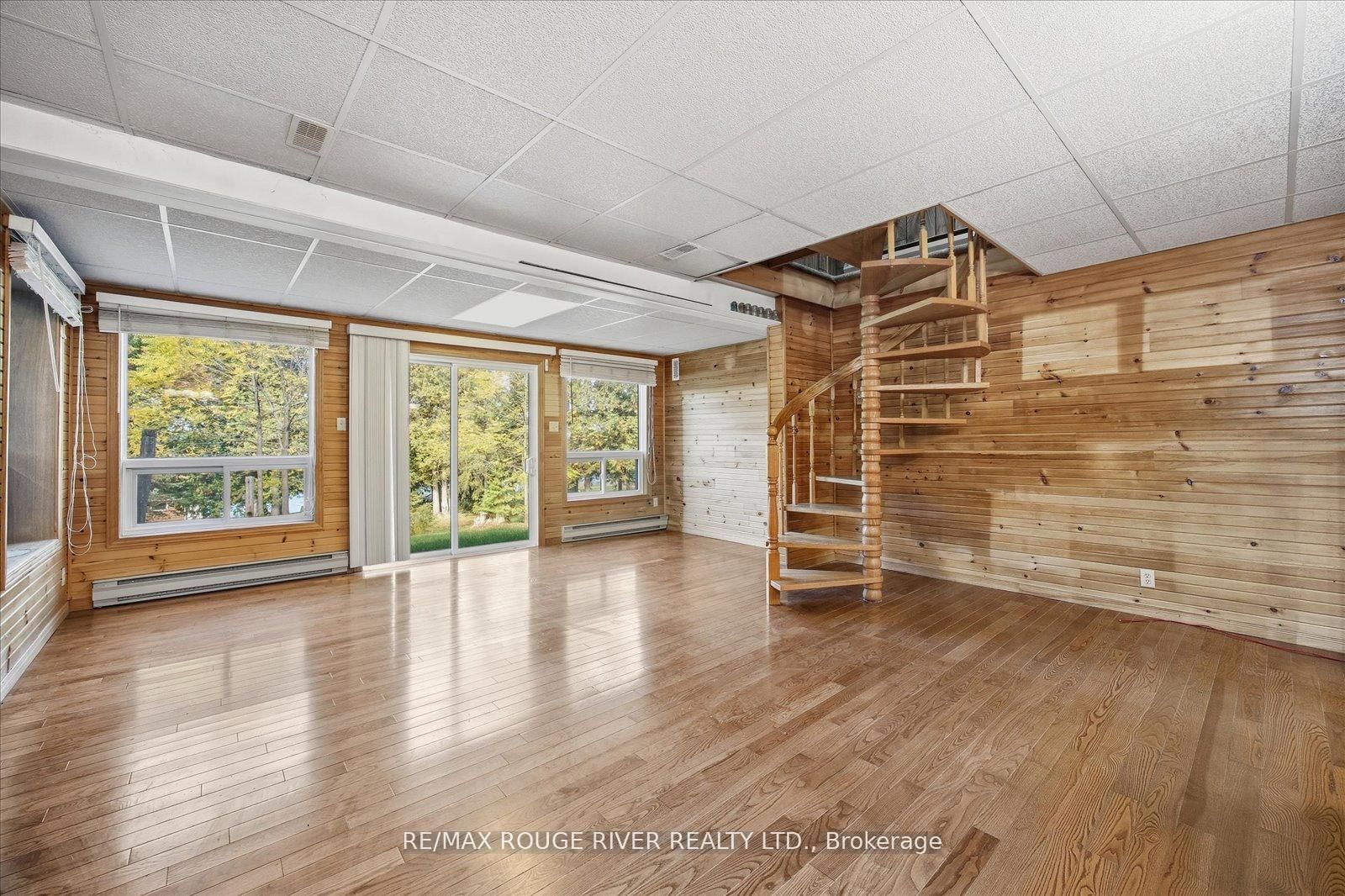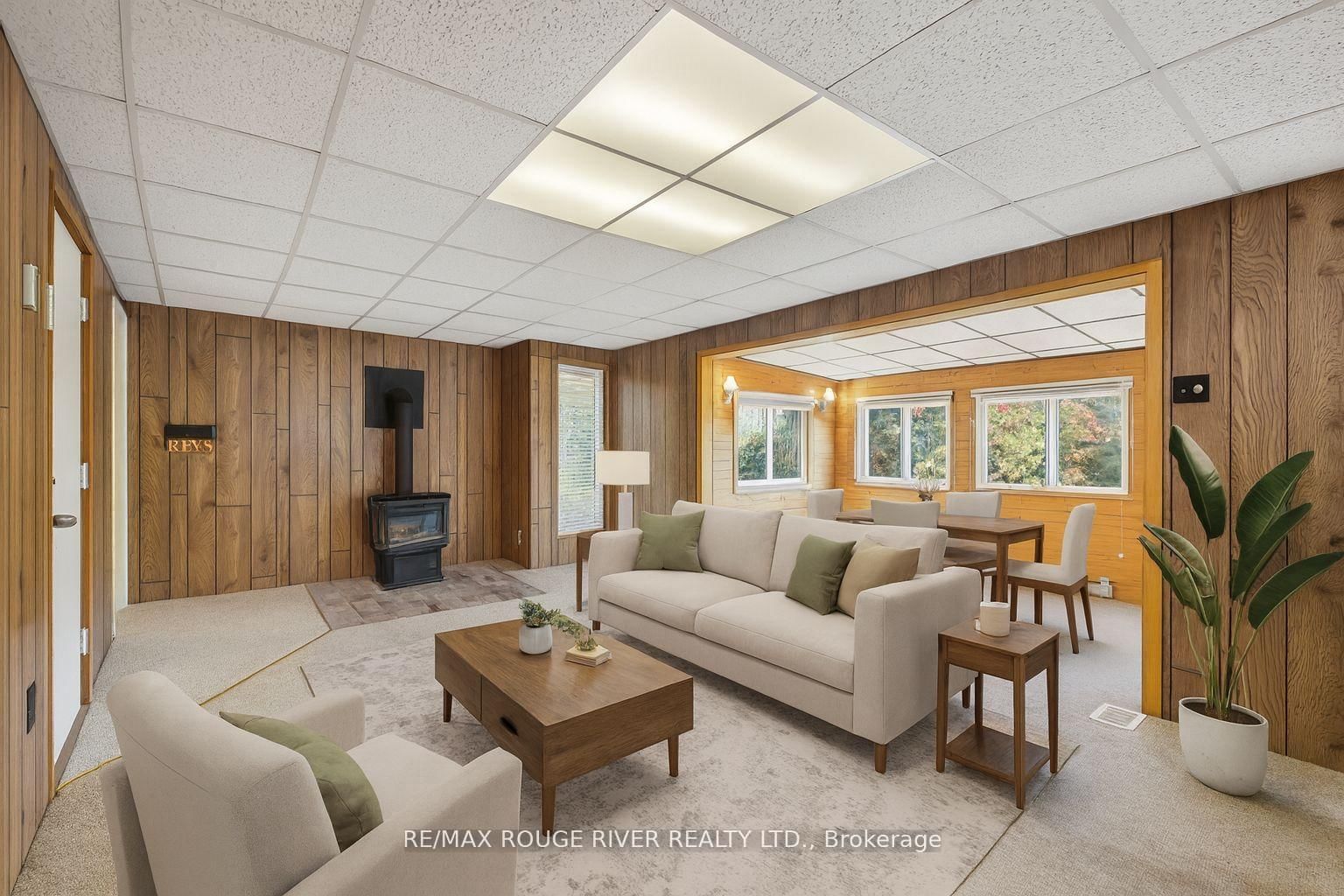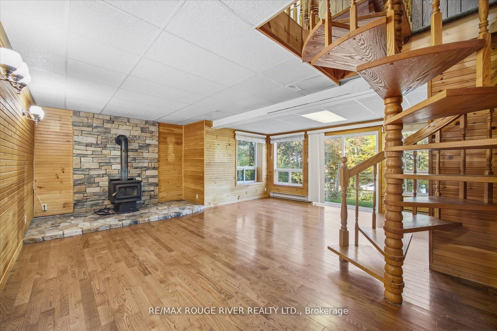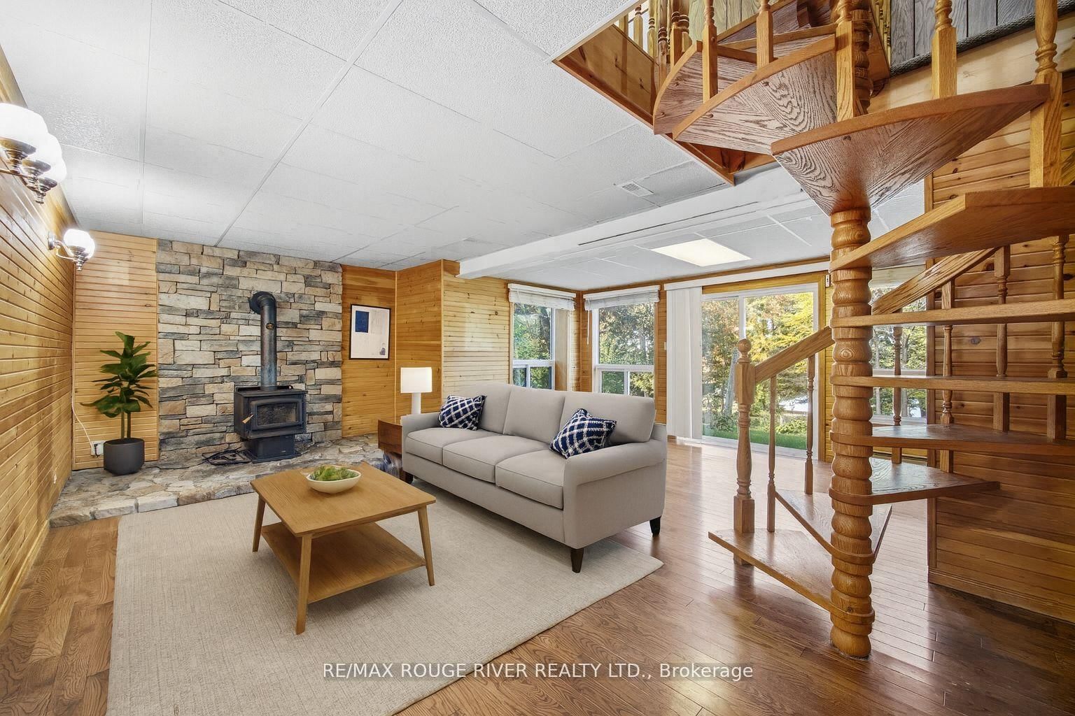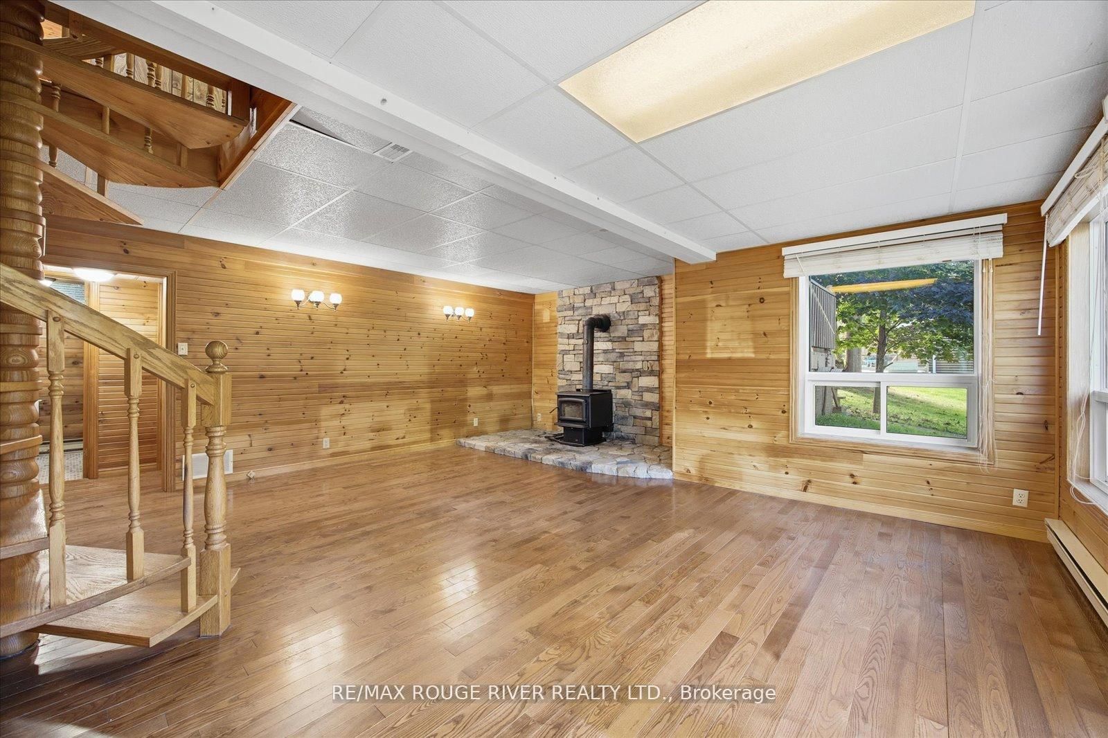 Welcome to this 3+1-bedroom detached walk-out bungalow in beautiful Omemee, offering direct waterfront living on the shores of Pigeon Lake! This home is full of character and charm, providing the perfect opportunity for new owners to personalize and make it their own. The Bungalow on 65 Cedarview Drive has 3 bedrooms, 2 bathrooms, and is located on a 253 x 100 ft lot in the community of Omemee . The main level features a cozy living room with a propane fireplace, a bright dining room overlooking the backyard and lake, and a functional galley-style kitchen ready for your custom touch. Three bedrooms and a convenient 2-piece bathroom complete this level. A stunning spiral staircase leads to the fully finished walk-out basement, featuring an additional bedroom, a 4-piece bathroom, a spacious recreation room with a wood-burning fireplace, and a workshop area. The sliding doors from the rec room open to a large backyard perfect for relaxing or entertaining. Enjoy the outdoors with your own dry boathouse, complete with a concrete ramp into the water and a wooden dock for lakeside enjoyment. A large double-car garage provides ample storage and parking. This home is heated by both forced-air propane and electric baseboard heaters, offering flexibility and comfort throughout the seasons. Whether you're looking for a year-round residence or a peaceful cottage getaway, this property offers the best of waterfront living with endless potential. Some photos have been virtually staged