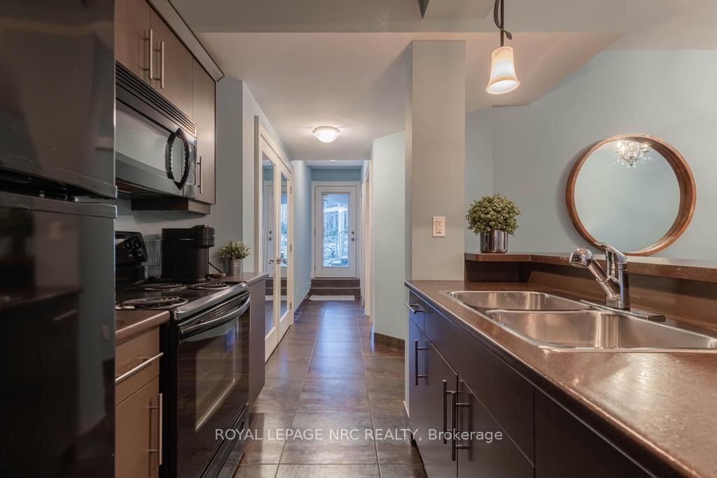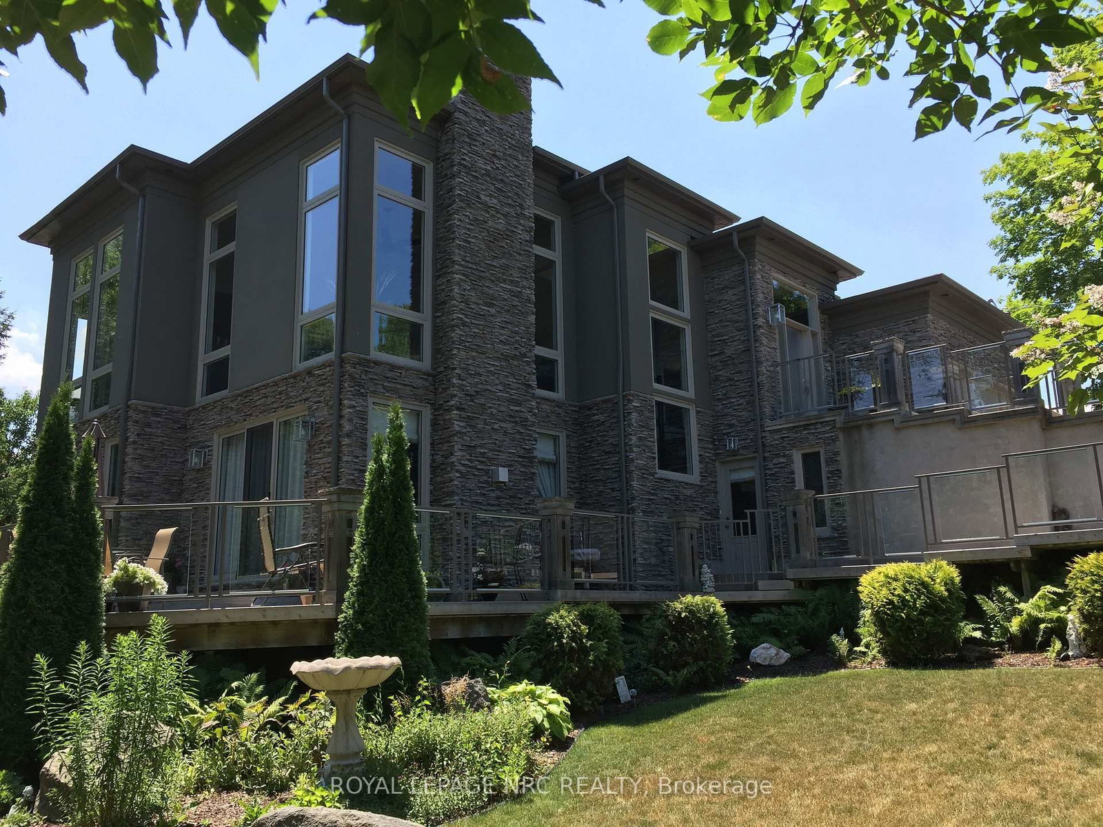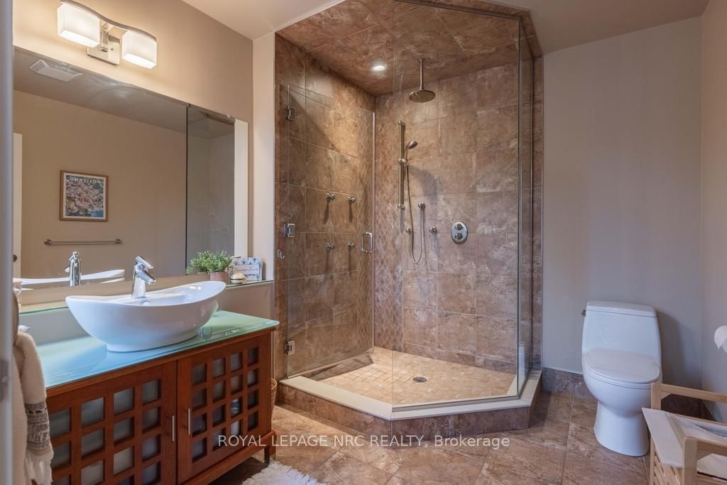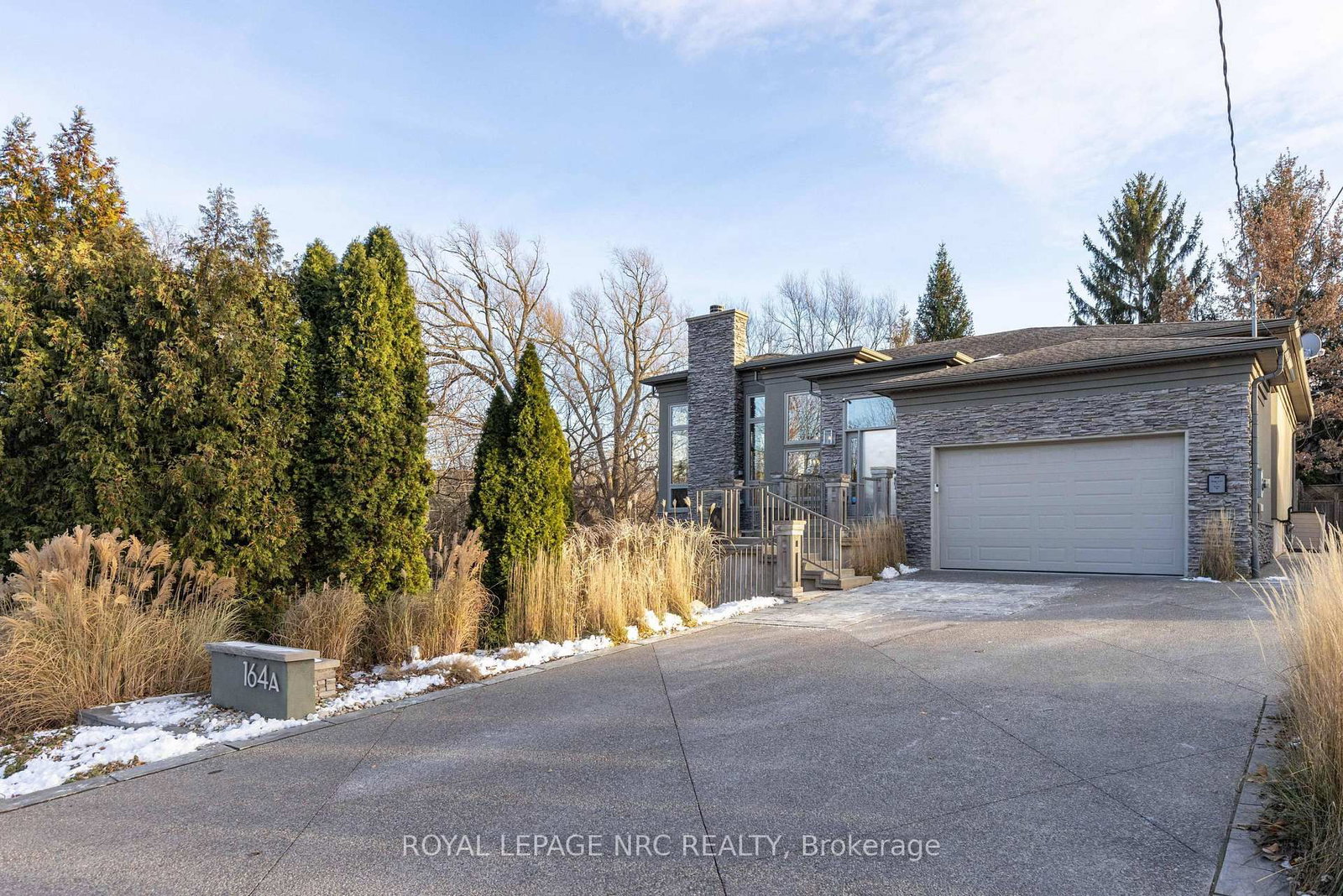 There is a calm that settles over 164A Lakeshore Road the moment you arrive, shaped by thoughtful architecture and a natural connection to the ravine below. The Bungalow on 164A Lakeshore Road has 2 bedrooms, 4 bathrooms, and is located on a 112.37 x 57.04 ft lot in the community of Vine/Linwell . Designed by Tom Arbek with Frank Lloyd Wright inspiration, the exterior carries a quiet elegance with a multi-level layout that follows the landscape with intention. That ease extends outdoors through decks that reach toward the ravine and gather shifting light throughout the day, while the inground pool rests among trees and bamboo accents. Perennials add beauty with minimal upkeep, for surroundings that feel effortless every season. Inside, light moves across the tall windows from sunrise into evening, guiding you through 3,235sqft of finished living space that feels both refined and welcoming. The foyer opens to the great room where height, warmth, and natural light anchor the home. The living area surrounds the fireplace and flows into the dining area and kitchen. Double built-in ovens, a glass cooktop, a bespoke smart fridge, a skylight, and a walk-out to the upper deck all contribute to a kitchen designed for gathering. The primary suite rests on this level with expansive windows, a walk-in closet, a 5-piece ensuite, and its own walk-out. A second bedroom, a 4-piece bath, and laundry and pantry complete the main level. The lower level offers flexibility to support different lifestyles. The in-law suite features tall ceilings, large windows, a family room with a fireplace, a kitchenette, and a bedroom with an ensuite. Another wing features a rec room, full kitchen, two bedrooms, and a spa-inspired bath with a steam shower, rain shower, and body jets. Both areas have separate entrances, creating opportunities for privacy, multigenerational living, dedicated guest quarters, or a home business. As a bonus, the basement offers 435sqft unfinished for storage. This home invites you to slow down, find inspiration in the landscape, and experience a way of living that feels both elevated and deeply grounded.