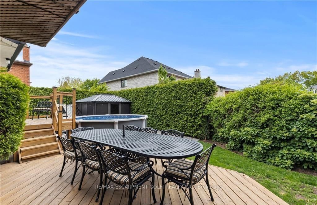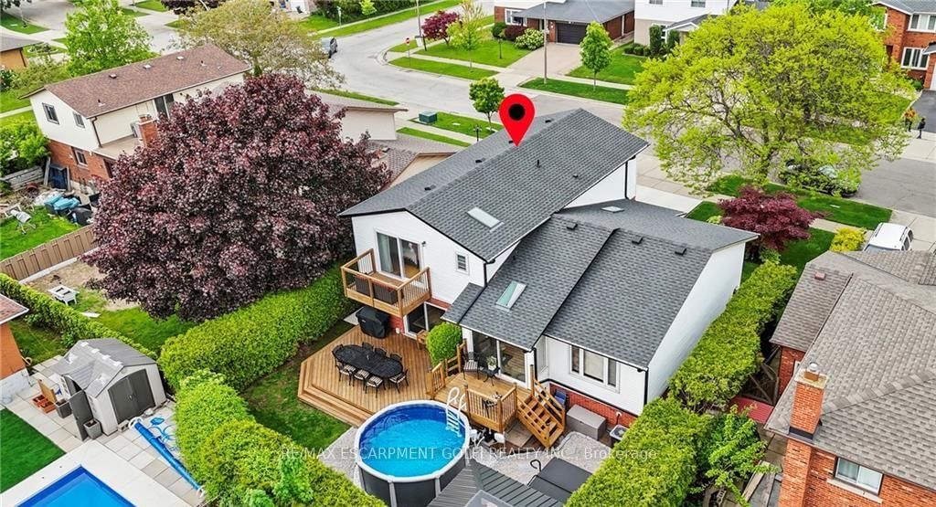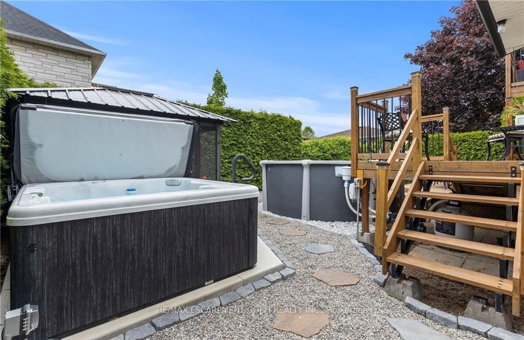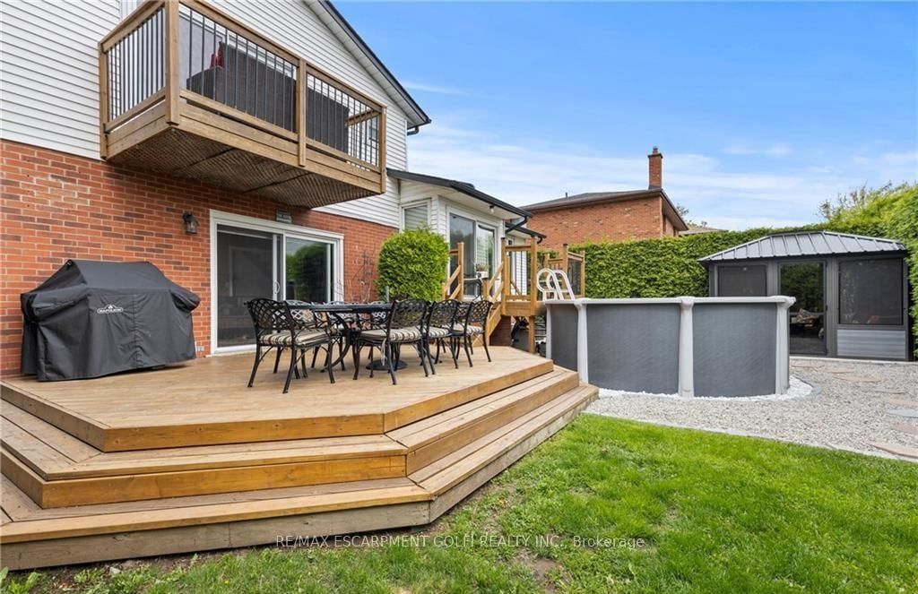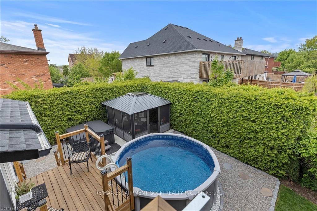 Beautifully maintained 4-bedroom, 4-bathroom side split located in one of Stoney Creek's most sought-after neighbourhoods. The Sidesplit 5 on 61 Seaton Place Drive has 4 bedrooms, 4 bathrooms, and is located on a 98.49 x 55.14 ft loton < .50 acres in the community of Stoney Creek . Offering over 2,000 sq ft of finished living space across multiple levels, this home provides a functional and versatile layout perfect for families and entertaining. The bright main level features two skylights, an updated kitchen with sliding doors to the backyard, and a welcoming family room with an cozy fireplace. The primary bedroom boasts its own private deck-an ideal retreat to relax and unwind. The fully finished lower level adds valuable living space, complete with a cozy gas fireplace and an impressive bar, perfect for hosting or enjoying quiet evenings at home. Step outside to your private backyard oasis, featuring a two-tiered deck, saltwater above-ground pool, hot tub, and a gazebo with removable windows for extended seasonal enjoyment. Additional highlights include a double garage, ample driveway parking, and a convenient location close to schools, parks, and major routes. A true move-in ready home offering comfort, space, and lifestyle.