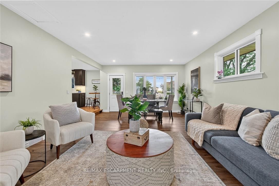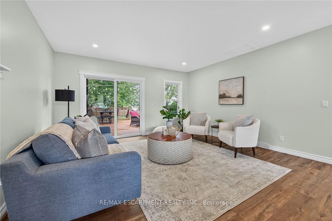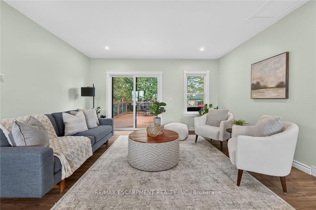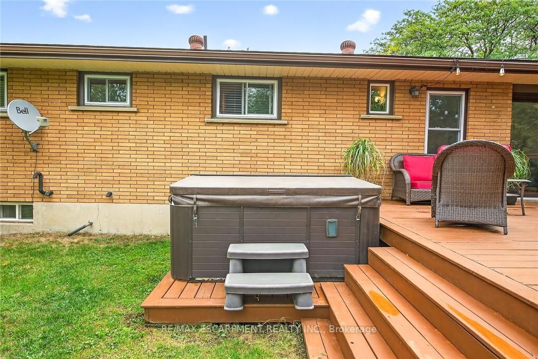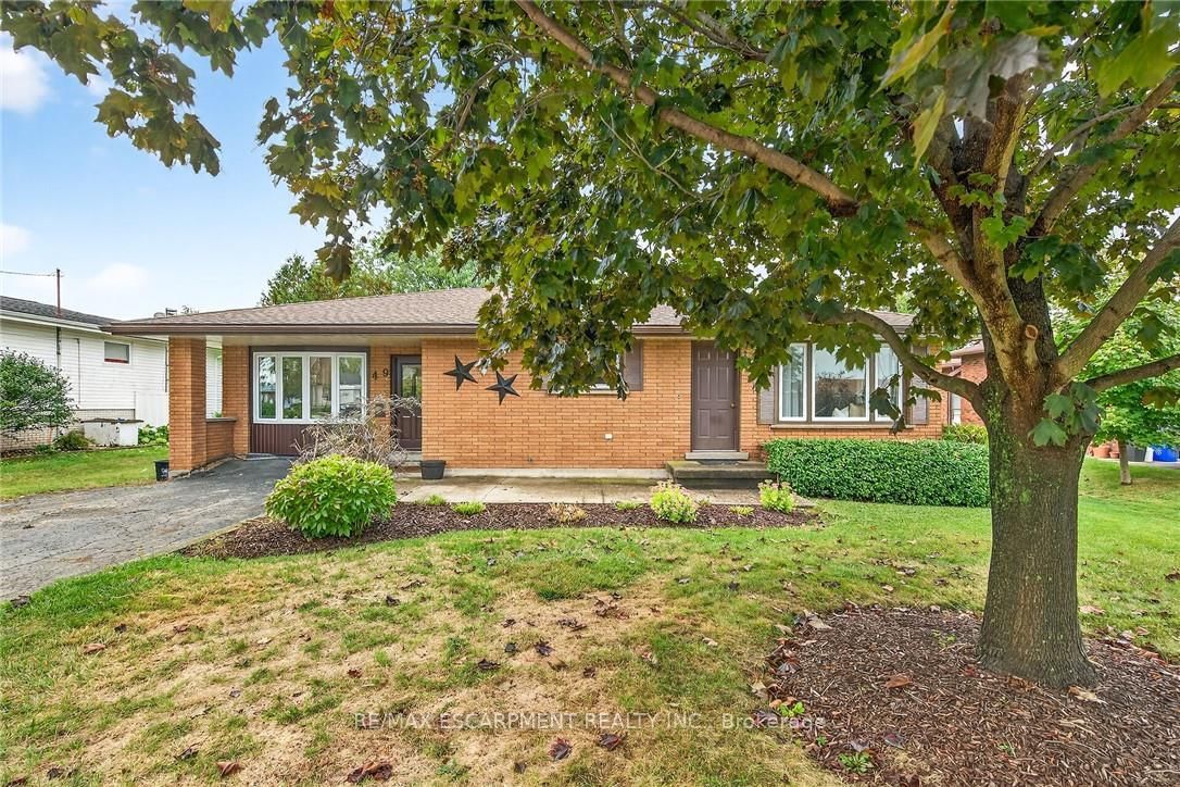 Beautifully updated all brick Bungalow in sought after family-friendly Fisherville on desired 70' x 165' lot. The Bungalow on 49 Erie Avenue N has 2 bedrooms, 1 bathrooms, and is located on a 165 x 70 ft lot in the community of Haldimand . Great curb appeal with 4 car paved driveway, & oversized deck with hot tub overlooking large back yard. The flowing interior features 2 bedrooms, 1 full bathroom and an open-concept layout filled with natural light, modern decor, and stylish lighting throughout. The upgraded kitchen is a true highlight showcasing rich cabinetry, quartz countertops, & subway tile backsplash, updated vinyl flooring that flows seamlessly into the spacious family room perfect for everyday living & entertaining, additional MF living room, & 4-piece bathroom with a relaxing soaker tub, custom vanity, & corner shower. The partially finished basement extends the living space with a generous sized rec room complete with a built-in entertainment unit, plus ample storage. Move-in ready and ideal for first-time buyers, small families, or downsizers looking for a welcoming community to call home.