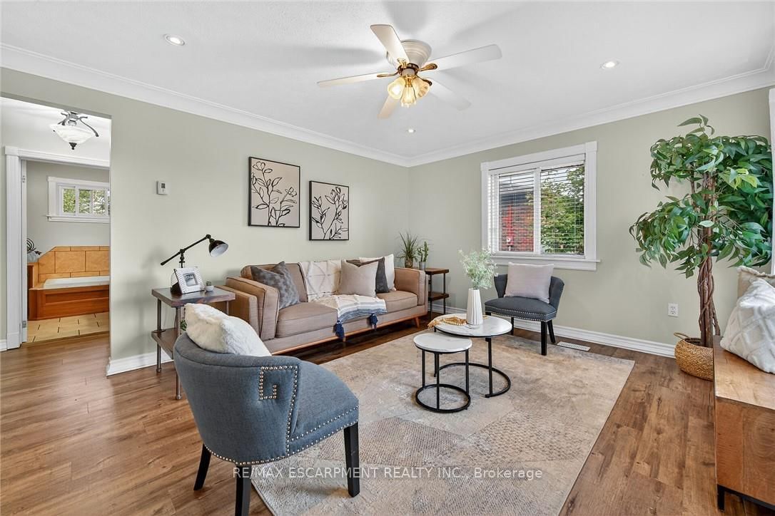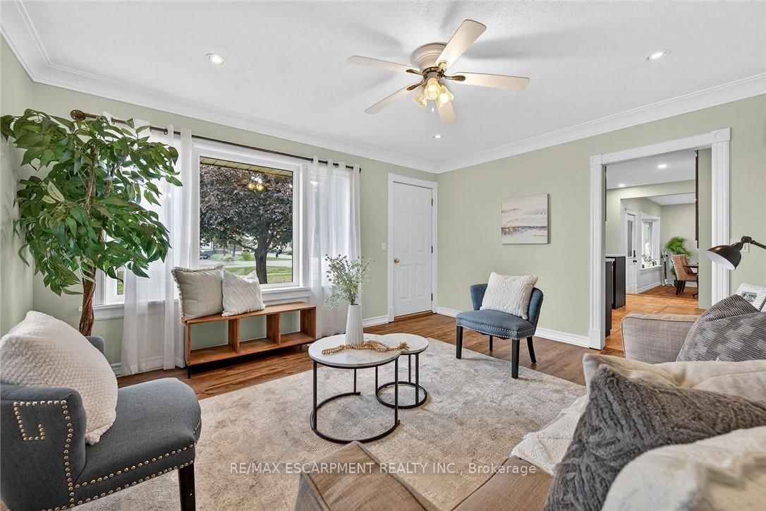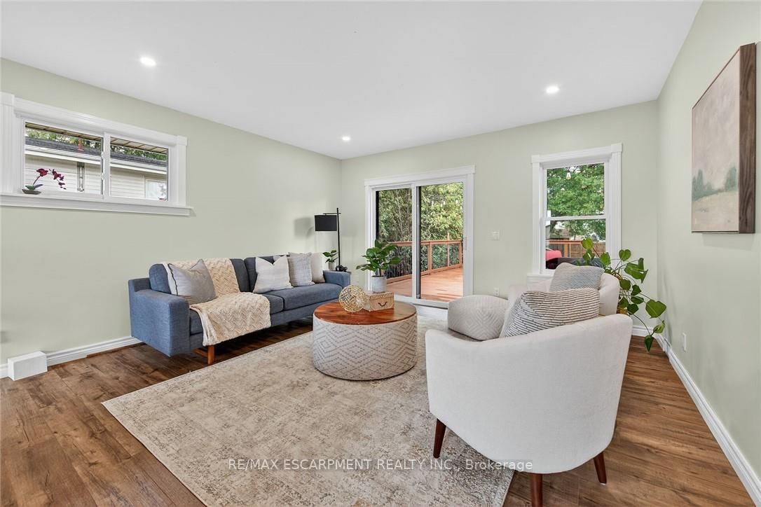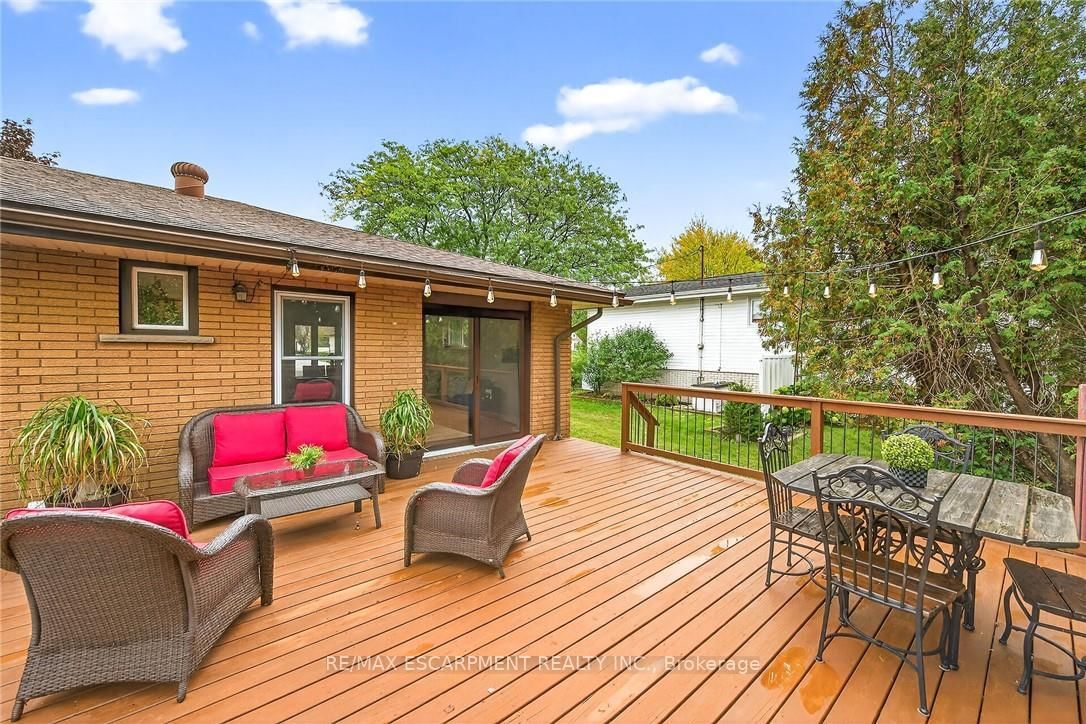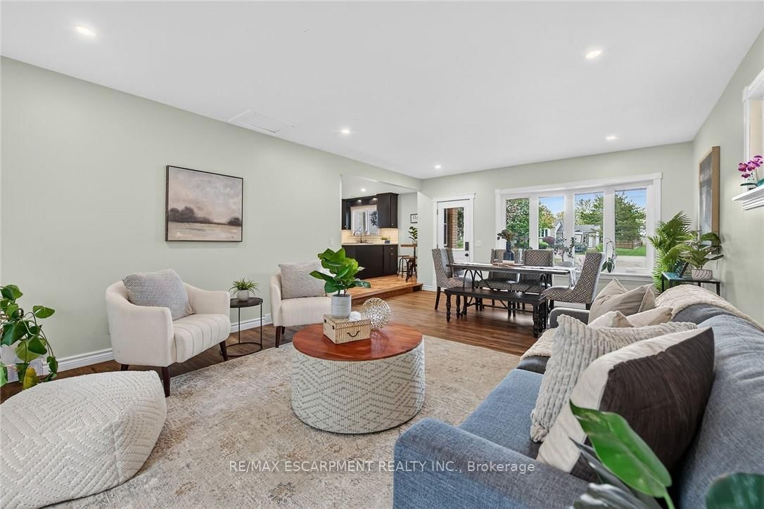 Beautifully updated all brick Bungalow in sought after family-friendly Fisherville on desired 70' x 165' lot. The Bungalow on 49 Erie Avenue N has 2 bedrooms, 1 bathrooms, and is located on a 165 x 70 ft lot in the community of Haldimand . Great curb appeal with 4 car paved driveway, & oversized deck with hot tub overlooking large back yard. The flowing interior features 2 bedrooms, 1 full bathroom and an open-concept layout filled with natural light, modern decor, and stylish lighting throughout. The upgraded kitchen is a true highlight showcasing rich cabinetry, quartz countertops, & subway tile backsplash, updated vinyl flooring that flows seamlessly into the spacious family room perfect for everyday living & entertaining, additional MF living room, & 4-piece bathroom with a relaxing soaker tub, custom vanity, & corner shower. The partially finished basement extends the living space with a generous sized rec room complete with a built-in entertainment unit, plus ample storage. Move-in ready and ideal for first-time buyers, small families, or downsizers looking for a welcoming community to call home.