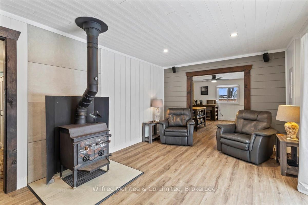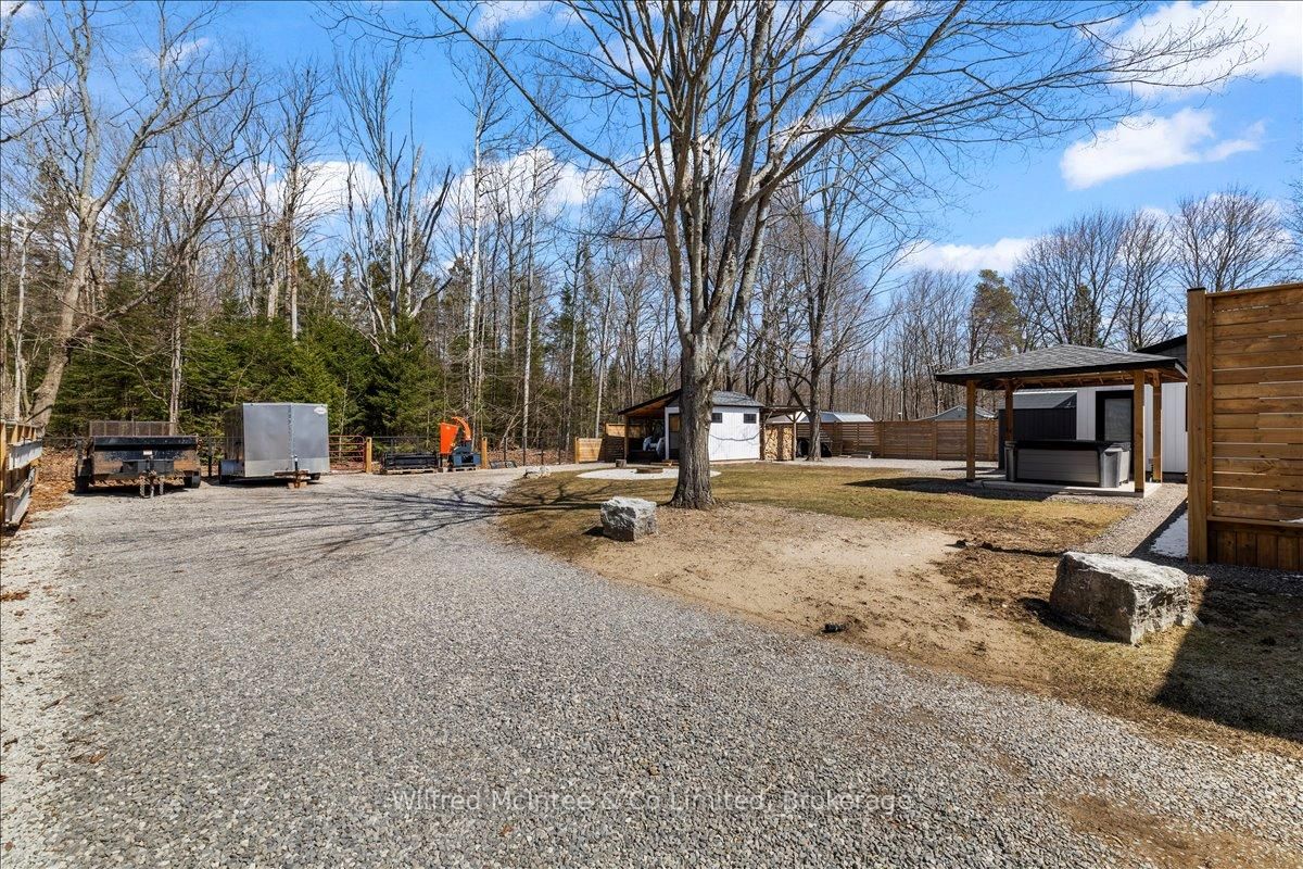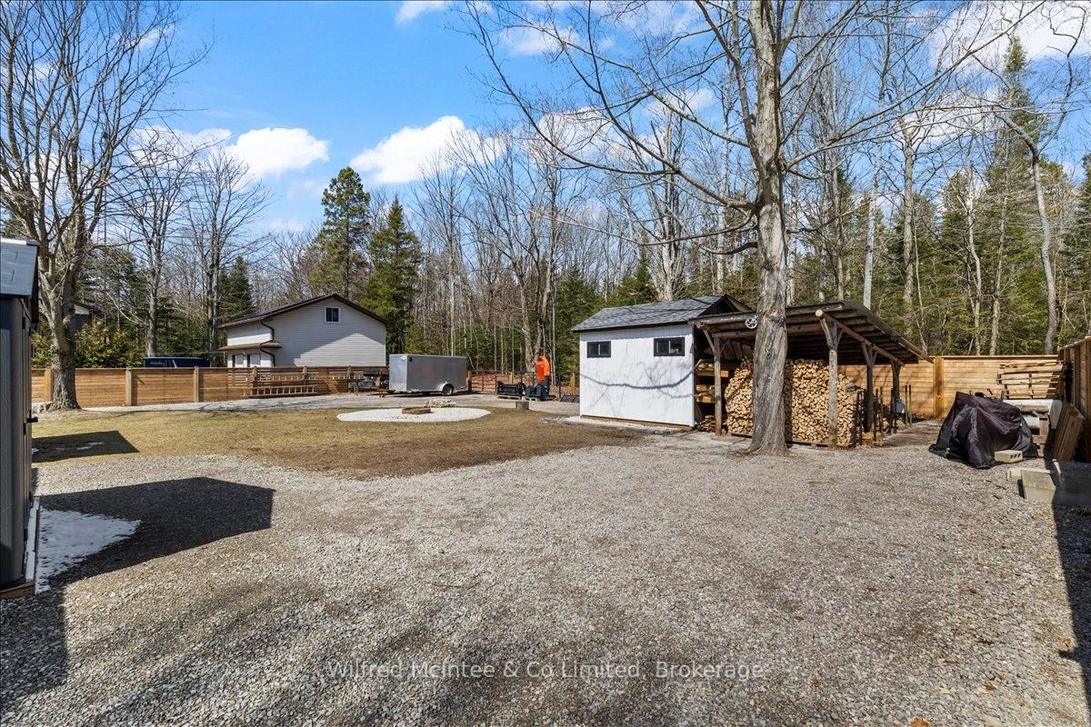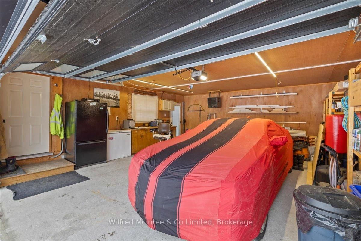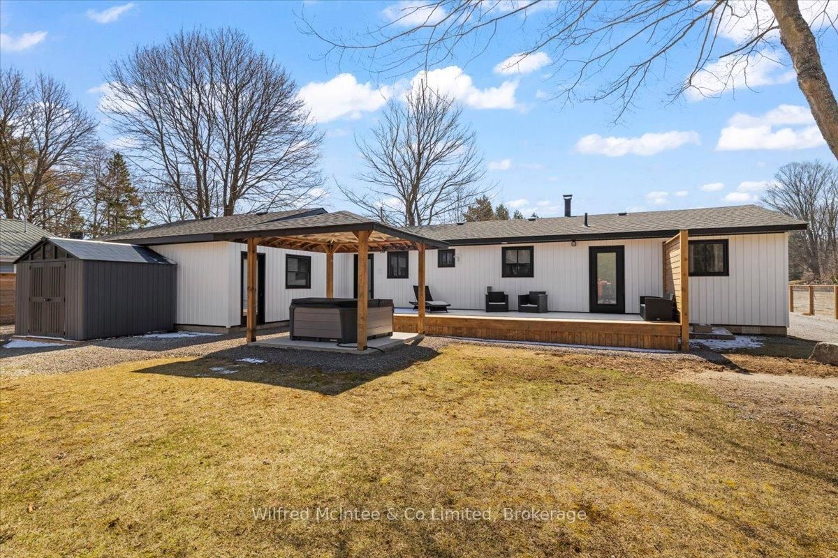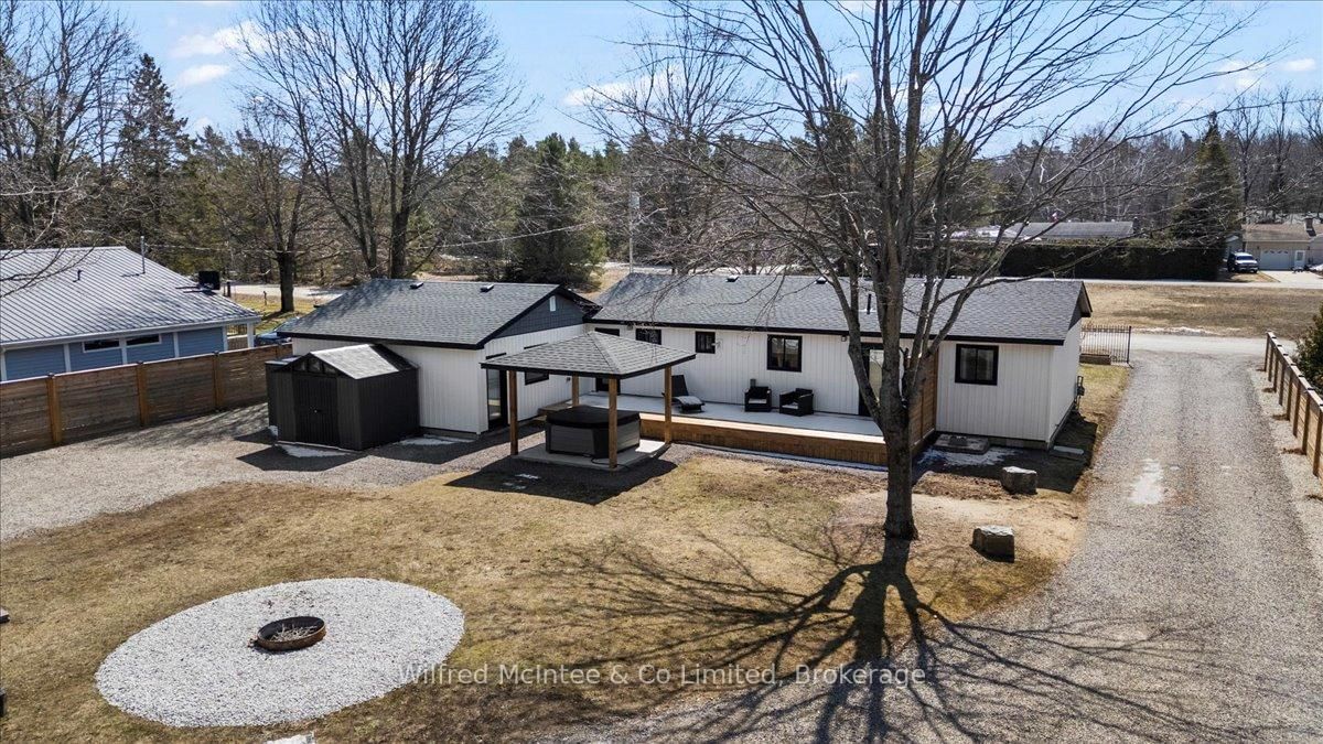 Welcome to 38 Allister Place - your move-in ready Sauble Beach retreat! Nestled on a quiet cul-de-sac, this beautifully renovated 2-bedroom, 1. The Bungalow on 38 ALLISTER Place has 2 bedrooms, 2 bathrooms, and is located on a 150 x 100 ft lot in the community of South Bruce Peninsula .5-bath bungalow w/double garage sits on a nicely landscaped 100 x 150 ft lot that backs onto County land with no rear neighbours, creating a peaceful setting. You are just a leisurely stroll or short bike ride to the 6th Street beach access and Sauble's famous sandy shoreline and unforgettable sunsets. Stepping inside, the bright, open interior welcomes you with luxury vinyl plank floors, a generous sized eat-in kitchen, spacious yet cozy living room w/wood stove, and sliding doors to the expansive south facing front deck. The thoughtful layout is completed by two bedrooms, a gorgeous four-piece spa like bath w/deep soaker tub, tiled shower and live-edge vanity, a vestibule w/back deck access, and laundry/mudroom w/handy half bath adding convenience to everyday life. Stepping outside you'll appreciate the large rear deck, covered hot tub (included), fully fenced yard with landscape lighting and fire pit, storage shed with firewood lean-to, and the heated & insulated attached double garage. Parking is never an issue with a wide double driveway up front and a second laneway leading to a large rear parking pad with black quarry gravel - ideal for boat, RV, trailer and all the motorized toys. Major improvements over the past 5 years include; new vinyl siding, soffit/fascia, roof shingles (house, shed, and gazebo), new septic bed, gas furnace, all windows & doors, front and back decks, vinyl plank flooring, 4pc & 2pc bathrooms, 200 amp panel, hot water heater (owned), water pump, garage door, fencing all around, firepit area, and 2nd laneway to rear parking area. Bonus, all kitchen appliances (Fridge, Stove, Washer & Dryer) and hot tub included. Perfect as a year-round cottage, starter home or easy downsizing option, this move-in-ready gem offers privacy, modern comfort and the ultimate Sauble Beach lifestyle!