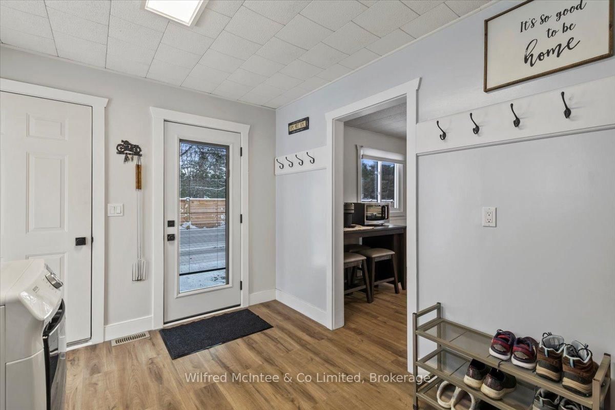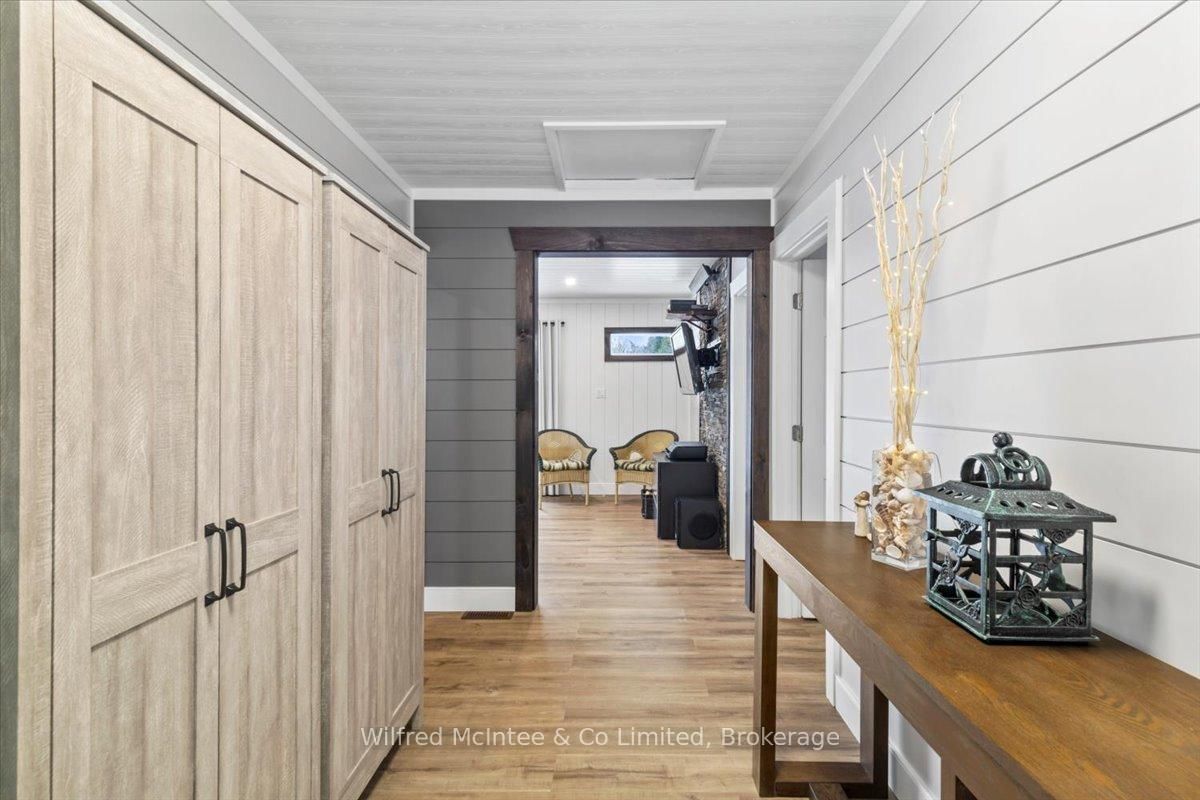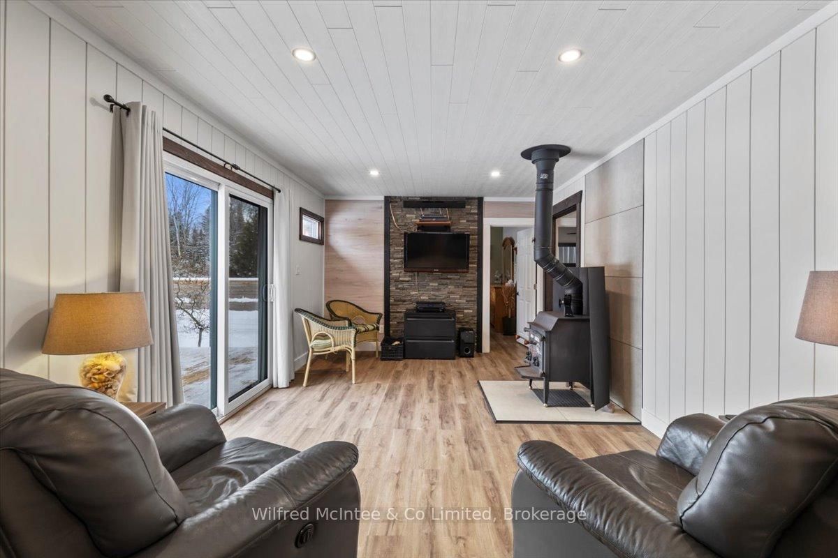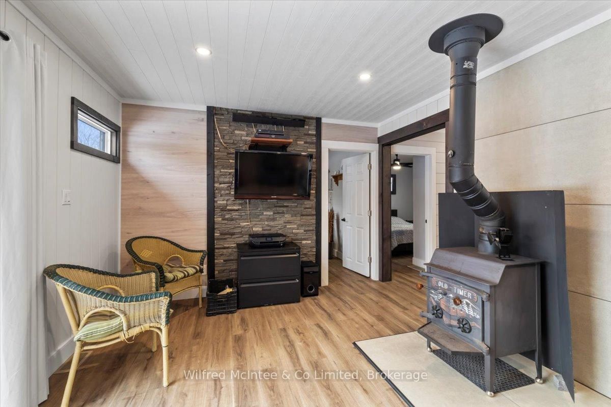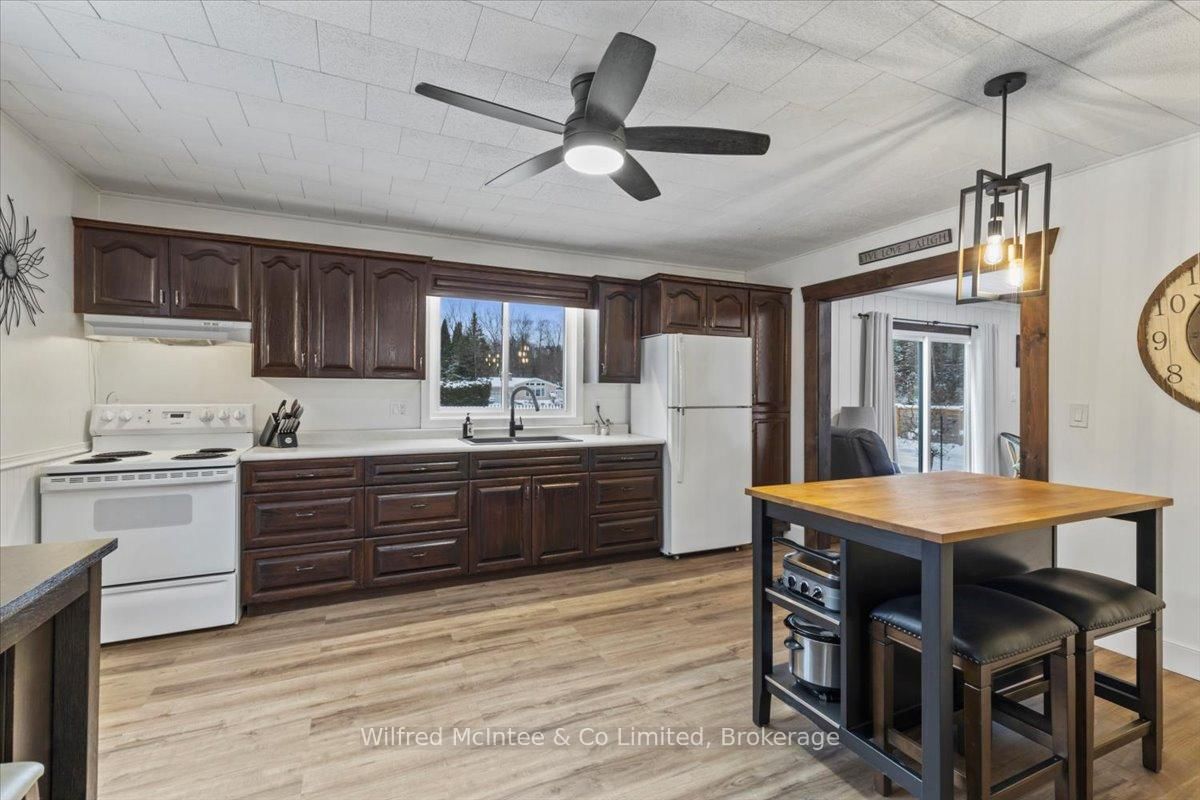 Welcome to 38 Allister Place - your move-in ready Sauble Beach retreat! Nestled on a quiet cul-de-sac, this beautifully renovated 2-bedroom, 1. The Bungalow on 38 ALLISTER Place has 2 bedrooms, 2 bathrooms, and is located on a 150 x 100 ft lot in the community of South Bruce Peninsula .5-bath bungalow w/double garage sits on a nicely landscaped 100 x 150 ft lot that backs onto County land with no rear neighbours, creating a peaceful setting. You are just a leisurely stroll or short bike ride to the 6th Street beach access and Sauble's famous sandy shoreline and unforgettable sunsets. Stepping inside, the bright, open interior welcomes you with luxury vinyl plank floors, a generous sized eat-in kitchen, spacious yet cozy living room w/wood stove, and sliding doors to the expansive south facing front deck. The thoughtful layout is completed by two bedrooms, a gorgeous four-piece spa like bath w/deep soaker tub, tiled shower and live-edge vanity, a vestibule w/back deck access, and laundry/mudroom w/handy half bath adding convenience to everyday life. Stepping outside you'll appreciate the large rear deck, covered hot tub (included), fully fenced yard with landscape lighting and fire pit, storage shed with firewood lean-to, and the heated & insulated attached double garage. Parking is never an issue with a wide double driveway up front and a second laneway leading to a large rear parking pad with black quarry gravel - ideal for boat, RV, trailer and all the motorized toys. Major improvements over the past 5 years include; new vinyl siding, soffit/fascia, roof shingles (house, shed, and gazebo), new septic bed, gas furnace, all windows & doors, front and back decks, vinyl plank flooring, 4pc & 2pc bathrooms, 200 amp panel, hot water heater (owned), water pump, garage door, fencing all around, firepit area, and 2nd laneway to rear parking area. Bonus, all kitchen appliances (Fridge, Stove, Washer & Dryer) and hot tub included. Perfect as a year-round cottage, starter home or easy downsizing option, this move-in-ready gem offers privacy, modern comfort and the ultimate Sauble Beach lifestyle!