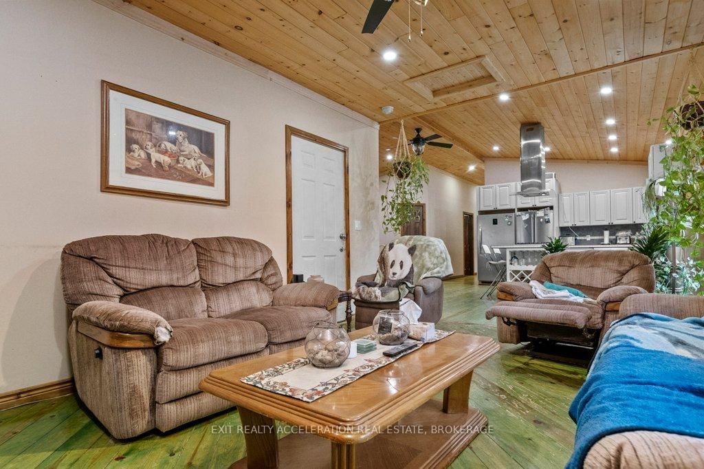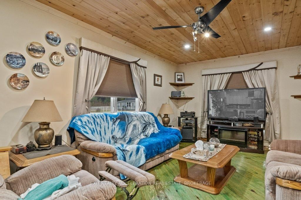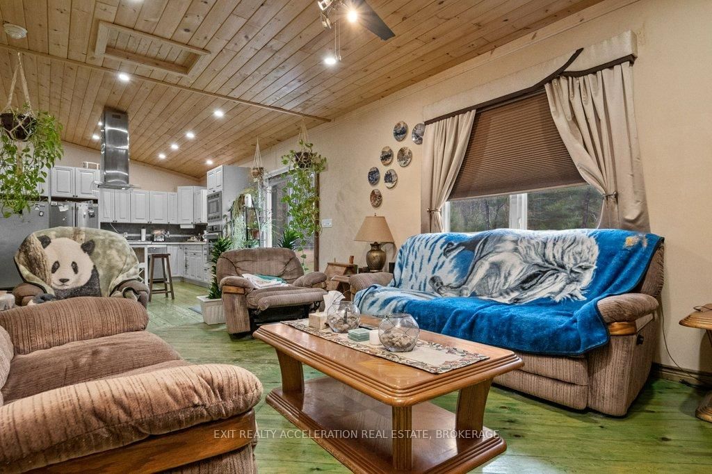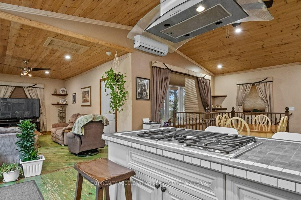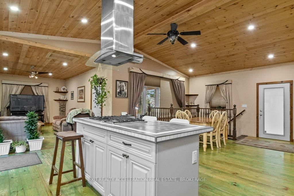 Nestled in a charming small-town community, this 3-bedroom plus den, 2-bathroom home offers the perfect blend of modern comfort and rural tranquility. The Bungalow on 14 West Park Lane has 3 bedrooms, 2 bathrooms, and is located on a 69 x 184 ft loton < .50 acres in the community of Addington Highlands . From the moment you step inside, you'll love the open-concept design, enhanced by vaulted wood ceilings that create a warm and inviting atmosphere. The thoughtfully designed kitchen features a double-door refrigerator, a stand-up freezer, a built-in stove and microwave, and a gas cooktop conveniently situated on the island - ideal for preparing meals while engaging with family and friends. Three bedrooms on the main floor & a versatile den in the lower level, primary suite, complete with a walk-in closet and a cheater ensuite. The lower level is primarily finished, offering a versatile recreation room, a den, and 2nd bathroom. Step outside and relax on the 30-foot aluminum deck. This home is on a dead-end road, with a lovely park situated directly behind the property. Surrounded by picturesque lakes, this location is fantastic.
