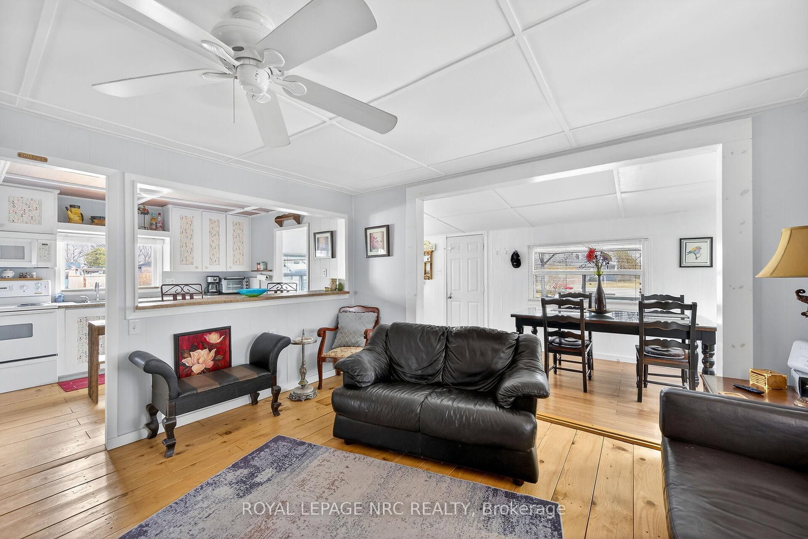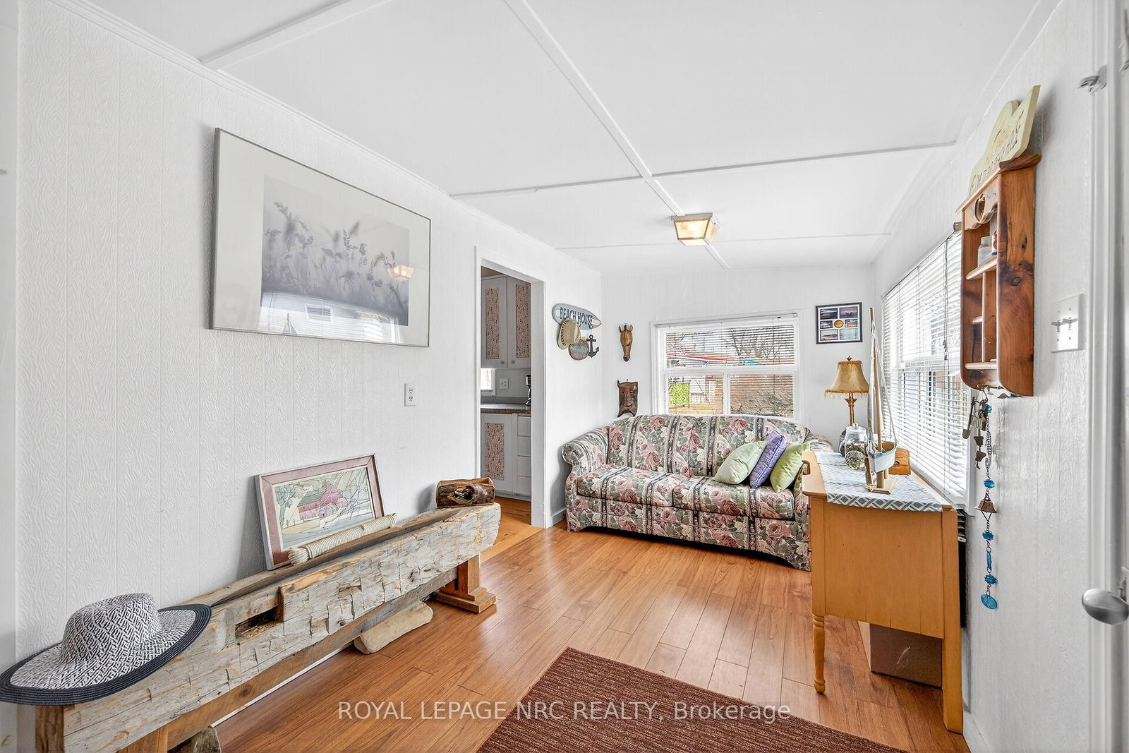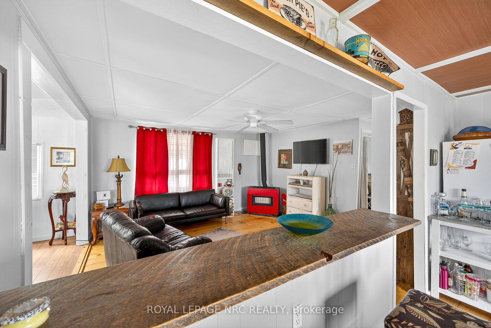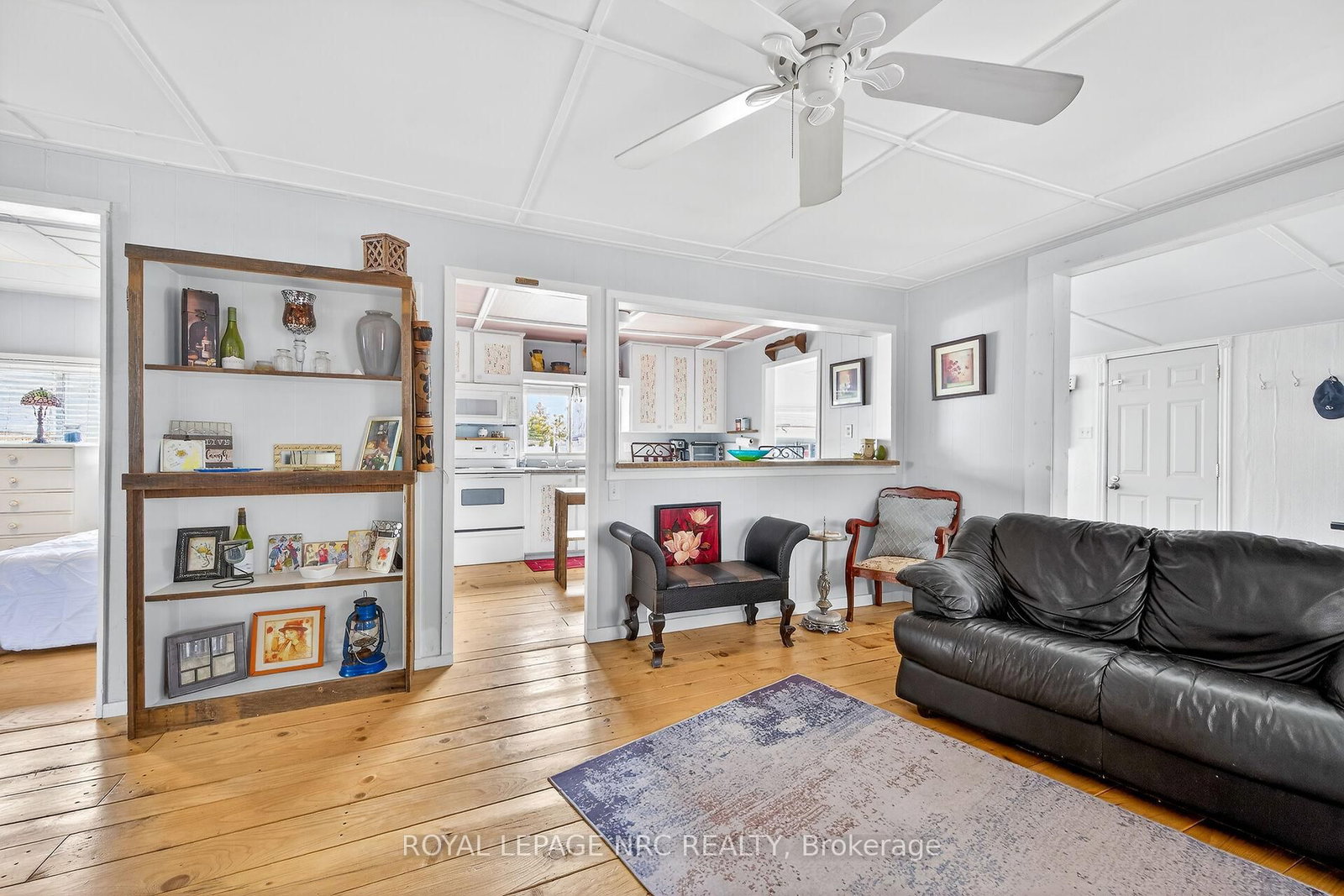 This extremely well-maintained and affordable seasonal cottage is located on leased land in thewelcoming community of Featherstone Point. The Bungalow on 49 Heather Lane has 2 bedrooms, 1 bathrooms, and is located in the community of Haldimand . It sits on a double deep lot sheltered from lakewinds, with partial lake views just steps from a private sand beach. The open-concept layoutfeatures a dining/sitting area overlooking the front deck with gazebo, a kitchen equipped with arefrigerator and stove, ample cabinetry, trendy concrete countertops, and wood island, plusaccess to a 10'x20' side deck perfect for grilling and outdoor dining. The bright and spaciousliving room includes a propane fireplace/heater, pine plank flooring and custom built-ins. Aprimary bedroom, a second smaller sleeping area and 3-piece bath complete the functionallayout. Extras include 3 large decks, shed, fire chiminea, manicured lawn, beautifully landscapedyard, 100-amp hydro, a 2000-gallon cistern and a 2000-gallon holding tank. The detachedgarage/workshop with hydro is suitable for hobbyists, and double wide driveway with generousparking available for multiple vehicles and a boat. The annual leased land fee is $4,400 andcovers property taxes, permitting nine-month occupancy from April 1st to December 31st. Thelocation allows for an easy 45-minute commute to Hamilton, Brantford, and Highway 403. Parkamenities include an attractive sand beach, common park area, and volleyball net. Mostfurnishings are included, and immediate or flexible possession can be arranged. Experience theperfect retreat on Lake Erie that meets almost everyone's budget!