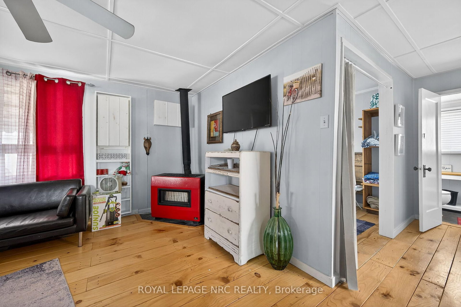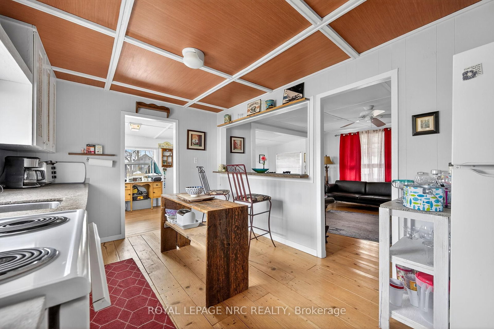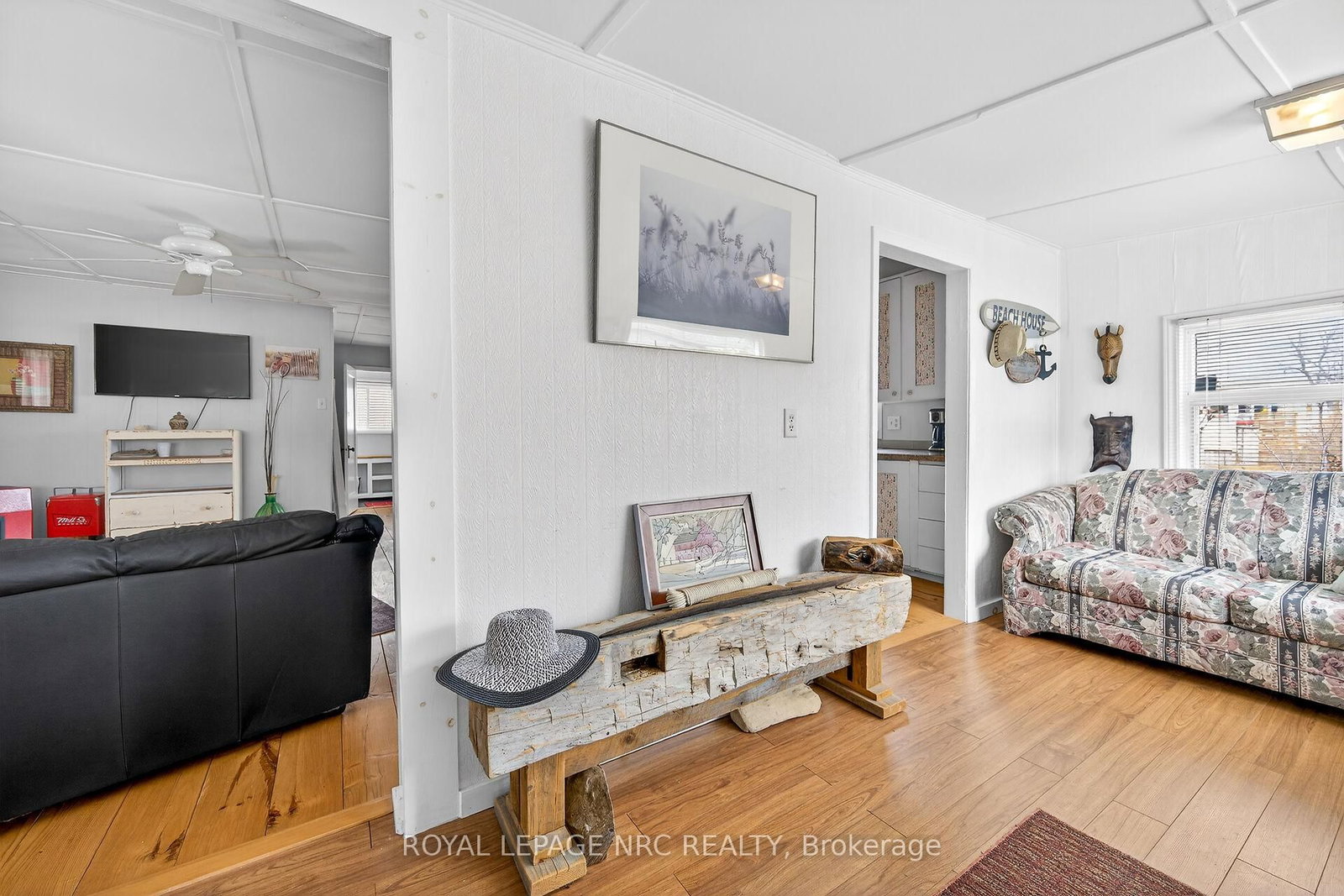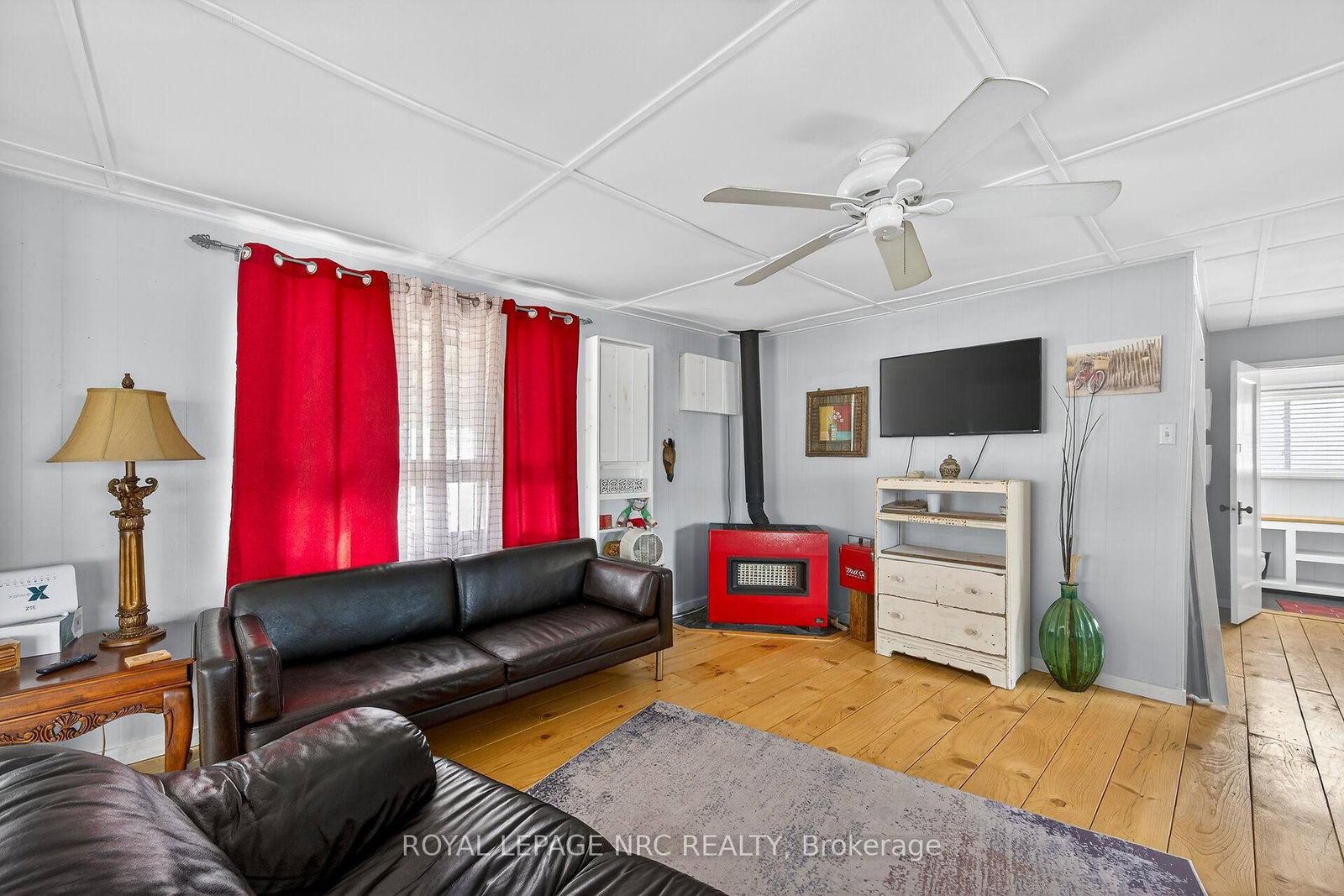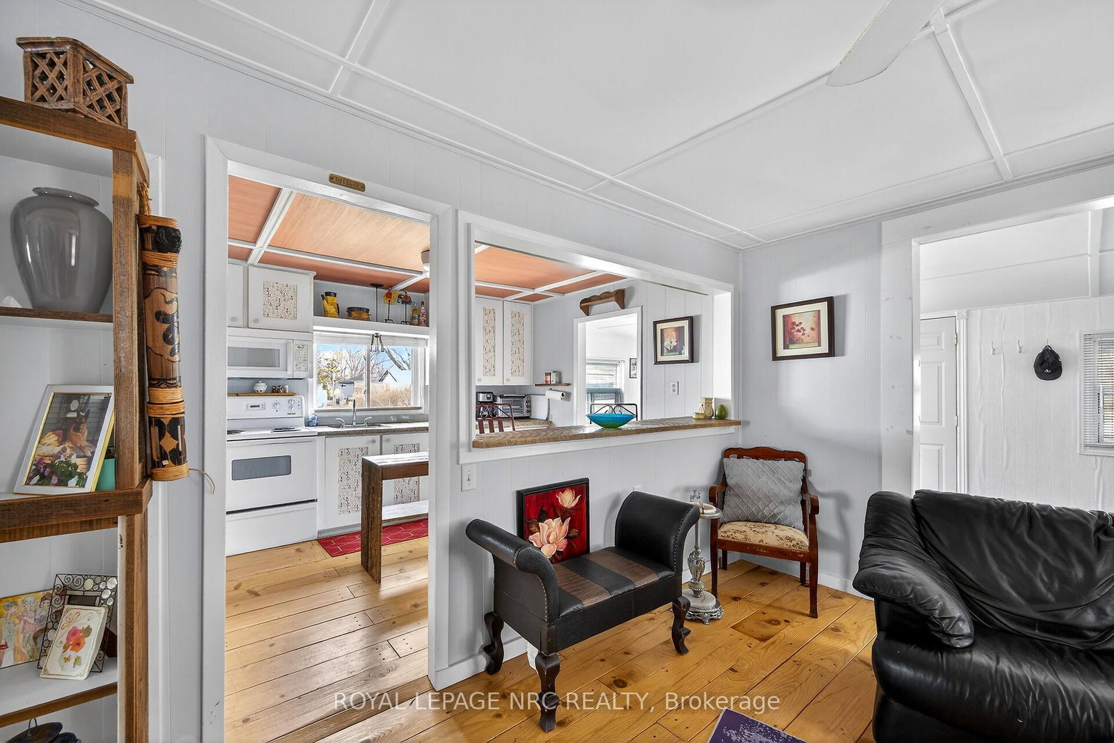 This extremely well-maintained and affordable seasonal cottage is located on leased land in thewelcoming community of Featherstone Point. The Bungalow on 49 Heather Lane has 2 bedrooms, 1 bathrooms, and is located in the community of Haldimand . It sits on a double deep lot sheltered from lakewinds, with partial lake views just steps from a private sand beach. The open-concept layoutfeatures a dining/sitting area overlooking the front deck with gazebo, a kitchen equipped with arefrigerator and stove, ample cabinetry, trendy concrete countertops, and wood island, plusaccess to a 10'x20' side deck perfect for grilling and outdoor dining. The bright and spaciousliving room includes a propane fireplace/heater, pine plank flooring and custom built-ins. Aprimary bedroom, a second smaller sleeping area and 3-piece bath complete the functionallayout. Extras include 3 large decks, shed, fire chiminea, manicured lawn, beautifully landscapedyard, 100-amp hydro, a 2000-gallon cistern and a 2000-gallon holding tank. The detachedgarage/workshop with hydro is suitable for hobbyists, and double wide driveway with generousparking available for multiple vehicles and a boat. The annual leased land fee is $4,400 andcovers property taxes, permitting nine-month occupancy from April 1st to December 31st. Thelocation allows for an easy 45-minute commute to Hamilton, Brantford, and Highway 403. Parkamenities include an attractive sand beach, common park area, and volleyball net. Mostfurnishings are included, and immediate or flexible possession can be arranged. Experience theperfect retreat on Lake Erie that meets almost everyone's budget!