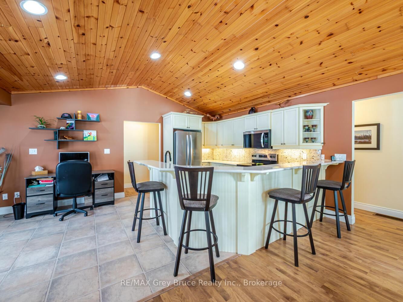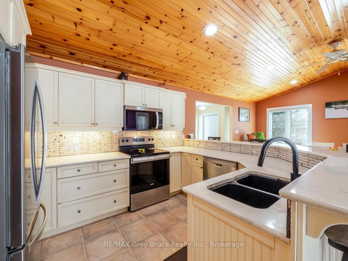 Tucked into a quiet and highly desirable Sauble Beach location, this property offers the kind of relaxed, low-maintenance lifestyle that makes downsizing feel like a step forward - not a step back. The Bungalow on 612 York Avenue has 3 bedrooms, 2 bathrooms, and is located on a 178.6 x 84 ft lot in the community of South Bruce Peninsula .Just a short, easy walk to the shoreline, your days can begin with fresh air and a stroll along the beach, and end in the comfort of your own peaceful, treed setting.Inside, the home is warm and inviting, with a vaulted wood ceiling that brings character and a true cottage feel without sacrificing comfort. The main living space is open, bright, and designed for everyday ease - currently set up as a spacious kitchen and dining area with room to gather, but flexible enough to reconfigure into a more traditional living room layout if desired. Everything is on one level, making day-to-day living simple and accessible, whether you're hosting family, enjoying quiet mornings, or settling in for the season.Large windows fill the space with natural light and offer a connection to the surrounding landscape, creating a sense of calm and privacy that's hard to find. Outside, the setting is easy to care for and thoughtfully laid out, so your time can be spent enjoying the lifestyle - not maintaining it.