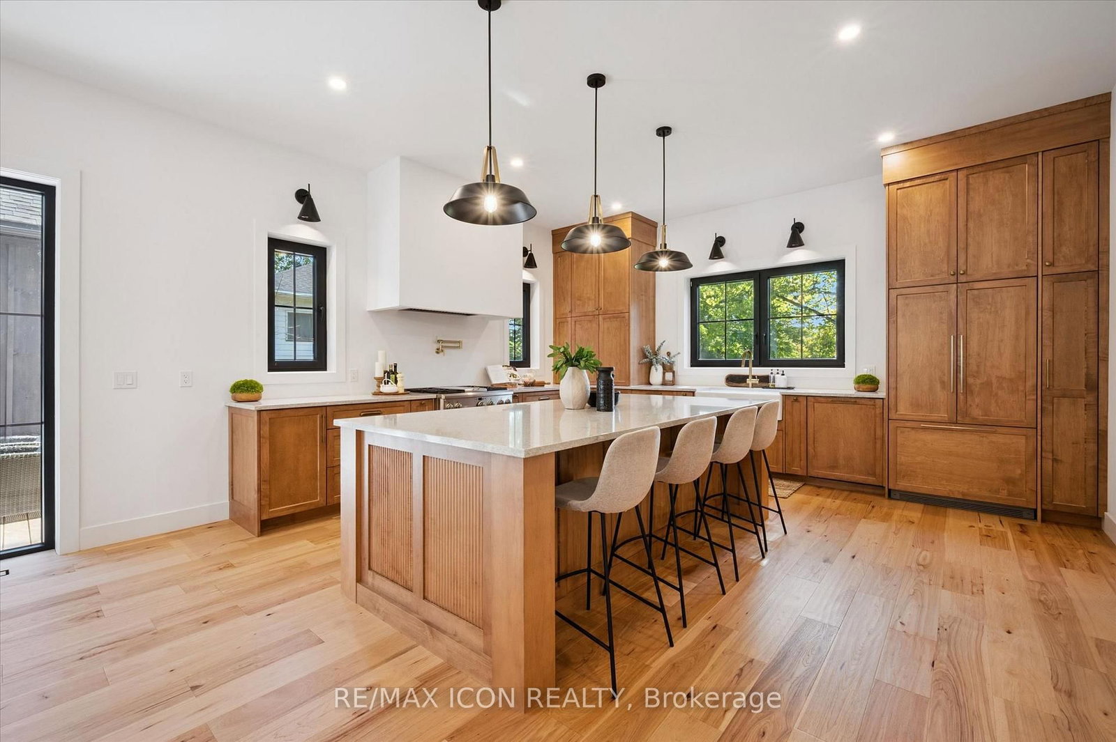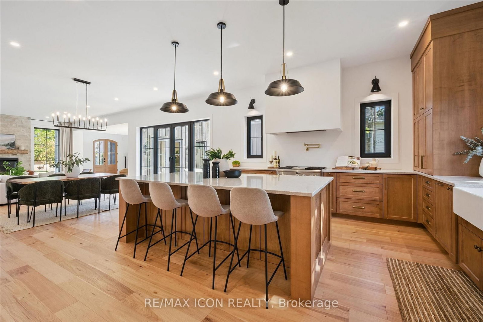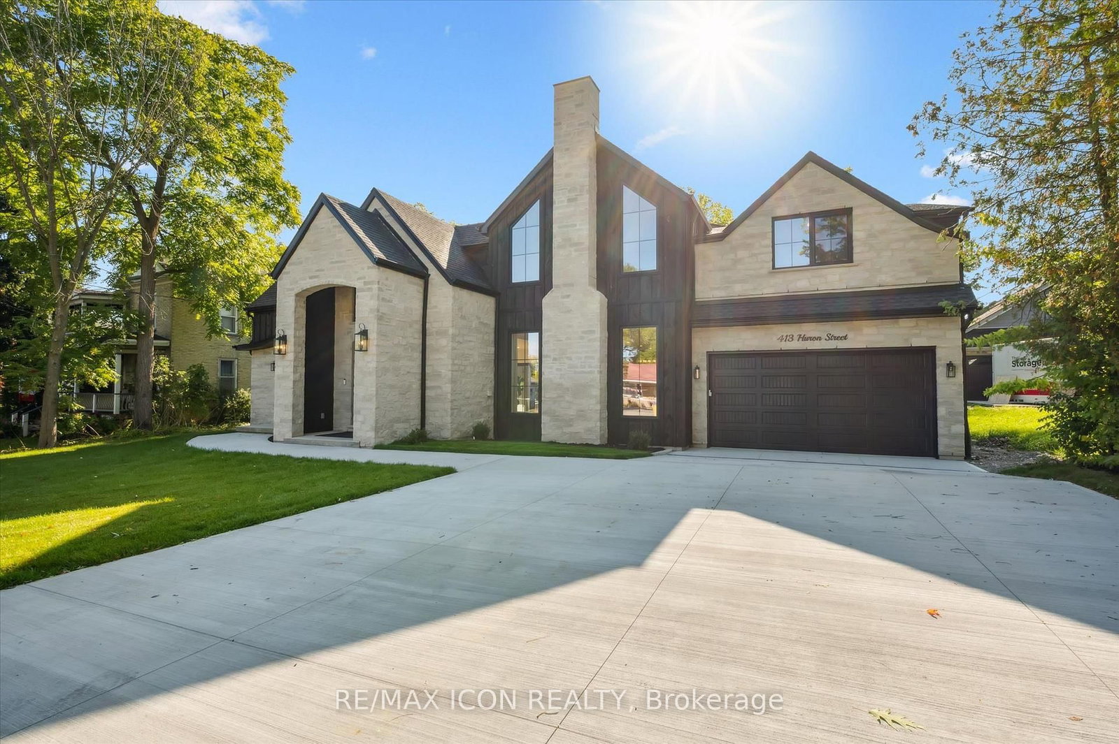 Welcome to 413 Huron Road in charming New Hamburg! A truly exceptional 5-bedroom, 4-bathroom home offering over 4,400 sq. The 2-Storey on 413 Huron Street has 5 bedrooms, 4 bathrooms, and is located on a 389 x 78 ft lot in the community of . ft. of finishedliving space, where thoughtful design meets high-end finishes and timeless craftsmanship. The exterior blends timeless materials like stone,brick, and barn board for a striking curb appeal, complemented by a concrete driveway with integrated drainage and underground downspoutmanagement. Inside, the home is flooded with natural light thanks to oversized Raven European tilt/turn windows, which beautifully highlight theneutral tones, organic finishes, and natural hickory engineered hardwood throughout. The heart of the home is the handcrafted maple kitchenand adjoining butler's pantry, featuring a Monogram gas oven/range, built-in 36" Fisher & Paykel fridge and dishwasher, an apron sink, andample storage, ideal for everyday living and entertaining alike. A separate entrance leads to a private granny flat, perfect for multi-generationalliving or guests. Comfort is maximized with multi-zone climate control, a hot water recirculation line for instant hot water to the second-floorbathrooms, and a large Lennox natural gas fireplace for cozy evenings. Additional features include a custom vanity in the foyer bath, VIGOfaucets, Red Oak stairs, and a master suite boasting oversized windows and Italian tile finishes. The home is equipped with a 200 AMP electricalpanel, water softener, and plenty of storage including a large shed. Outside, enjoy an incredible entertaining space with a wood deck and anexpansive grass area set on 3/4 acre in town perfect for relaxing or hosting gatherings. This is a rare blend of luxury, functionality, andthoughtful design in a peaceful, sought-after location.