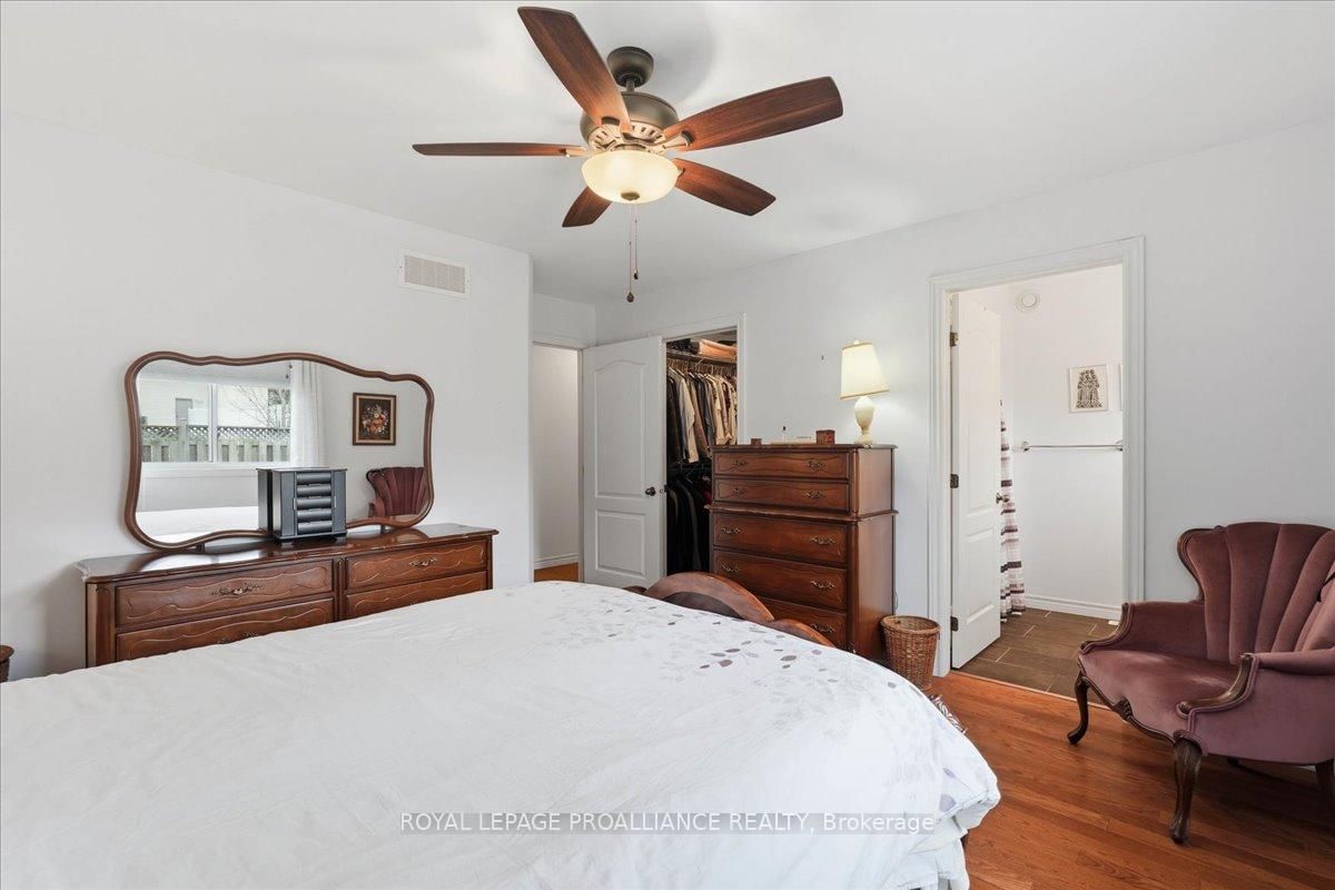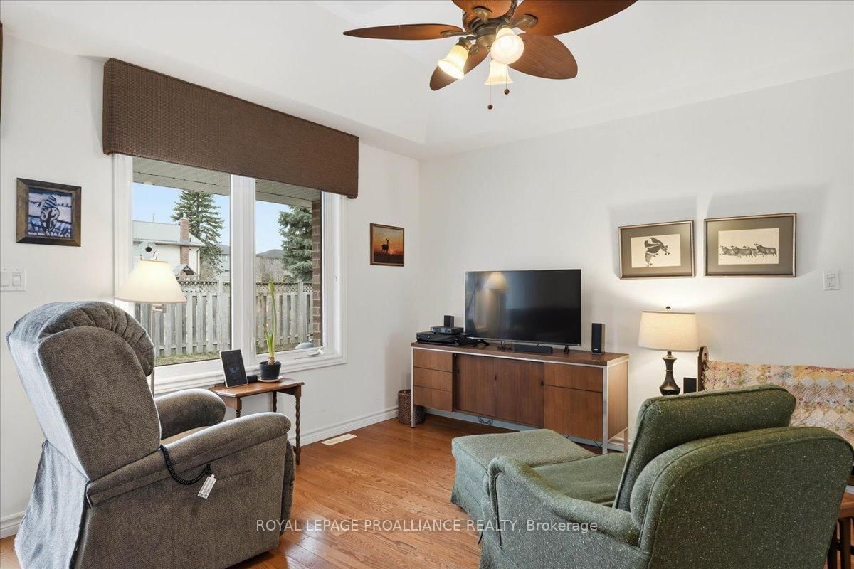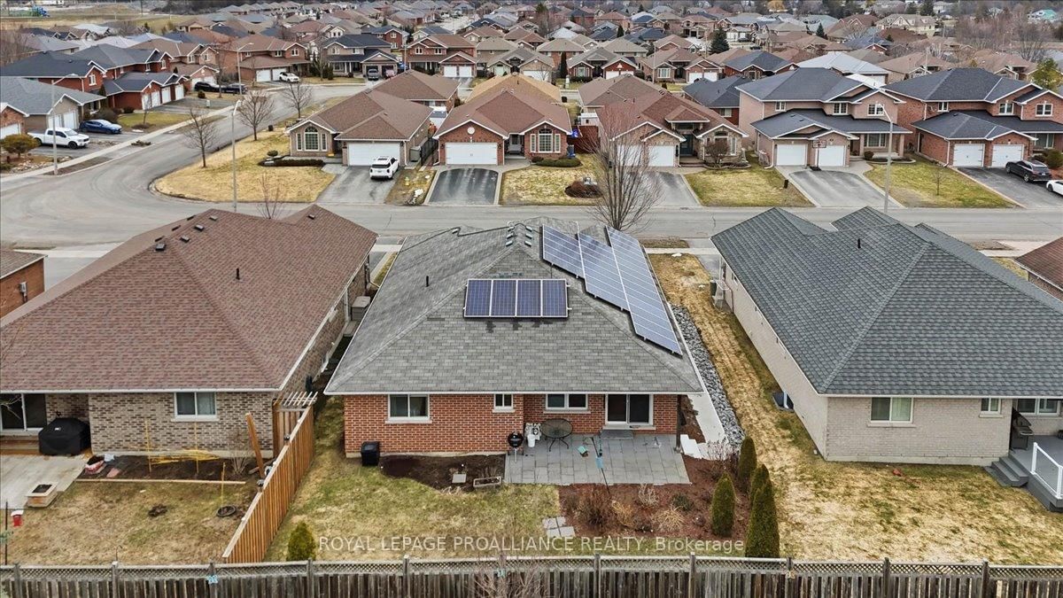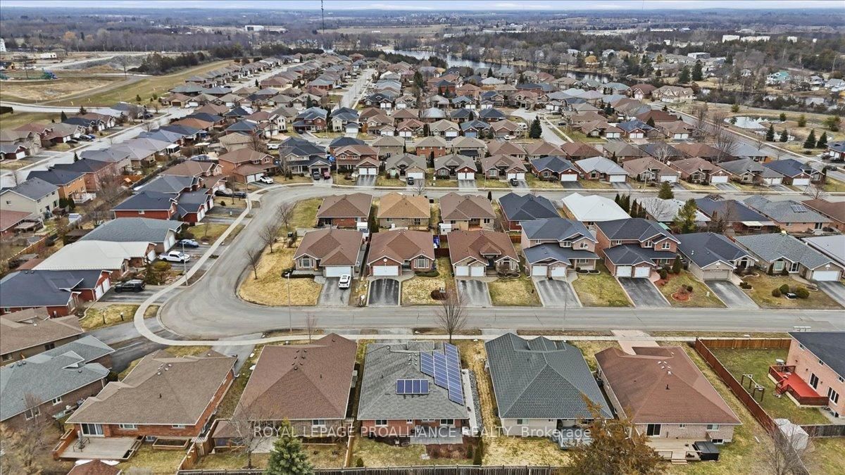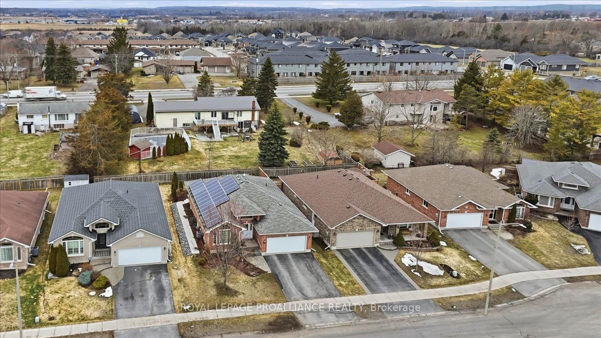 Welcome to this great, quiet subdivision offering convenient one-level living just minutes from Quinte Mall and Highway 401. The Bungalow on 12 Chelsea Crescent has 3 bedrooms, 2 bathrooms, and is located on a 100.07 x 52.95 ft loton < .50 acres in the community of Thurlow Ward . This bright and cheerful bungalow features beautiful hardwood flooring, a stunning palladium window and vaulted ceiling in the living and dining rooms. The main-floor family room showcases an elegant coffered ceiling, creating a warm and inviting space for relaxing or entertaining. The lovely kitchen (2022) is equipped with upgraded appliances including Bosch dishwasher, newer fridge, huge island for extra storage and quick meals. A sunny eating area with patio doors leading to a large, private covered patio and beautifully landscaped gardens - perfect for enjoying peaceful outdoor living. Large tiled entry showcases the living room and dining rooms for more formal entertaining. Fully paid-for solar panels on south-facing roof offers great subsidy for cutting utility costs. (Paperwork on file) Additional highlights include huge front entry, direct access to 2 car garage & entry into the main-floor laundry for added convenience. The full, unfinished basement offers incredible potential, complete with a rough-in for a bathroom- ready for your personal touch and ideal for extended family living. A wonderful opportunity in a sought-after location.
