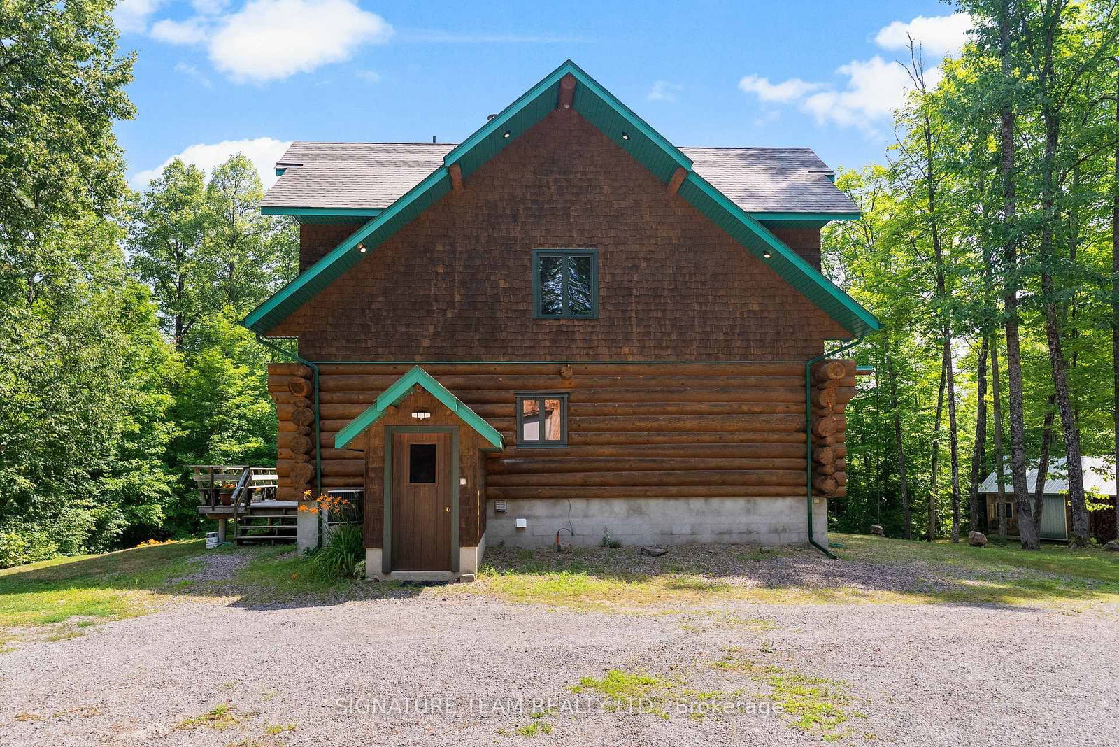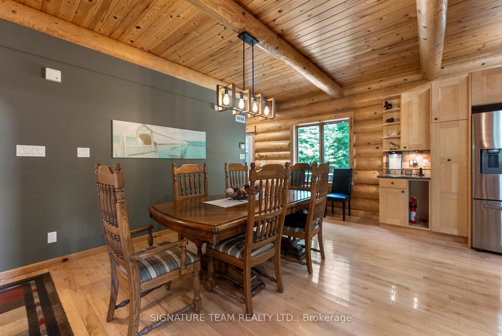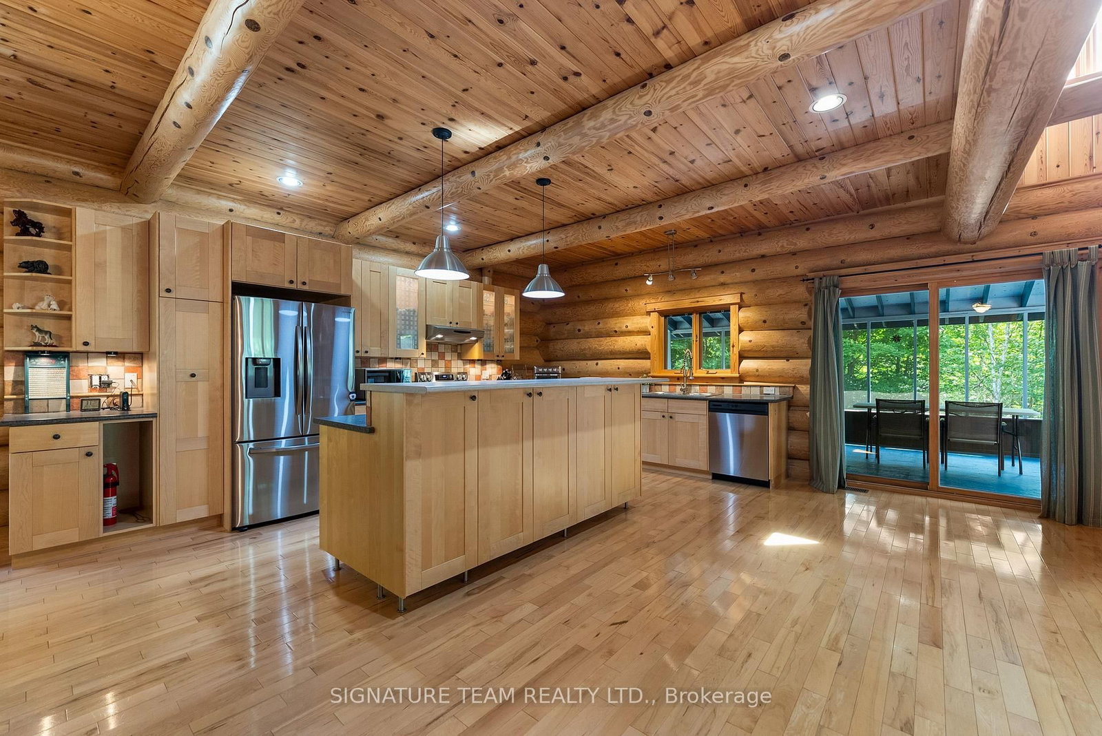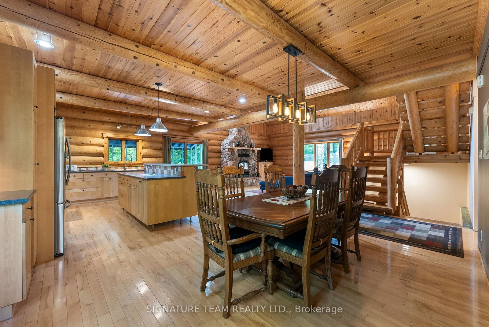 Set amidst 14. The 2-Storey on 800 Woito Station Road has 3 bedrooms, 3 bathrooms, and is located on a 1043.5 x 626.16 ft loton 10-24.99 acres in the community of Laurentian Valley .95 acres of mixed hardwood forest minutes from Pembroke, this extraordinary custom built log home offers a rare blend of artisanal craftsmanship and refined rural living. Designed with timeless attention to detail, this home is a true testament to natural beauty and enduring quality. The heart of the home is an expansive open-concept kitchen and dining area, thoughtfully laid out. Adjacent, the great room is anchored by a floor-to-ceiling stone fireplace and framed by dramatic 25-foot pine tongue-and-groove cathedral ceilings, creating a sense of warmth and scale rarely found. You'll find 2-beds, a 4-piece bath and screened in porch off the kitchen. Maple hardwood floors flow seamlessly throughout the main level, while handcrafted log railings and a custom staircase add authenticity and rustic elegance. The 2nd level opens to a spacious loft overlooking the great room below. Additionally, the large primary features 11-foot ceilings, bamboo flooring, a walk-in closet, and ensuite bathroom. Full basement is partially finished with its own entrance, a large rec room, a bedroom, 3-piece bath and a wood elevator. Outdoor living is equally impressive, with a large deck complete with built-in bench seating and a screened 3-season porch that invites you to relax. The detached 30' x 40' garage offers versatility, boasting 14-foot ceilings, 200 amp service, a 12' x 12' room with A/C, a bar area, insulated with radiant in-floor heat, and hot/cold water. In addition to the garage, there is also a gazebo area, lean-to, outbuilding for storage and a 3-season bunkie with a cookstove and kitchenette. Modern updates include a LG stove, dishwasher, washer, dryer, water treatment system, pressure tank, and roof was replaced in 2023. For those seeking a lifestyle in harmony with nature and elegance, this is a rare opportunity to experience the best of country living in a setting of charm, comfort, and craftsmanship. Min 24 hr irrevocable.