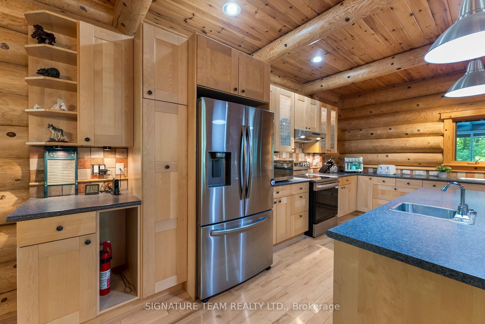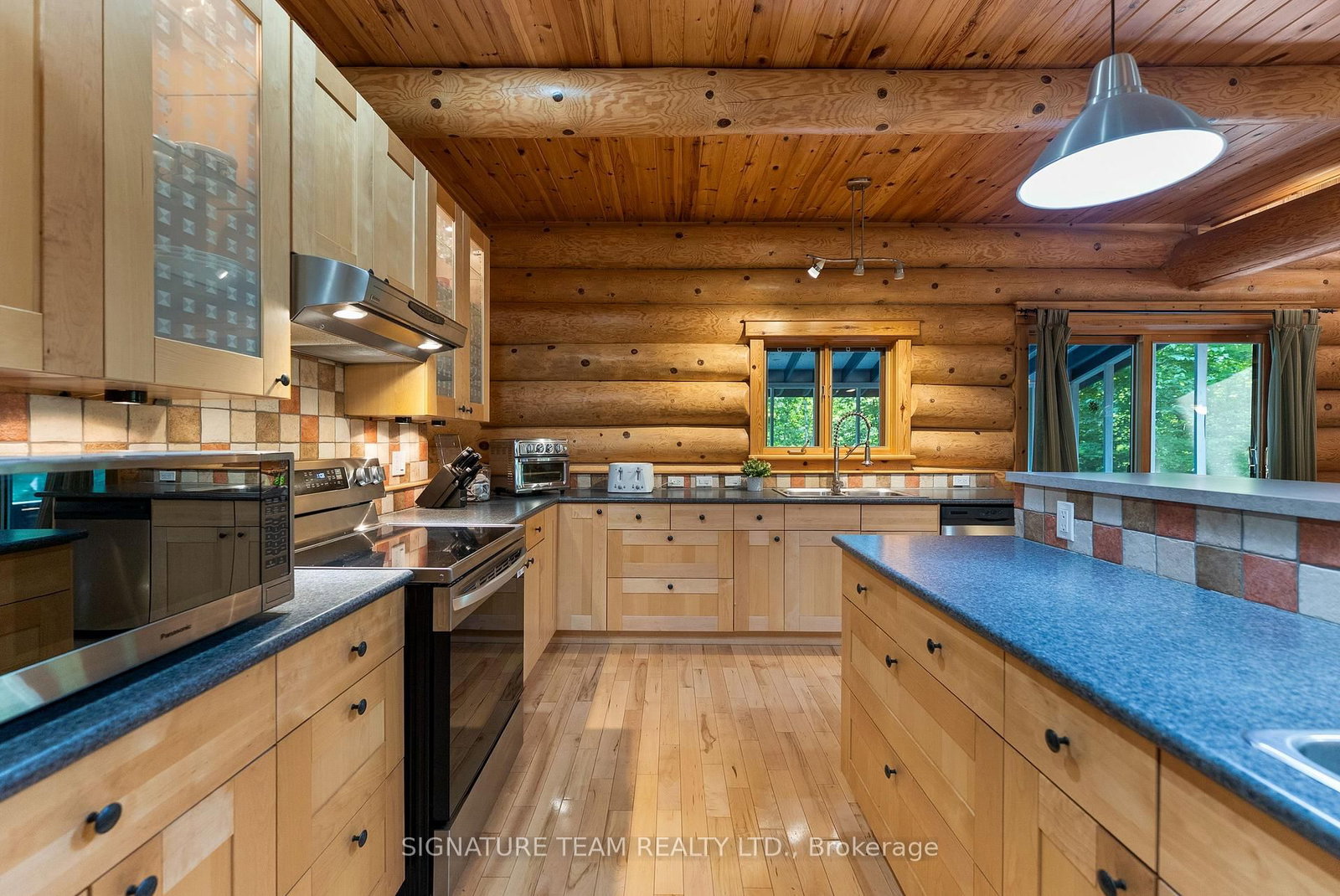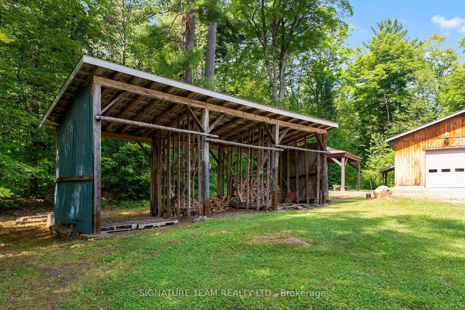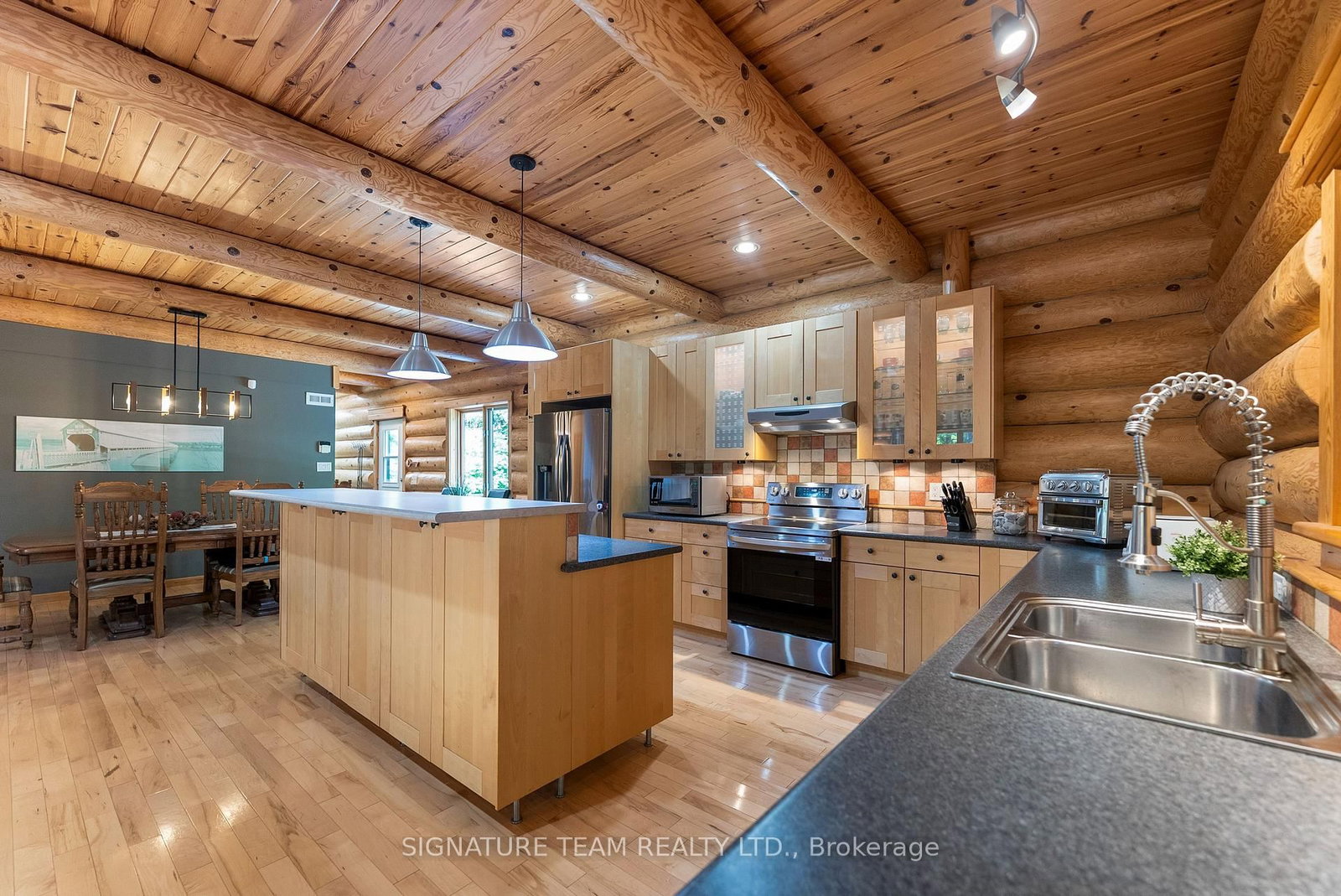 Set amidst 14. The 2-Storey on 800 Woito Station Road has 3 bedrooms, 3 bathrooms, and is located on a 1043.5 x 626.16 ft loton 10-24.99 acres in the community of Laurentian Valley .95 acres of mixed hardwood forest minutes from Pembroke, this extraordinary custom built log home offers a rare blend of artisanal craftsmanship and refined rural living. Designed with timeless attention to detail, this home is a true testament to natural beauty and enduring quality. The heart of the home is an expansive open-concept kitchen and dining area, thoughtfully laid out. Adjacent, the great room is anchored by a floor-to-ceiling stone fireplace and framed by dramatic 25-foot pine tongue-and-groove cathedral ceilings, creating a sense of warmth and scale rarely found. You'll find 2-beds, a 4-piece bath and screened in porch off the kitchen. Maple hardwood floors flow seamlessly throughout the main level, while handcrafted log railings and a custom staircase add authenticity and rustic elegance. The 2nd level opens to a spacious loft overlooking the great room below. Additionally, the large primary features 11-foot ceilings, bamboo flooring, a walk-in closet, and ensuite bathroom. Full basement is partially finished with its own entrance, a large rec room, a bedroom, 3-piece bath and a wood elevator. Outdoor living is equally impressive, with a large deck complete with built-in bench seating and a screened 3-season porch that invites you to relax. The detached 30' x 40' garage offers versatility, boasting 14-foot ceilings, 200 amp service, a 12' x 12' room with A/C, a bar area, insulated with radiant in-floor heat, and hot/cold water. In addition to the garage, there is also a gazebo area, lean-to, outbuilding for storage and a 3-season bunkie with a cookstove and kitchenette. Modern updates include a LG stove, dishwasher, washer, dryer, water treatment system, pressure tank, and roof was replaced in 2023. For those seeking a lifestyle in harmony with nature and elegance, this is a rare opportunity to experience the best of country living in a setting of charm, comfort, and craftsmanship. Min 24 hr irrevocable.