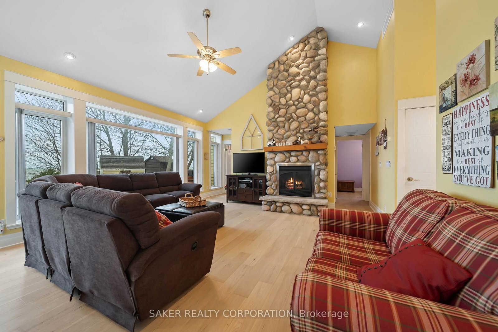 LAKE FRONT Experience with one of the most beautiful beaches on Lake Huron, where silky smooth sand meets shallow, Caribbean-blue waters and just a few steps down the newly reconstructed staircase, 5 minute drive to Grand Bend and is located in the Highland 3 subdivision. The 2-Storey on 71247 Elizabeth Street has 3 bedrooms, 2 bathrooms, and is located on a 219.81 x 70 ft lot in the community of Hay . This property is protected by a seawall and offers unparalleled views both from the hilltop and the home itself, designed to capture ever-changing scenery and breathtaking sunsets. The private yard is shaded by mature trees, while a pressure-treated staircase leads down to a wide, sandy beach with ample space for kayaks, Seadoos, and more. Inside, the 3-bedroom home features an open-concept layout with floor-to-ceiling windows, all new wide plank Harwood flooring throughout (2026), a striking gas fieldstone fireplace, and unobstructed lake vistas. The master suite occupies its own private second-floor retreat with a luxurious ensuite and sweeping views. Additional highlights include a new roof (2024), generous parking for up to eight vehicles on a concrete laneway, and potential for a double-car garage. perfect for lakeside living at its finest.