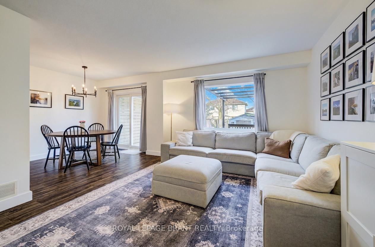 Set on a quiet street in the North end, this beautifully maintained 3 bedroom end-unit townhome offers bright, updated living and a layout that truly makes the most of every inch. The 2-Storey on 96 Wilton Road has 3 bedrooms, 2 bathrooms, and is located on a 126.31 x 28.67 ft lot in the community of Victoria North . Finished top to bottom, the home has been thoughtfully updated and well cared for throughout. The main floor welcomes you with a light-filled, open-concept space featuring new flooring, fresh paint, and a renovated kitchen and bathroom. The layout flows naturally from living to dining, and a walk-out to the backyard - a great extension of your living space with a large deck, built-in pergola, privacy wall, and room for kids or pets to enjoy. Upstairs continues the fresh, updated feel with new carpet, fresh paint, and an updated main bathroom. The primary bedroom sits at the front of the home with a large walk-in closet, while two additional bedrooms at the back offer comfortable space and good storage. The recently finished lower level adds valuable flexibility, with a new rec room and bonus area ideal for a home office, playroom, or additional living space depending on your needs. Set in a family-friendly neighbourhood just minutes from parks, well-rated schools, walking trails, The Guelph Country Club and Guelph Lake, this is a home that balances everyday convenience with easy access to the outdoors and an active lifestyle. Major updates include windows (2023), furnace (2017), roof (2016), kitchen and bathrooms (2020), and flooring (2020).