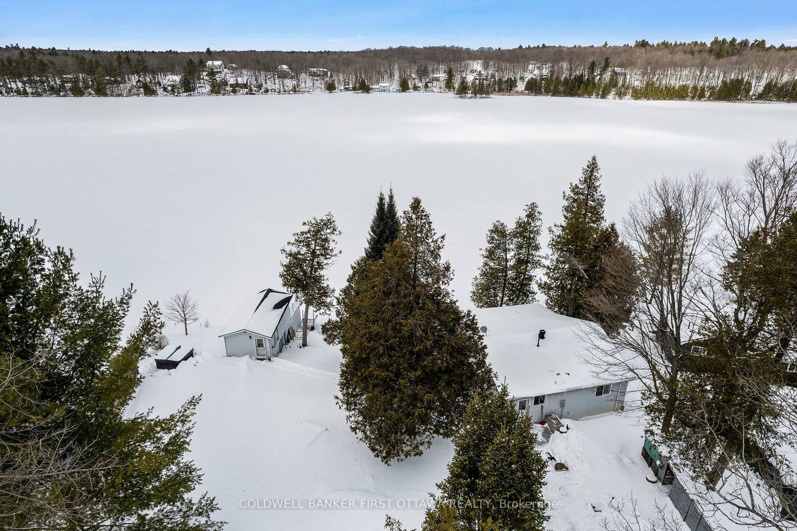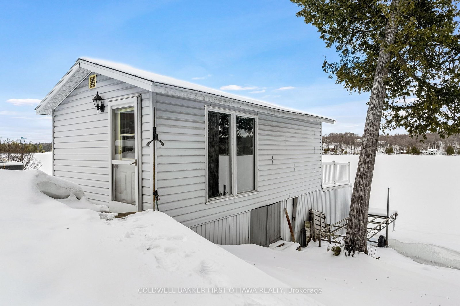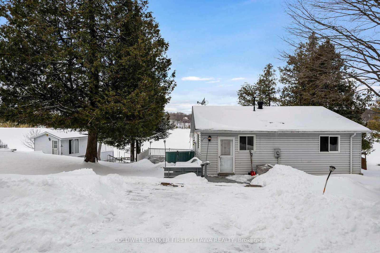 Enjoy life on the shores of picturesque Patterson Lake, while investing in your future. The Bungalow on 214 Parsons Way has 3 bedrooms, 2 bathrooms, and is located on .50-1.99 acres in the community of Lanark Highlands (Dalhousie) Twp . On 1.6 lovely treed acres, this comfy bungalow-home offers you the opportunity to add value and build equity - while watching the lake lap against the shoreline. This three bedroom, 1.5 bathroom home, or all season retreat, also has two garages, one with a workshop. The home's large welcoming BBQ-sized deck has patio doors opening to light-filled living room with woodstove. Adjacent to the living room is full-length sitting room with wall of windows for panoramic never-ending lake views. From the living room, a wide opening takes you into the sunny kitchen with oak cabinetry, desk nook and ceramic floor. The primary bedroom has 4-pc ensuite with combined tub and rainhead shower. Two more bedrooms, a powder room and laundry room with washer, dryer plus lots of storage cupboards. At the waterfront, you have boathouse and on upper level is large bunkie. This guest bunkie has two bedrooms, electric baseboard heating and patio doors to its deck with mesmerizing unobstructed views of the lake. The hobbyist and car enthusiast will appreciate the detached big double garage-workshop that's insulated, has 250V, concrete floor and two drive-thru garage doors with auto garage door opener. The detached single garage includes good-size storage shed. Huge coverall-shed for more storage and projects. Internet & cell service available. Just down the road 10 mins is the Purdon Conservation Area known for its beautiful Showy Lady's Slipper orchids and natural heritage site. Located on private road with Patterson Lake Rd Association overseeing the maintenance & snowplowing of the road; resident fee is $400/year. 15 mins to Lanark, 30 mins Perth or 1 hr Kanata.