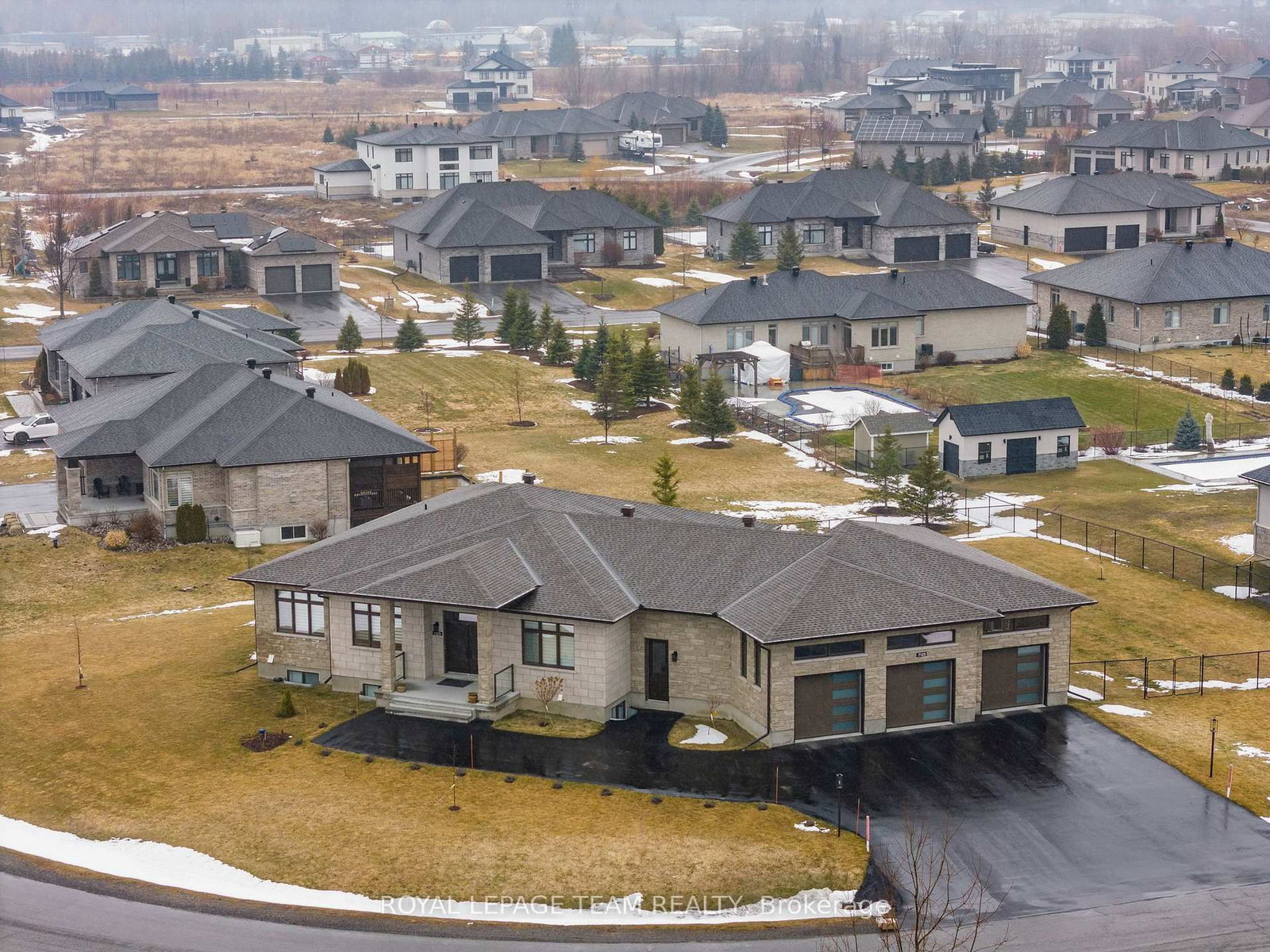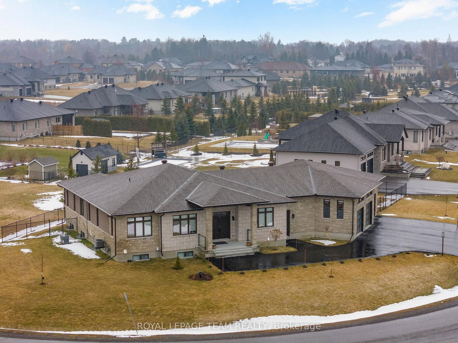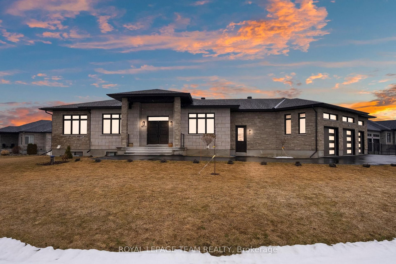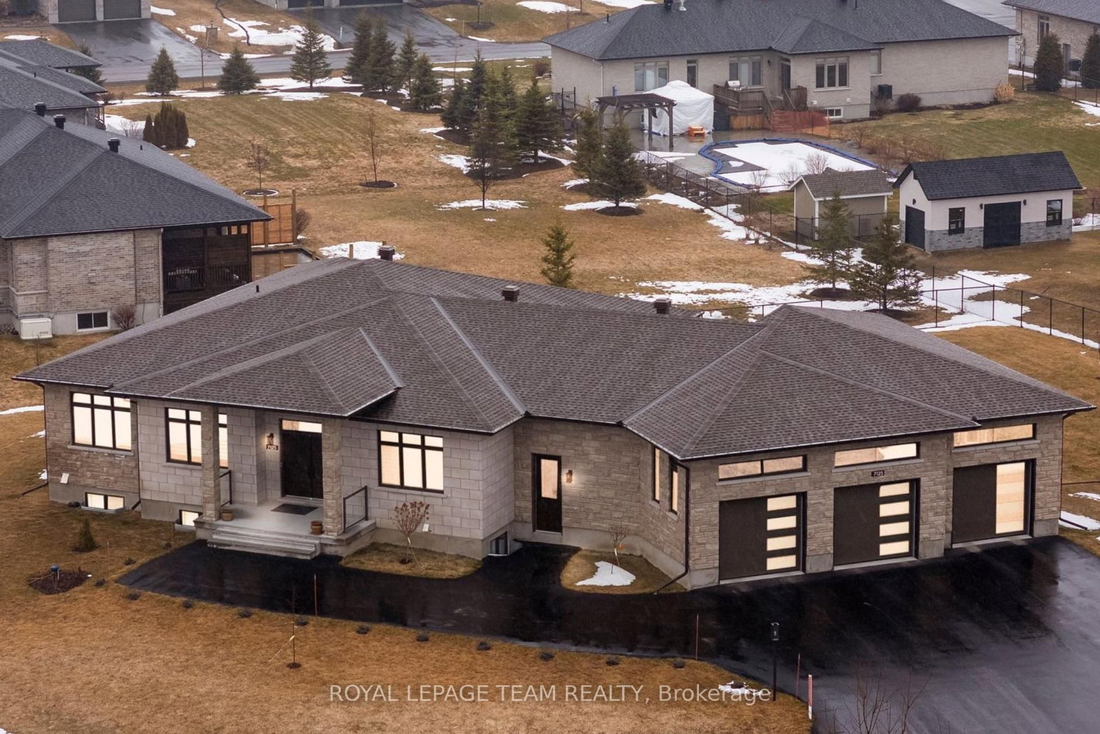 Welcome to this stunning custom bungalow in the sought-after community of Greely, where luxury living meets modern design. The Bungalow on 7125 Still Meadow Way has 3 bedrooms, 4 bathrooms, and is located on a 140.38 x 279.32 ft lot in the community of Greely . Boasting one of the largest bungalow floor plans in the neighbourhood, this sprawling executive residence offers over 4,700 sq ft of living space, a true 3-car attached garage, and sits on a beautifully landscaped and fully fenced half-acre lot. From the moment you arrive, the quality and craftsmanship are undeniable. A grand foyer welcomes you with soaring 11-foot ceilings, designer light fixtures, pot lights, stylish accent walls, and oversized 8-foot interior doors throughout, flowing seamlessly into the breathtaking open-concept kitchen, living, and dining area.The designer kitchen is the centrepiece of this home and an entertainer's dream - anchored by an expansive island, quartz countertops, chic tile backsplash, top-tier stainless steel appliances, a massive walk-in pantry, and abundant cabinetry.The main level offers three generous bedrooms and two spa-inspired 5-piece bathrooms. The primary suite is a true hotel-inspired sanctuary featuring a walk-in closet with custom shelving, a luxurious ensuite with oversized soaker tub, and direct access to the covered rear patio.The fully finished lower level features two additional bedrooms, a flexible den that could serve as a 6th bedroom, a beautifully finished 5-piece bathroom, full second kitchen, dedicated laundry, and spacious rec area. With its own private entrance, this level is a turnkey solution for multi-generational living or a high-income in-law suite.The attached 3-car garage features a fourth door accessible from the backyard - ideal for recreational vehicles or a workshop. The covered rear porch overlooks a peaceful, fully fenced backyard, perfect for summer entertaining. Properties of this calibre and craftsmanship are genuinely rare. This home truly delivers on every level.