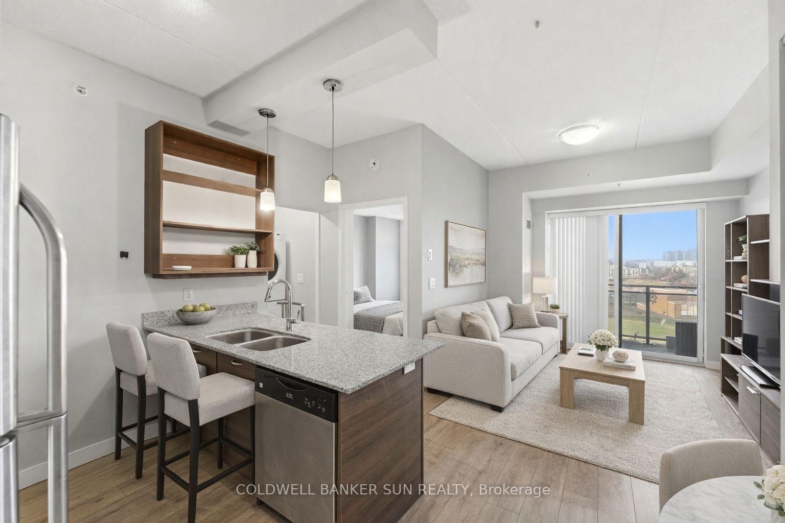 Calling all investors, parents of university students, and young professionals! Welcome to Sage Condos in Waterloo's vibrant University Core. The Apartment on 1308-318 Spruce Street has 1 bedrooms, 1 bathrooms, and is located in the community of . This spacious one-bedroom, one-bathroom suite offers just under 600 sq ft of thoughtfully designed living space. The open-concept layout features a modern kitchen complete with stainless steel appliances and ample cabinetry, seamlessly flowing into a bright and inviting living area. Large windows fill the space with natural light, while the private balcony showcases expansive city views. The bedroom is generously sized and offers comfortable, functional living. Additional highlights include in-suite laundry for added convenience .Ideally located just steps from the University of Waterloo and Wilfrid Laurier University, this is a prime opportunity in one of the city's most reliable rental markets. Enjoy walkable access to shops, restaurants, transit, including the LRT and GO Bus Station, and all essential amenities. Sage Condos offers desirable building amenities such as a rooftop terrace, fitness center, party room, and high-speed internet. Whether you're expanding your investment portfolio, securing a home for a student, or seeking a well-located urban residence, this is a smart and versatile opportunity in the heart of Waterloo. Some images have been virtually staged for illustration purposes.