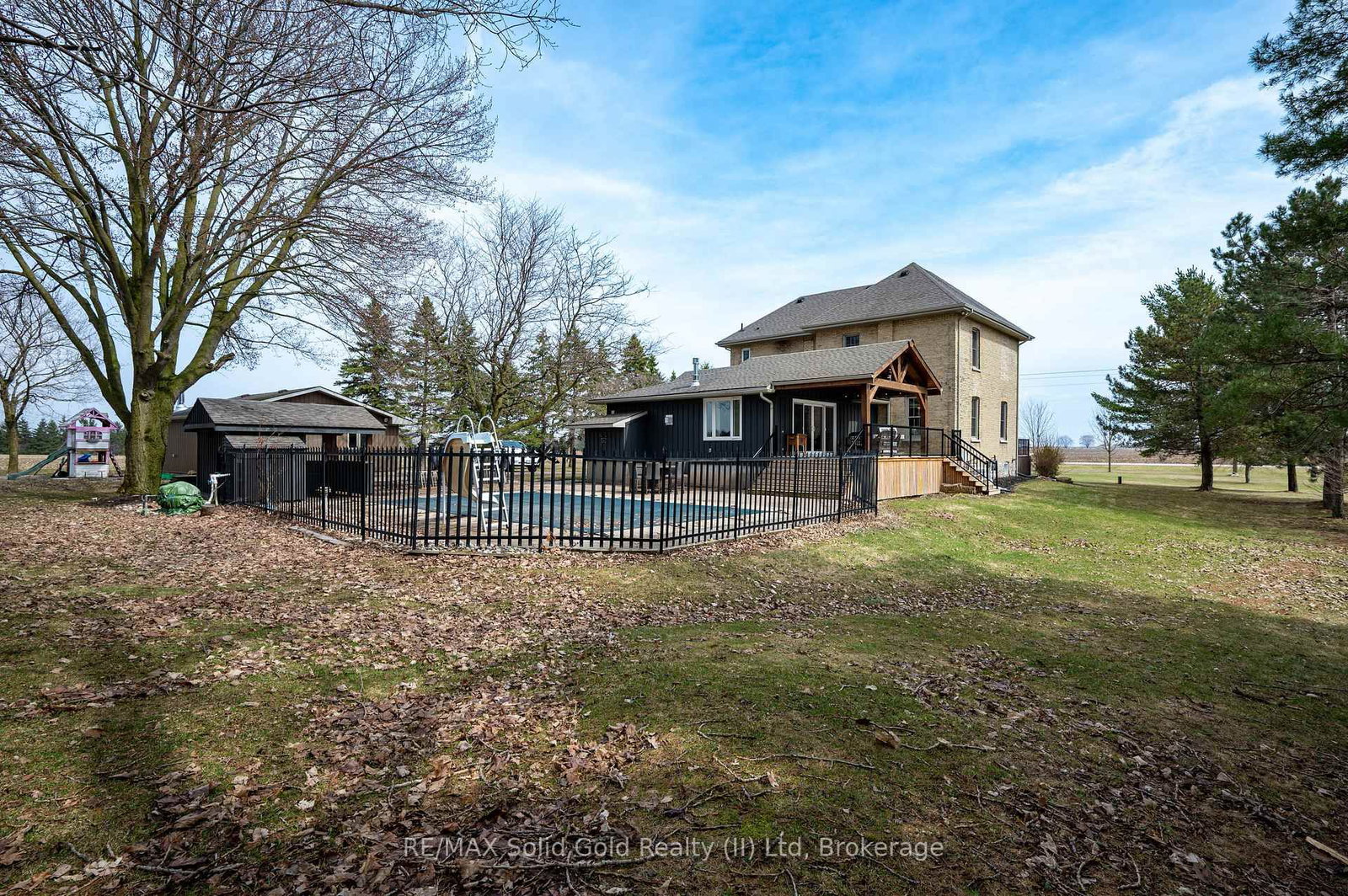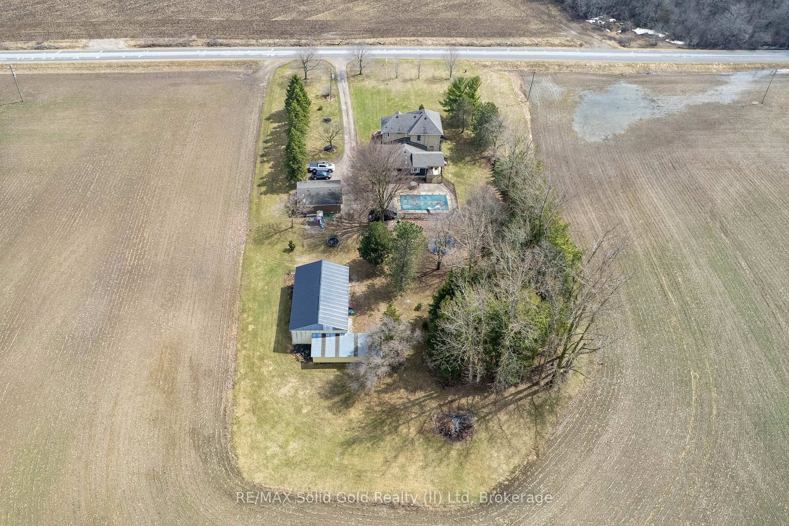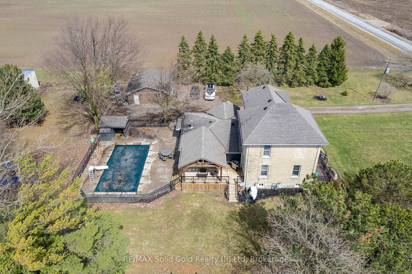 TRANQUIL COUNTRY ESTATE! Located close to St Mary's on a paved road, this stunning 1. The 2-Storey on 1804 Road 138 null has 4 bedrooms, 2 bathrooms, and is located on a 350 x 150 ft lot in the community of Blanshard .2 acre home offers an unparalleled view of singing pines, towering trees, rolling lawns, farmer's fields and a sparkling inground pool. Step into the beautifully updated foyer that has plenty of storage and provides access to a bright laundry room and newer 4 piece bath. The welcoming family room has custom built-in shelving, a lovely stone fireplace, and a walk-out to a gorgeous pergola and scenic views. Cooking will be a joy in the large kitchen and the sunny dining room can host intimate meals for friends and family. The gracious living room features antique pocket doors, convenient built-in shelves and spacious enough to accommodate large family gatherings. Beside it is the den that would also work well as a main floor bedroom. Upstairs you will find 4 spacious bedrooms and a charming bath. Gardeners and hobbyists will love the detached garage, detached shop with hydro (gas lines installed to shed but not hooked up), 3 decks and firepit. A FRAMEABLE VIEW!