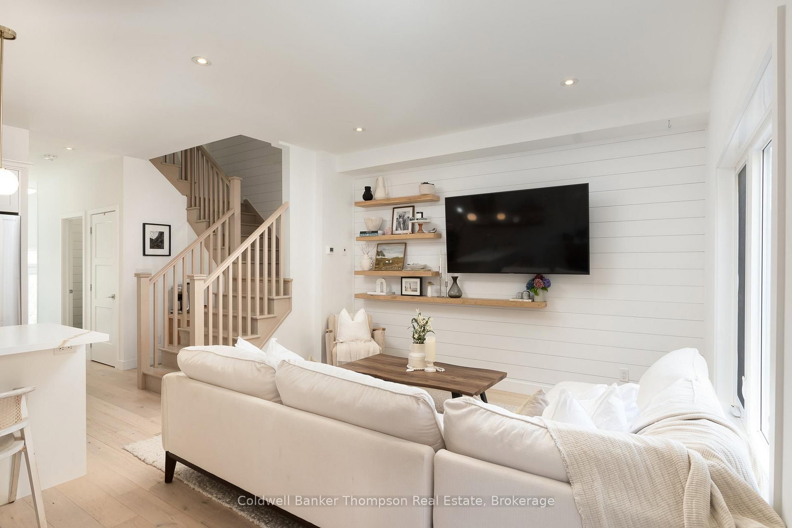 This end-unit townhouse combines comfort, style, and convenience in a sought-after location. The 2-Storey on 11 Cascade Lane has 3 bedrooms, 3 bathrooms, and is located on a 95.86 x 27.55 ft loton < .50 acres in the community of Chaffey . A private paved driveway and covered porch entry welcome you, with the neutral exterior palette of stone and vinyl adding timeless curb appeal. Inside, a spacious foyer with a large closet and direct access from the single-car garage creates a practical entry point. The open-concept main floor blends living, dining, and kitchen spaces, designed for everyday living and entertaining. The kitchen features quartz countertops, a generous island with breakfast bar seating, floating shelves, and shiplap accents that continues in the living room for a modern touch. Sliding doors lead to a spacious deck overlooking the beautiful rockscape behind the home, offering a peaceful and private outdoor retreat. Upstairs are three bedrooms, including a primary suite with walk-in closet and a 4-piece ensuite complete with a soaker tub and separate glass shower. Two additional bedrooms share a well-appointed 4-piece bathroom, while the laundry is conveniently located on this level. The lower level provides great storage options for your needs. On full municipal services including natural gas, water, sewer, and high-speed internet, this home ensures convenience and efficiency. With quick access to Highway 11 for commuting and just minutes to downtown for shops, dining, and amenities, this property is an ideal blend of modern living and prime location.