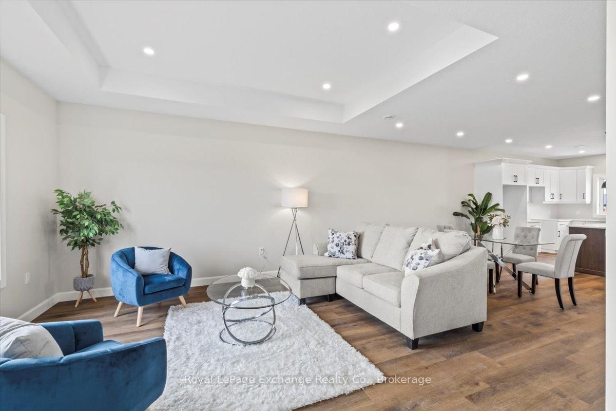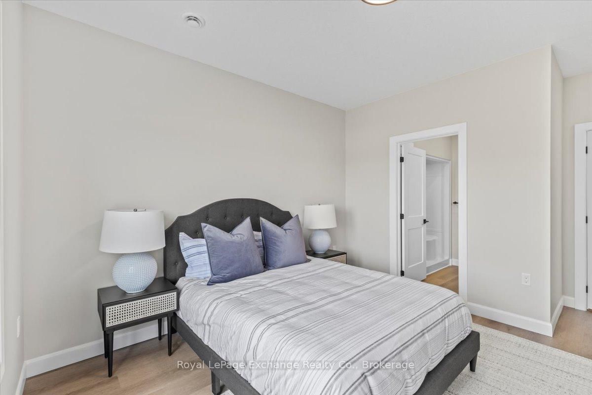 Welcome to Camden Estates where luxury meets effortless one-level living in a private enclave setting. The Bungalow on 54-1071 Waterloo Street N has 2 bedrooms, 2 bathrooms, and is located in the community of Saugeen Shores . This beautifully designed 2 Bedroom, 2 bathroom vacant land condo townhome offers a perfect blend of comfort, style and low maintenance lifestyle. This particular unit has a longer driveway suitable to park 2 cars. Step inside to discover a bright, open-concept layout featuring 9 ft ceilings, a tray ceiling in the Living room, and an abundance of natural light enhanced by modern pot lighting throughout. The home is finished with elegant luxury vinyl flooring and in-floor heating, providing both warmth and sophistication year-round, along with the added comport of air conditioning. The stylish kitchen with full height, quality cabinetry, quartz countertops, and centre island with pendants and a pantry, is ideal for both everyday living and entertaining. A bonus is the direct walkout access to your west facing patio --perfect for enjoying stunning sunset views. The spacious primary suite offers a walk-in closet, a private 3 pc ensuite. All this is within a short walk to the New Aquatic Center, Starbucks, Groceries and Restaurants. Take advantage of the Government rebates effective April 1st, 2026. HST not included in price, qualified buyers to sign back rebate to Seller.