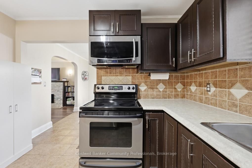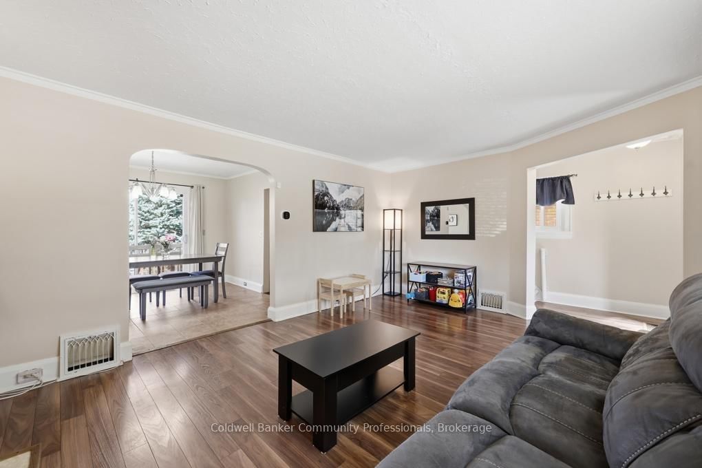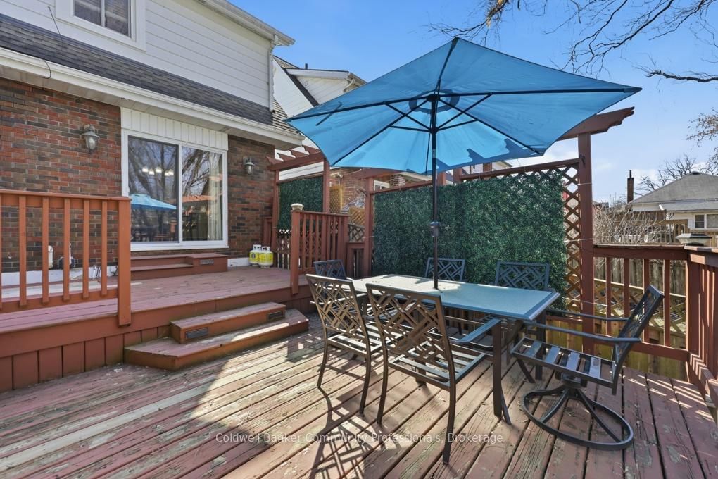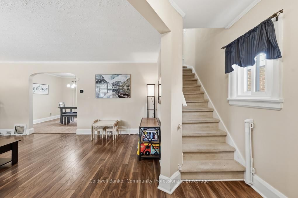 Welcome to 320 Darling Street -a charming two-storey brick home offering 3 bedrooms, 2 bathrooms, and over 1,100 sq ft of comfortable living space, complete with a fully finished basement. The 2-Storey on 320 Darling Street has 3 bedrooms, 2 bathrooms, and is located on a 132 x 32 ft lot in the community of .The main floor features a bright, open feel with laminate flooring throughout the foyer and living room. The inviting living area is highlighted by a modern electric fireplace and a large front window that fills the space with natural light. The dining room offers convenient walkout access to the backyard, while the adjoining kitchen is finished with tile flooring, dark wood cabinetry, stainless steel appliances, a hood range microwave, and contemporary track lighting.Upstairs, you'll find three bedrooms and a stylish 4-piece bathroom. The fully finished basement extends your living space with updated flooring throughout, a 3-piece bathroom, and plenty of room for a recreation area, home office, or guest suite.New furnace in 2023. Outside, enjoy a deep, fully fenced backyard designed for entertaining, featuring an two-tier deck and a relaxing hot tub.A fantastic opportunity to own a move-in-ready home in a great location-book your private showing today!