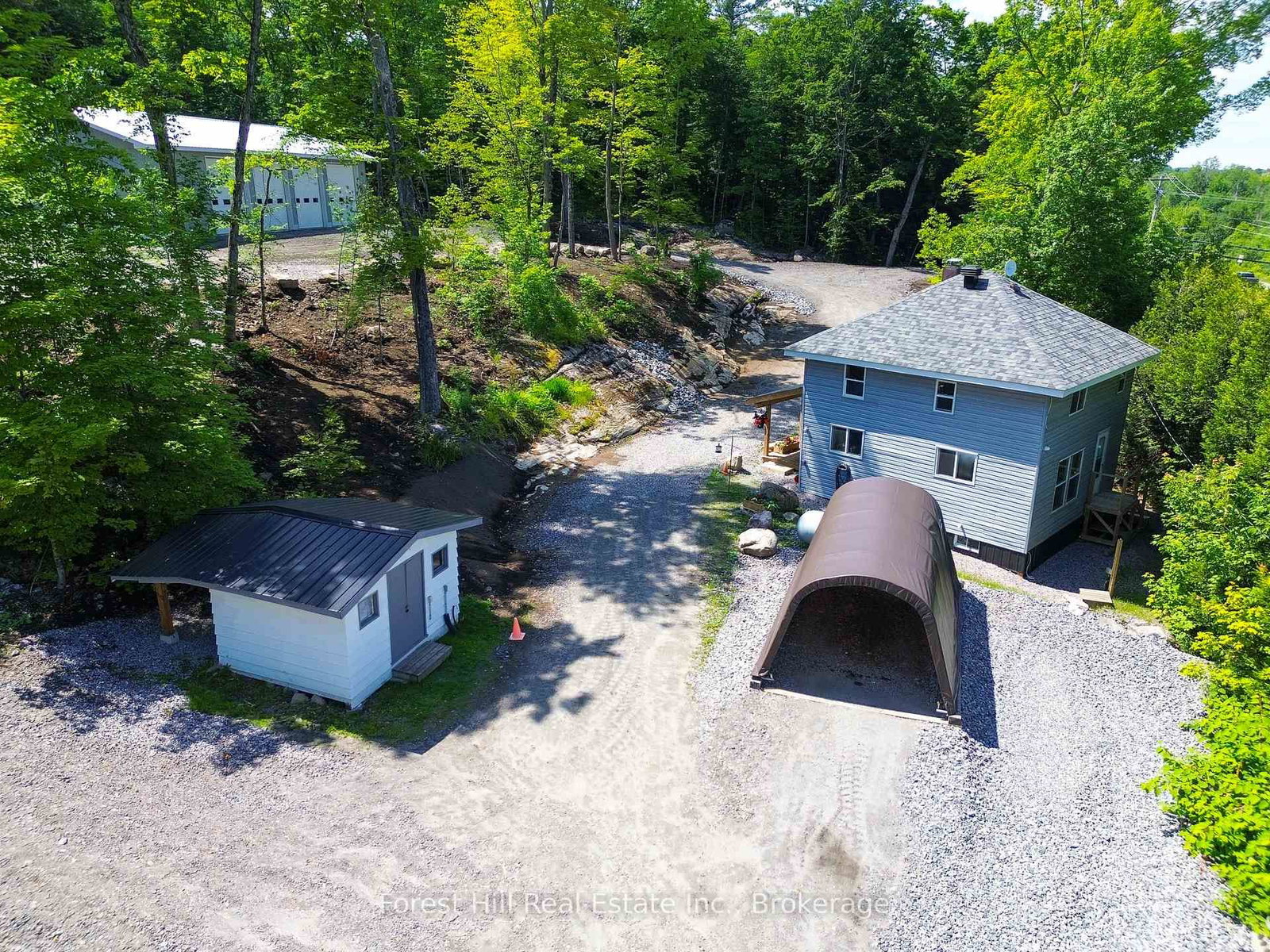 HIGH-EXPOSURE MUSKOKA HUB - HOME BUSNESS POTENTIAL WITH RESIDENTIAL FLEXIBILITY Exceptional opportunity in the heart of Muskoka Lakes with 576 feet of frontage on Muskoka Rd 169 at a high-traffic intersection, offering unmatched visibility for a home-based business or contractor operation. The 2-Storey on 4061 Muskoka Rd 169 Road has 3 bedrooms, 2 bathrooms, and is located on a 628 x 588.14 ft loton 5-9.99 acres in the community of Medora .This 5.5-acre RU3-zoned property is purpose-built for versatility. The standout feature is the new 30' x 64' four-bay shop with 15' ceilings, 12' doors, and in-floor radiant heat roughed in-ideal for trades, storage, or service-based businesses. Ample parking and easy access make it highly functional for day-to-day operations.Approved for a second dwelling up to 7,500 sq ft, this property offers significant upside for expansion, staff housing, or multi-generational use-further enhanced by current government incentives on HST and development fees.The existing 3-bedroom, 2-bath home has been extensively updated (2019-2020) with new roof, siding, insulation, windows, furnace, and water systems. Comfortable and efficient, it's perfectly suited as an owner's residence or staff accommodation while you build your vision. A second driveway is already in place leading to the future building site, allowing you to move forward immediately. The property is well-treed for privacy and includes direct access to Ada Lake. Located just minutes to Bala, Port Carling, and Highway 400, this is a strategic base for anyone operating across Muskoka. Ideal for contractors, property managers, trades, or investors seeking a high-visibility, multi-use asset with future development potential.