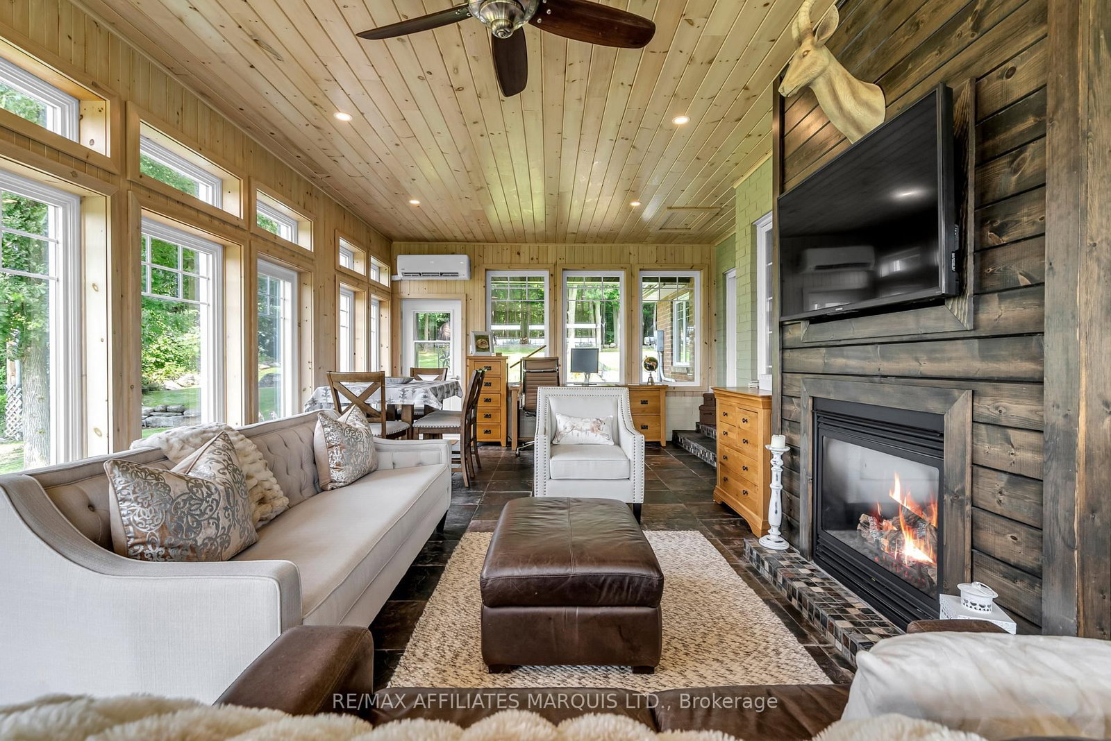 Perched high atop a picturesque 3-acre hilltop, this stunning country retreat offers breathtaking panoramic views and an unmatched sense of privacy. The 1 1/2 Storey on 18833 Paragon Road has 2 bedrooms, 3 bathrooms, and is located on a 800 x 150 ft lot in the community of South Glengarry (Charlottenburgh) Twp . From the moment you arrive, the curb appeal and distinctive charm set this property apart. Step inside to a truly unique interior where style and function blend seamlessly. The custom kitchen is a standout feature, complete with solid wood cabinetry, quartz countertops, thoughtful pull-outs, and an abundance of storage, all complemented by a cozy built-in breakfast nook. Wide plank flooring carries through the main living areas, creating warmth and continuity throughout. Enjoy a formal dining space for entertaining and a welcoming living room featuring a built-in entertainment center. One of the home's most captivating spaces is the spectacular four-season sunroom, anchored by a fireplace and surrounded by wall-to-wall windows that flood the space with natural light while showcasing the incredible views. The main floor is completed by a stylish 2-piece bathroom. Upstairs, you'll find two generously sized bedrooms and a beautifully appointed 4-piece bathroom. The fully finished basement adds even more living space with a spacious rec room, an additional bedroom, and a high-end bathroom featuring a walk-in shower, along with its own separate exterior access. A metal roof and cold climate heat pump provide efficiency, durability, and peace of mind. Outside, the property continues to impress with a heated 2-car garage, an additional 1-car garage, and a massive driveway offering ample parking for all your vehicles, toys, and guests. Extensive landscaping, including perennial gardens and tiered stone walls, enhances the natural beauty of the surroundings, creating a truly serene and unforgettable setting. This is more than a home, it's a lifestyle.