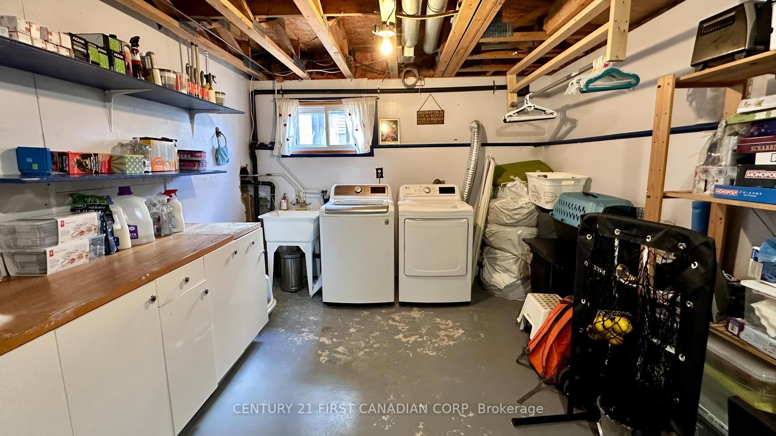 Fridge, Stove, Dishwasher, Microwave, Washer, Dryer, Curtains & Blinds, 2 Large beam Shelves in basement
