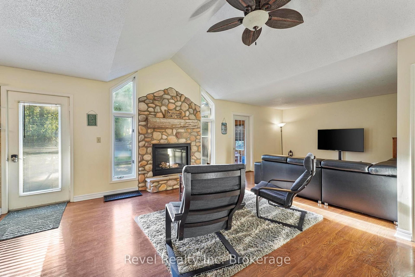Experience the best of lakeside living with this beautifully maintained year-round home or cottage retreat, offering deeded access to the sandy shores of Lake Huron. The Bungalow on 71842 Sunview Avenue has 3 bedrooms, 1 bathrooms, and is located on a 110.68 x 75.79 ft lot in the community of Hay . Set in a peaceful location just minutes from Grand Bend, this property delivers the perfect balance of relaxation and functionality. Step inside to an open and inviting main living space featuring a stunning cathedral ceiling and a cozy gas fireplace with stone surround and rustic wood mantel. The bright sunroom, finished with warm pine walls and ceilings, provides a comfortable space to unwind year-round. The main level offers three bedrooms, including a primary suite with private access to the back deck and a semi-ensuite bathroom complete with a jacuzzi tub and separate shower. Convenient main floor laundry adds to the ease of everyday living. The lower level features impressive ceiling height just under 8 ft and offers excellent potential for future finishing, whether you're looking to expand living space, create a rec room, or add additional bedrooms. Recent updates include a new furnace (2023) and tankless water heater, ensuring efficient and reliable comfort. Outdoor living is a standout feature with composite decking on both the front and back of the home, ideal for entertaining or enjoying quiet mornings. The property also includes a durable steel roof, a storage shed with hydro, natural gas BBQ hookup, and a spacious yard with a stone firepit for evenings under the stars. Whether you're looking for a full-time residence or a weekend escape, this property offers incredible value in a sought-after lakeside community.