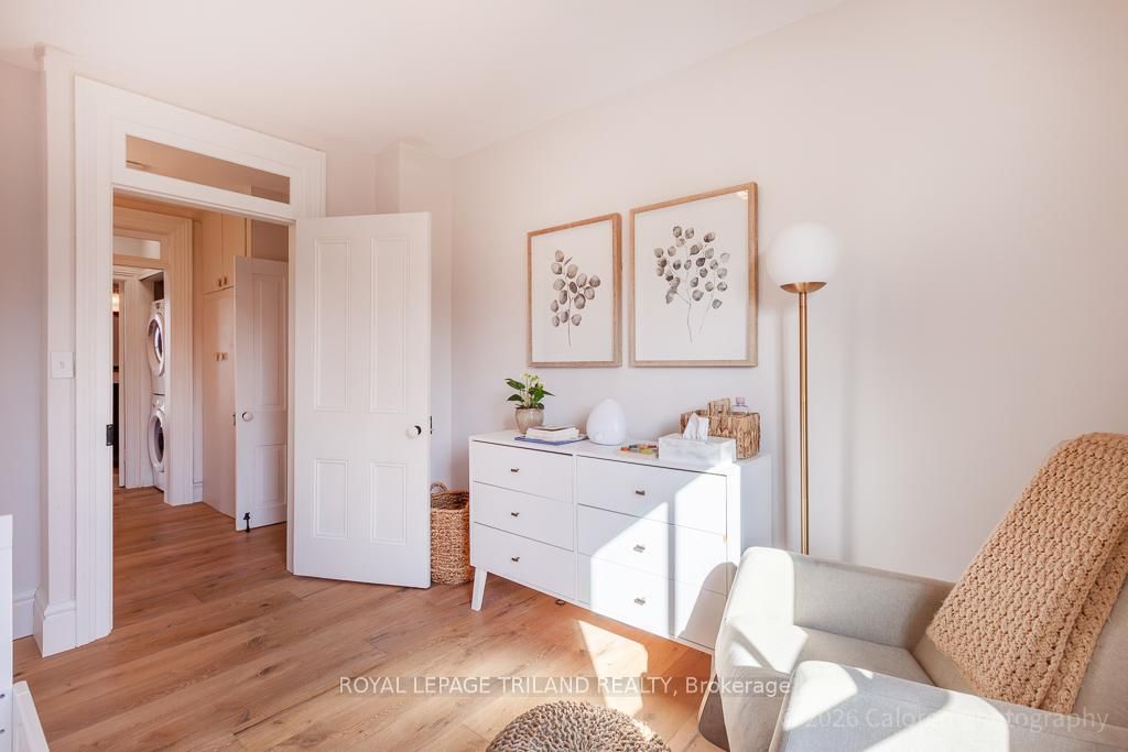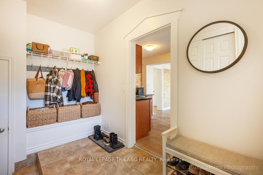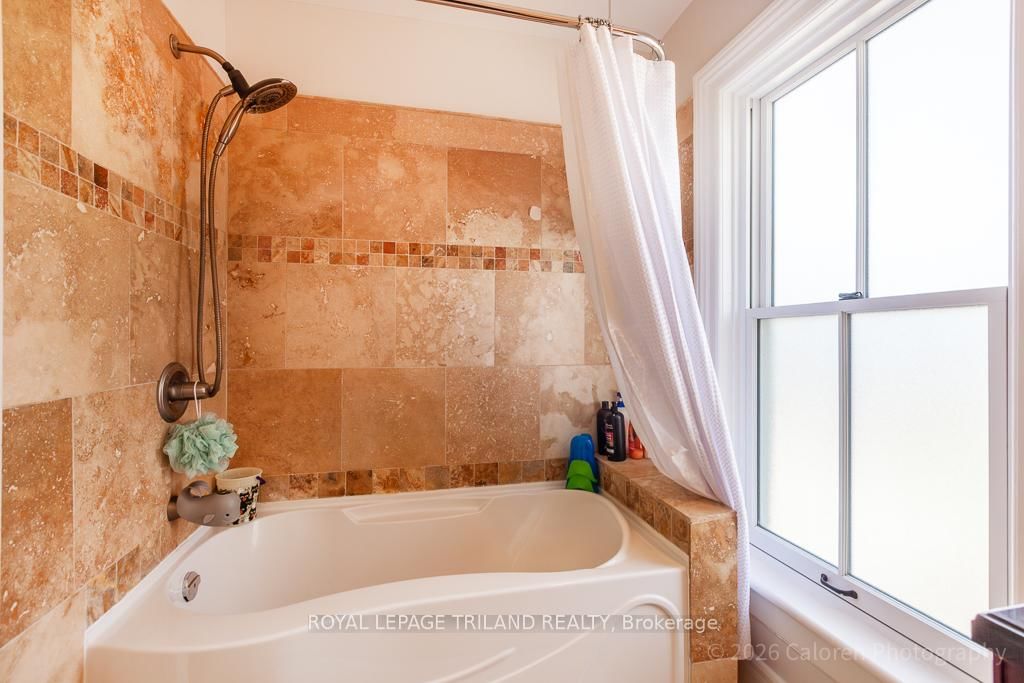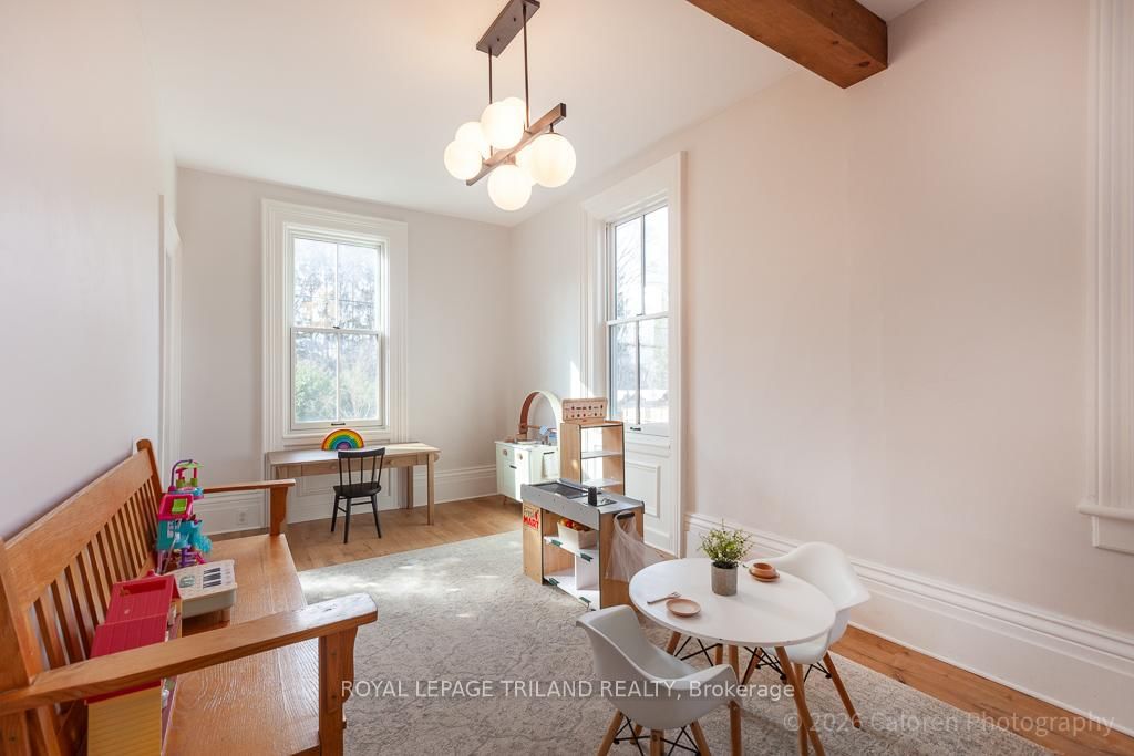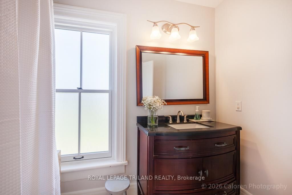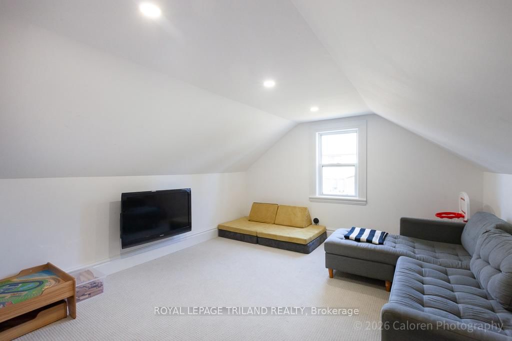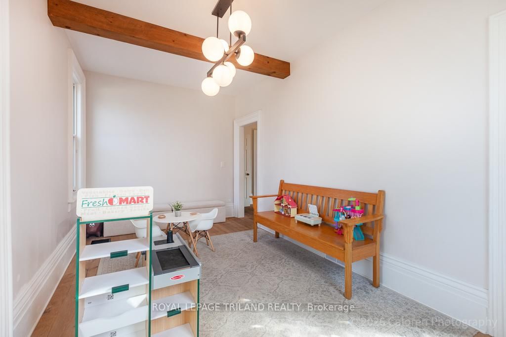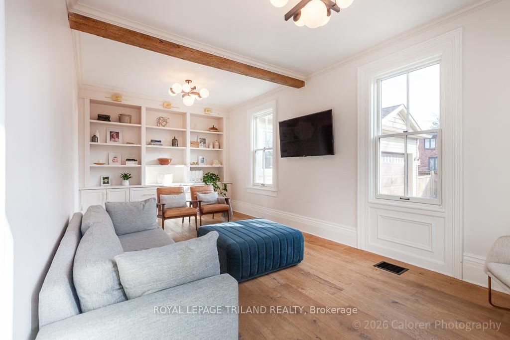 This exceptional late-1800s residence seamlessly blends historic character with thoughtful modern updates. The 2-Storey on 1135 Riverside Drive has 3 bedrooms, 2 bathrooms, and is located on a 98.14 x 100.25 ft lot in the community of North O . Impeccably maintained inside and out, the home offers timeless charm coupled with everyday functionality.Featuring three bedrooms and two full bathrooms, the inviting interior showcases exquisite details throughout. A welcoming front foyer with leaded stained glass accents opens to a beautifully restored staircase boasting a handcrafted newel post and railing. Heated floors in the mudroom add comfort and convenience, while distressed plank flooring flows throughout, creating a calm, cohesive aesthetic. The living room features a custom-built wall unit with shelving and drawers, combining style and practicality. High ceilings, wide baseboards, and neutral tones accentuate the home's light-filled spaces.The kitchen and dining area highlight beautiful exposed brick walls, granite countertops, a convenient coffee bar with bar fridge, and access to a spacious multi-level deck-perfect for entertaining or quiet evenings outdoors.Upstairs, three bright bedrooms include remote-controlled blinds and a versatile bonus room ideal for a home office, play area, or cozy snug. Custom double-hung replacement windows replicate the original design, providing energy efficiency without sacrificing charm. Distinctive light fixtures complete the interior's refined ambiance.Outdoors, the fully fenced yard features a new fence with pergola-style gate and landscaped grounds designed for relaxation and gatherings. Rare for a home of this era, the oversized double garage offers exceptional storage and parking.Ideally located near Hyde Park and the Oxford shopping district, with Remark and Starbucks moments away, the property is steps from the golf course, Thames River trails, and local sports fields-an outstanding combination of heritage, comfort, and convenience.
