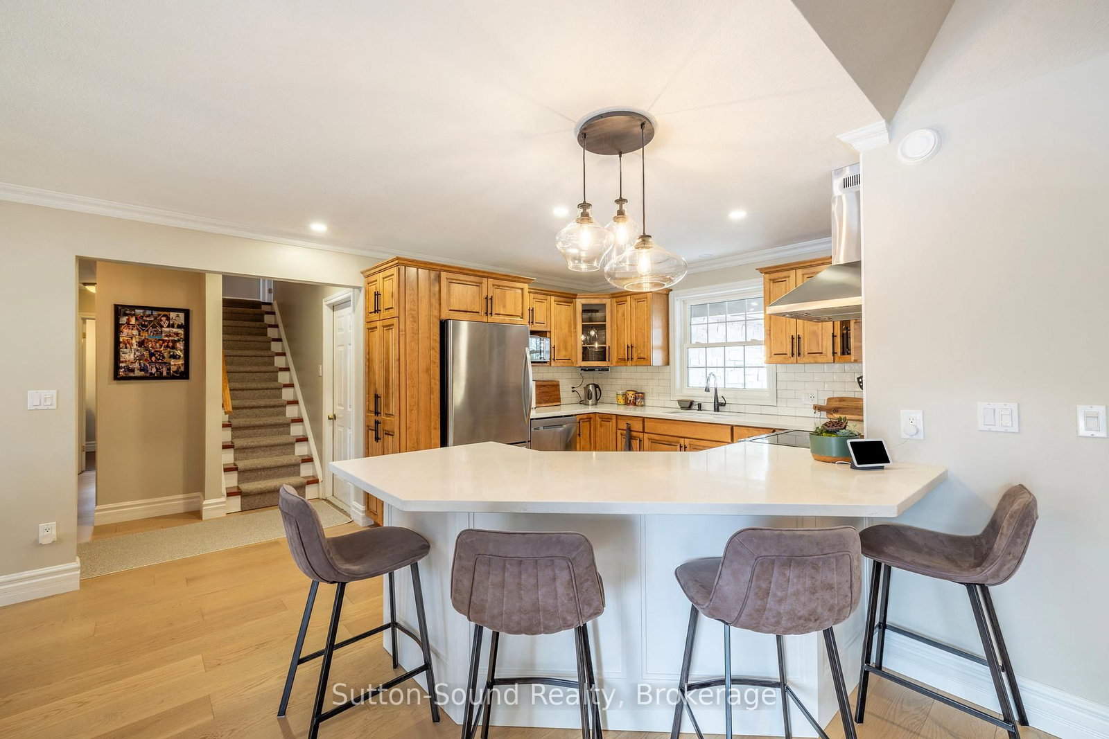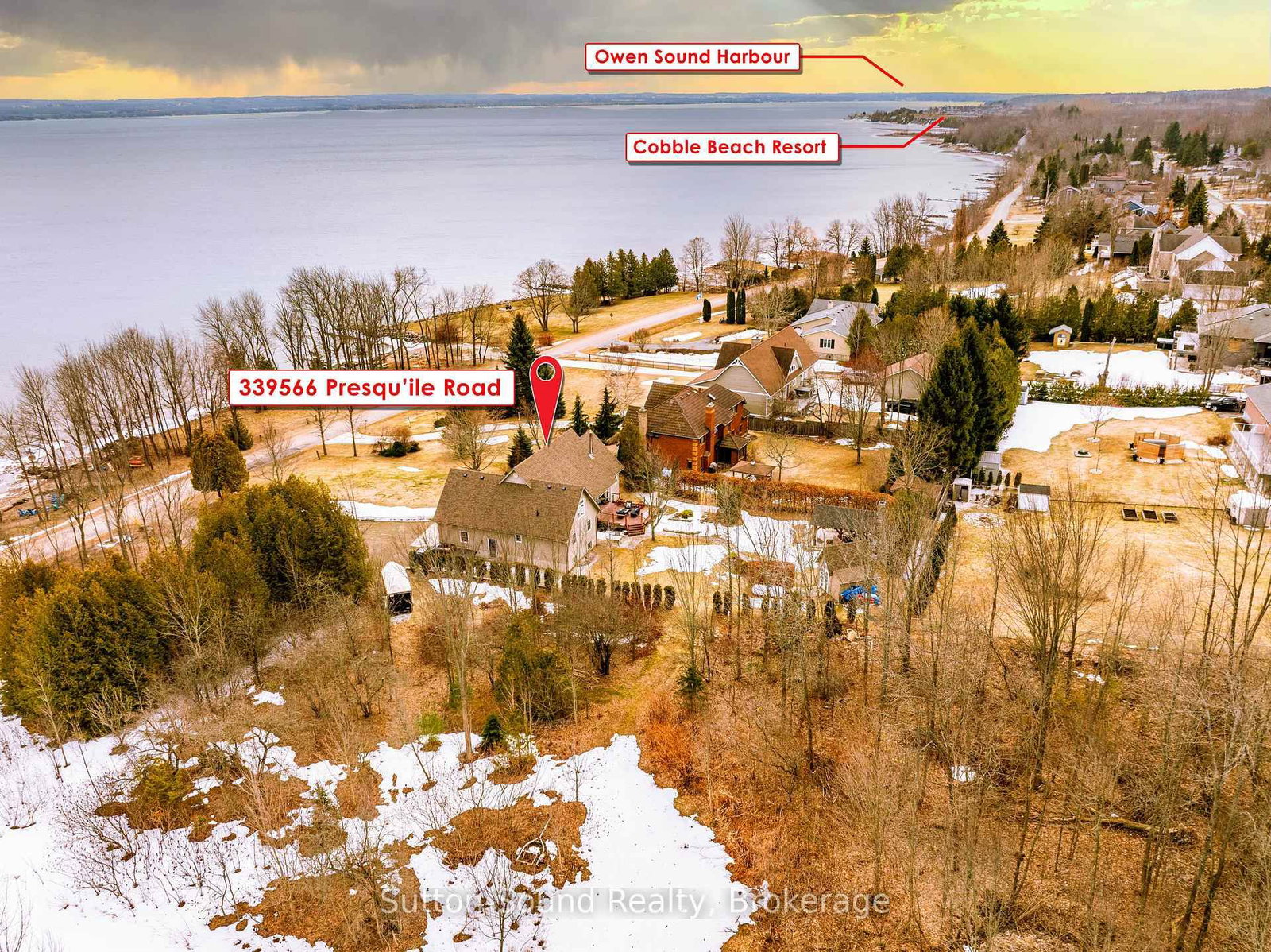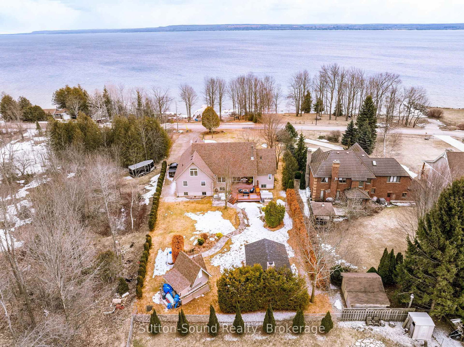 Stunning Georgian Bay Retreat with Exceptional Indoor & Outdoor Living. The 1 1/2 Storey on 339566 PRESQU'ILE Road has 6 bedrooms, 4 bathrooms, and is located on a 250.93 x 97.6 ft lot in the community of Georgian Bluffs . Discover the ultimate Georgian Bay lifestyle in this beautifully appointed property, where space, comfort, and outdoor living come together seamlessly. With convenient water access and your own private dock just across the road, enjoy effortless days on the bay and tranquil evenings in your own secluded retreat. Set on a large meticulously landscaped lot, this property is designed for making memories. Start your mornings on the covered front or back porch, unwind in the sun on the expansive rear deck or at the waterfront, and host unforgettable evenings gathered under the elegantly covered patio, complete with an outdoor fireplace. Inside, the home impresses with its generous layout, perfectly suited for large families and those who love to entertain. Featuring six spacious bedrooms, four bathrooms, a fully finished basement, and a versatile upper loft, there is ample room to live, work, and unwind. The bright, open-concept main level is filled with natural light and features a welcoming living and dining area that flows seamlessly into a well designed kitchen, complete with elegant birch cabinetry and abundant storage. Convenient main floor guest bedrooms, laundry, and a generous primary suite with a private 4-piece ensuite, provide both comfort and functionality. Impeccably maintained and reflecting true pride of ownership throughout, this is a rare opportunity to enjoy expansive living both inside and out, just steps from the water.