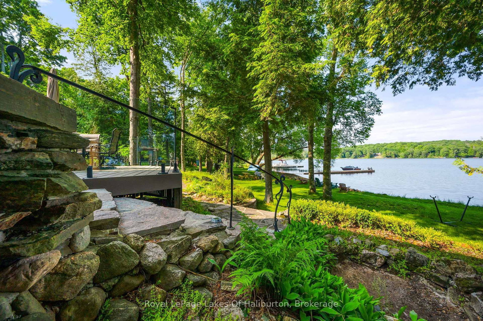 Imagine waking to shimmering lake views and ending each day with breathtaking western sunsets over your own sandy shoreline. The 1 1/2 Storey on 1073 Grass Lake Road has 4 bedrooms, 4 bathrooms, and is located on a 285 x 88.25 ft loton .50-1.99 acres in the community of Dysart . This exceptional 4-bedroom, 4-bathroom executive lake house on the scenic Kashagawigamog five-lake chain offers year-round luxury in the heart of the Haliburton Highlands - with the rare ability to boat directly into town. Set on a level lot with pristine waterfront, this home blends modern executive living with timeless charm. Enter through a custom antique wood door and be greeted by a dramatic wall of windows framing uninterrupted lake views. The open-concept living area features a stunning stone wood-burning fireplace, cozy sitting area, breakfast nook, and walkout to expansive lakeside decking. The gourmet kitchen is a chef's dream, boasting $100K in high-end Thermador stainless steel appliances, including a wine fridge, oversized sit-up island, dual deep sinks, and seamless flow into the cathedral-ceiling dining room with walkout to a glass-paneled deck. The main-floor primary suite is a private retreat with its own lakeside walkout, a spacious walk-in closet, and a luxurious 5-piece ensuite featuring a soaker tub and glass shower with seat. A second main-floor bedroom with a 3-piece ensuite adds convenience, while two generous upper-level bedrooms and a 5-piece bath provide comfort for family and guests. There's even the rare opportunity to purchase the adjacent separately deeded waterfront lot - ideal for creating a private family compound. All this, just a short walk to town, the hospital, medical center, and local amenities. Luxury, privacy, nature, and convenience - perfectly combined.