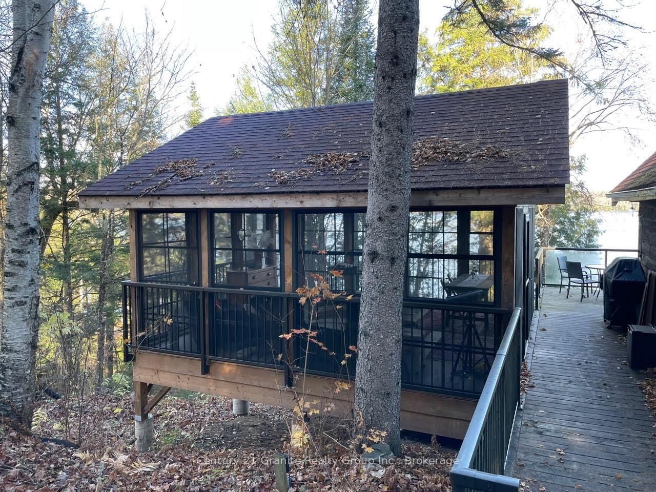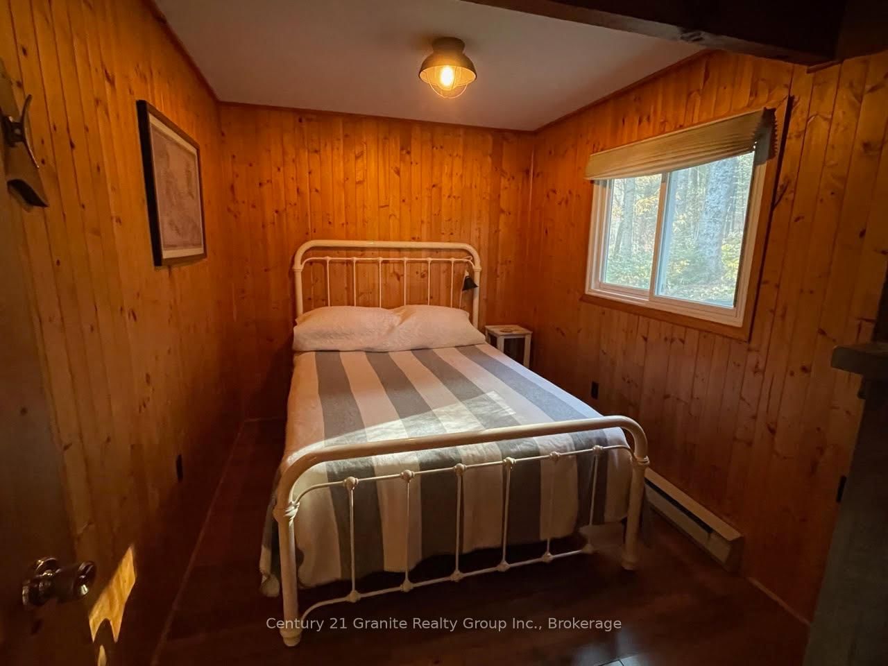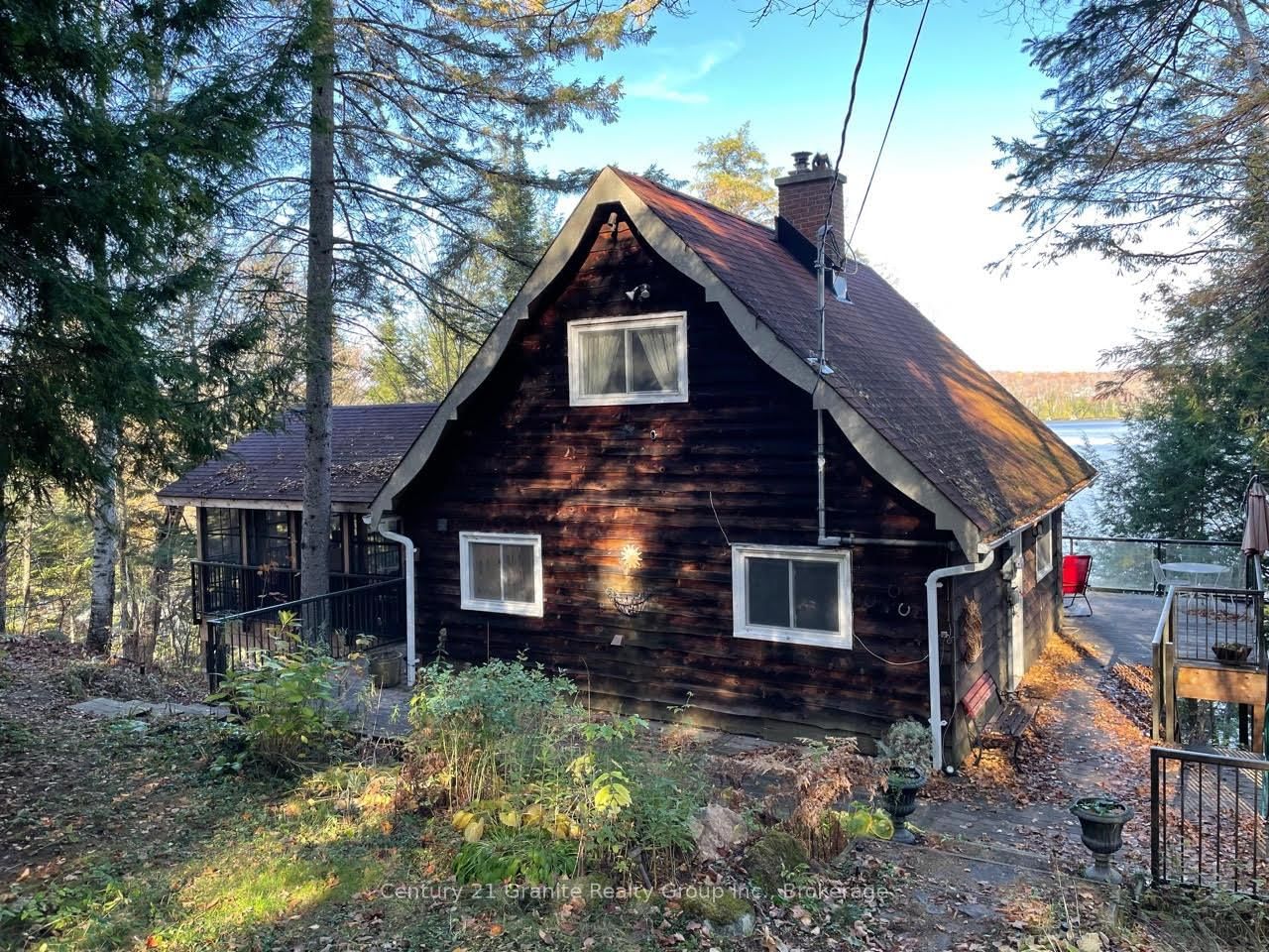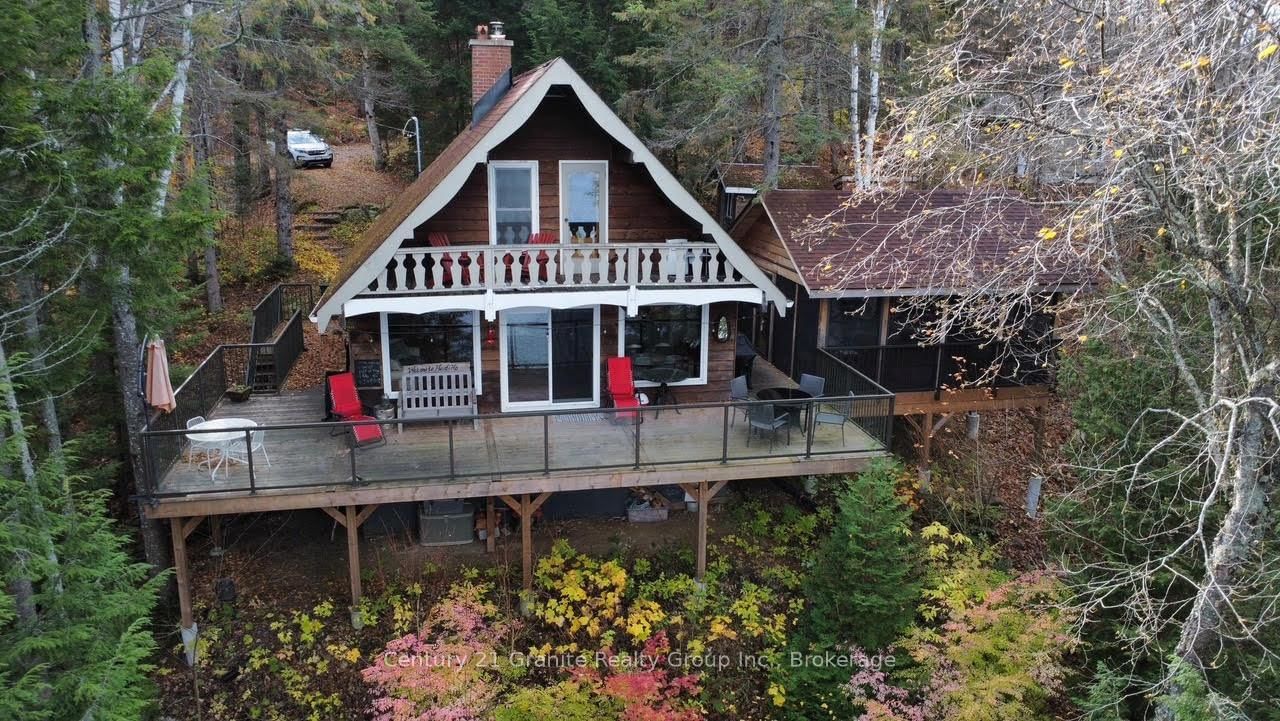 Welcome to this lovely 4-season chalet on spectacular Miskwabi Lake! Large lot with 190 feet of waterfront with clean rock and sand shoreline, and incredible big-lake view. The Chalet on 1038 Broken Paddle Road has 3 bedrooms, 1 bathrooms, and is located on a 144 x 190 ft loton .50-1.99 acres in the community of Dudley . Almost an acre of land, well-treed for great privacy. Nice level area at the waterfront and deep water off the dock - perfect for swimming and boating. Enjoy summer sunsets from the dock. Open-concept main floor features custom kitchen with granite countertops and island, and picture windows framing the awesome lake views. Walkout to large wraparound deck - and new 18' x 18' 3-season screened porch/sunroom with retractable window system - outdoor entertaining at its finest! Main floor has one bedroom and 4-piece bath. Upstairs there are two more bedrooms, including main bedroom facing the lake with its own private balcony. Downstairs there is a cozy rec room with walk out, wood stove, and lower floor laundry. Heated water line with UV system. Plus there's a newer 32' x 16' garage, with separate storage room - great for office space, games room or workshop. Easy access by year-round Municipal road - Broken Paddle is a quiet dead-end road with only 10 cottages. Just 20 minutes to Haliburton village for shopping and services. Miskwabi Lake is part of a 2-lake chain with Long Lake - located at the top of the watershed for exceptional water quality. Enjoy miles of boating, water sports and lake trout fishing on this desirable lake system.