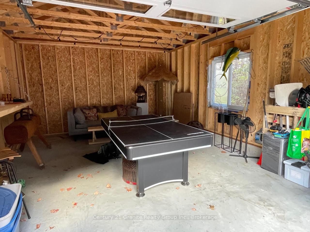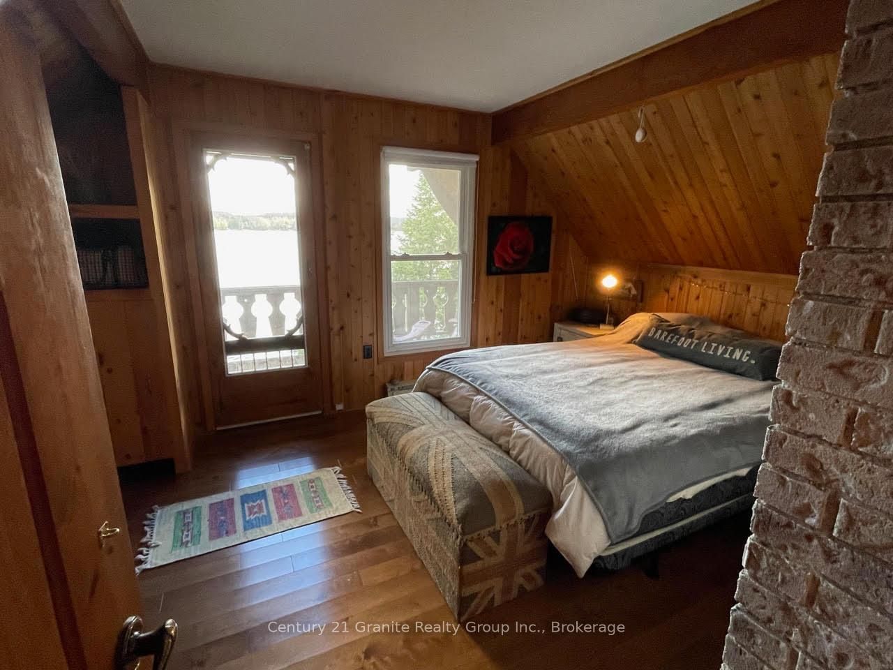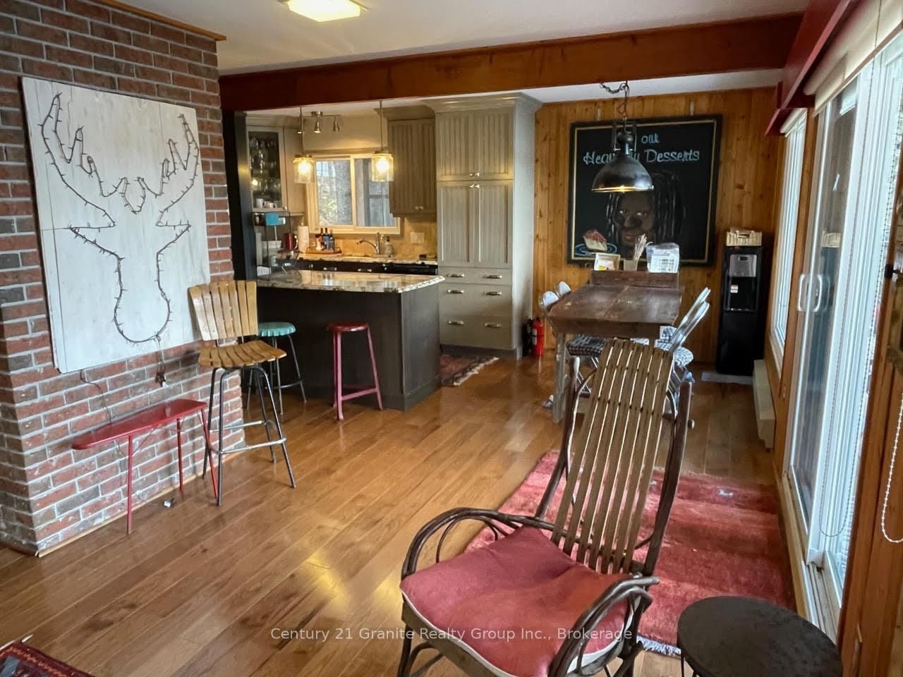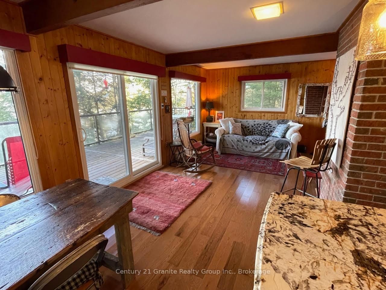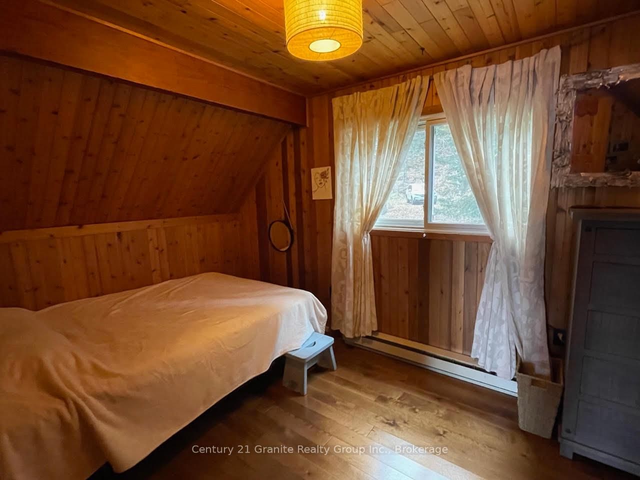 Welcome to this lovely 4-season chalet on spectacular Miskwabi Lake! Large lot with 190 feet of waterfront with clean rock and sand shoreline, and incredible big-lake view. The Chalet on 1038 Broken Paddle Road has 3 bedrooms, 1 bathrooms, and is located on a 144 x 190 ft loton .50-1.99 acres in the community of Dudley . Almost an acre of land, well-treed for great privacy. Nice level area at the waterfront and deep water off the dock - perfect for swimming and boating. Enjoy summer sunsets from the dock. Open-concept main floor features custom kitchen with granite countertops and island, and picture windows framing the awesome lake views. Walkout to large wraparound deck - and new 18' x 18' 3-season screened porch/sunroom with retractable window system - outdoor entertaining at its finest! Main floor has one bedroom and 4-piece bath. Upstairs there are two more bedrooms, including main bedroom facing the lake with its own private balcony. Downstairs there is a cozy rec room with walk out, wood stove, and lower floor laundry. Heated water line with UV system. Plus there's a newer 32' x 16' garage, with separate storage room - great for office space, games room or workshop. Easy access by year-round Municipal road - Broken Paddle is a quiet dead-end road with only 10 cottages. Just 20 minutes to Haliburton village for shopping and services. Miskwabi Lake is part of a 2-lake chain with Long Lake - located at the top of the watershed for exceptional water quality. Enjoy miles of boating, water sports and lake trout fishing on this desirable lake system.
