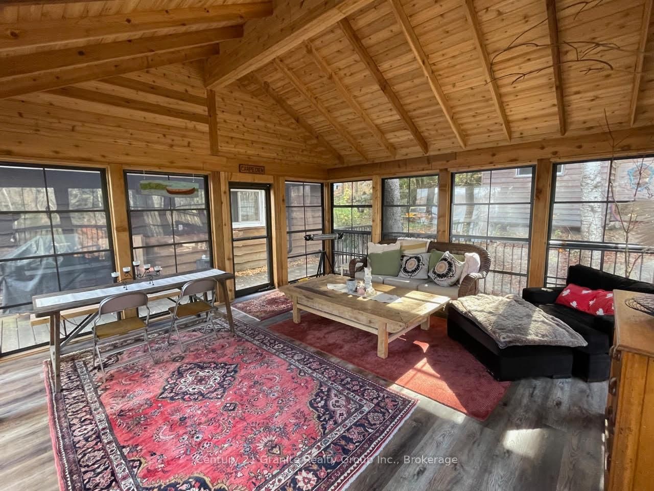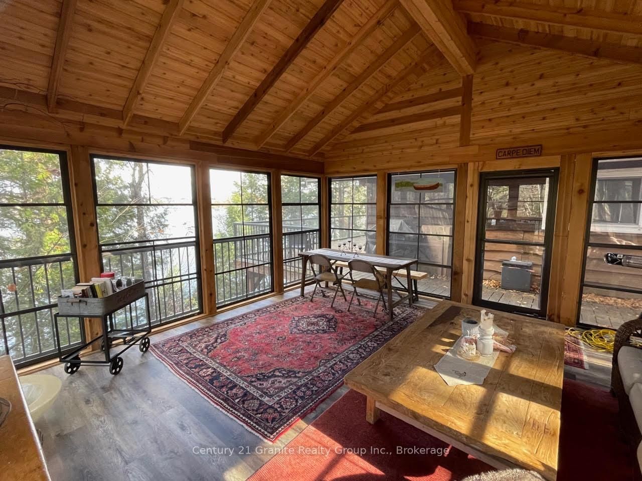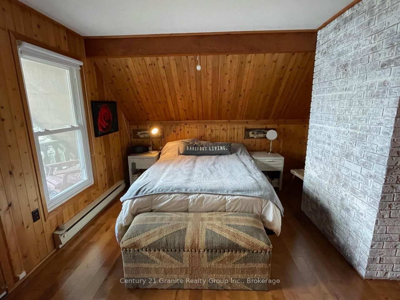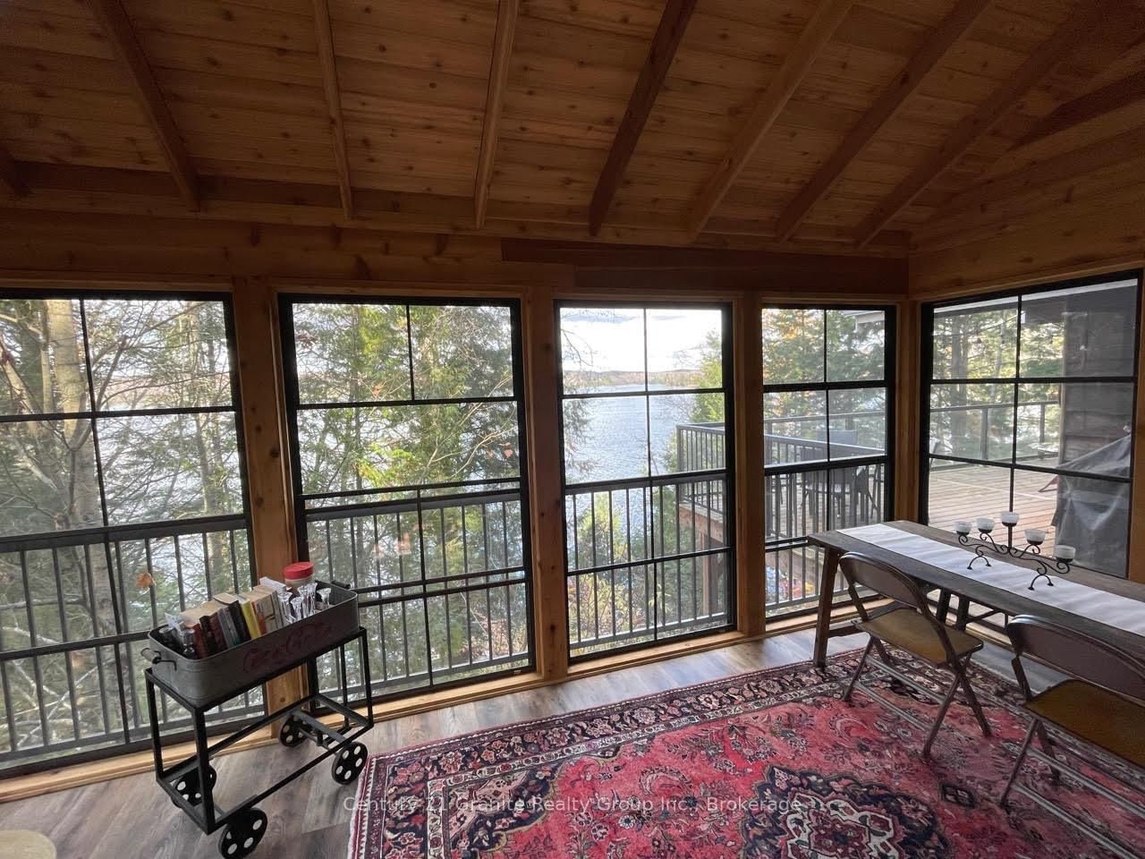 Welcome to this lovely 4-season chalet on spectacular Miskwabi Lake! Large lot with 190 feet of waterfront with clean rock and sand shoreline, and incredible big-lake view. The Chalet on 1038 Broken Paddle Road has 3 bedrooms, 1 bathrooms, and is located on a 144 x 190 ft loton .50-1.99 acres in the community of Dudley . Almost an acre of land, well-treed for great privacy. Nice level area at the waterfront and deep water off the dock - perfect for swimming and boating. Enjoy summer sunsets from the dock. Open-concept main floor features custom kitchen with granite countertops and island, and picture windows framing the awesome lake views. Walkout to large wraparound deck - and new 18' x 18' 3-season screened porch/sunroom with retractable window system - outdoor entertaining at its finest! Main floor has one bedroom and 4-piece bath. Upstairs there are two more bedrooms, including main bedroom facing the lake with its own private balcony. Downstairs there is a cozy rec room with walk out, wood stove, and lower floor laundry. Heated water line with UV system. Plus there's a newer 32' x 16' garage, with separate storage room - great for office space, games room or workshop. Easy access by year-round Municipal road - Broken Paddle is a quiet dead-end road with only 10 cottages. Just 20 minutes to Haliburton village for shopping and services. Miskwabi Lake is part of a 2-lake chain with Long Lake - located at the top of the watershed for exceptional water quality. Enjoy miles of boating, water sports and lake trout fishing on this desirable lake system.