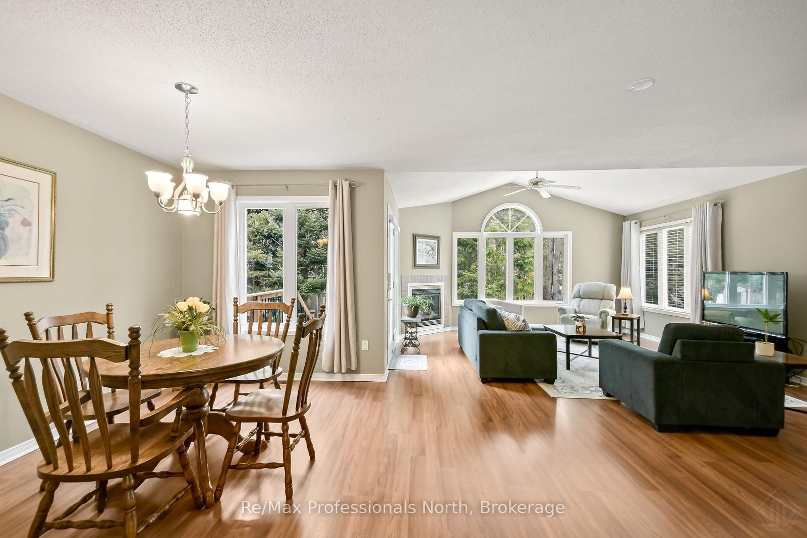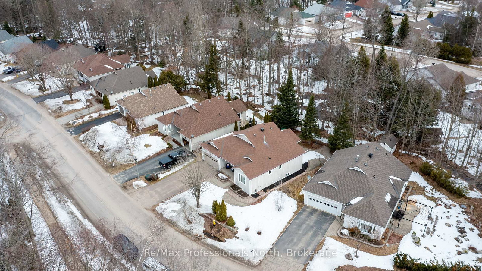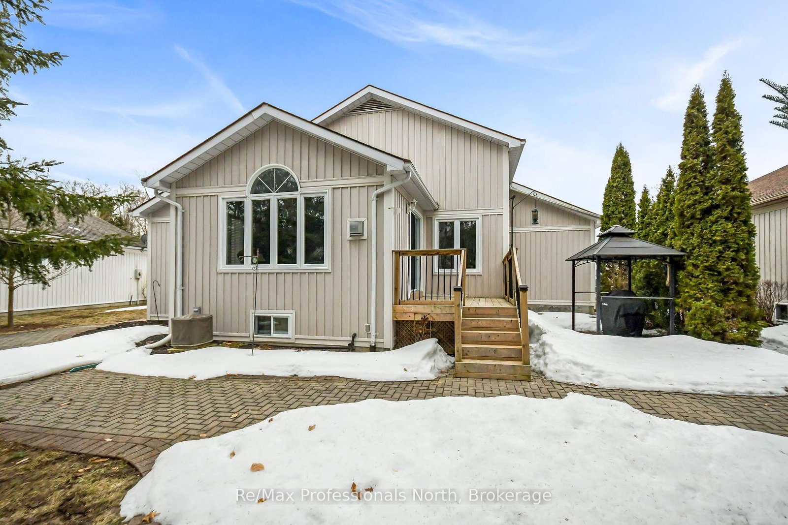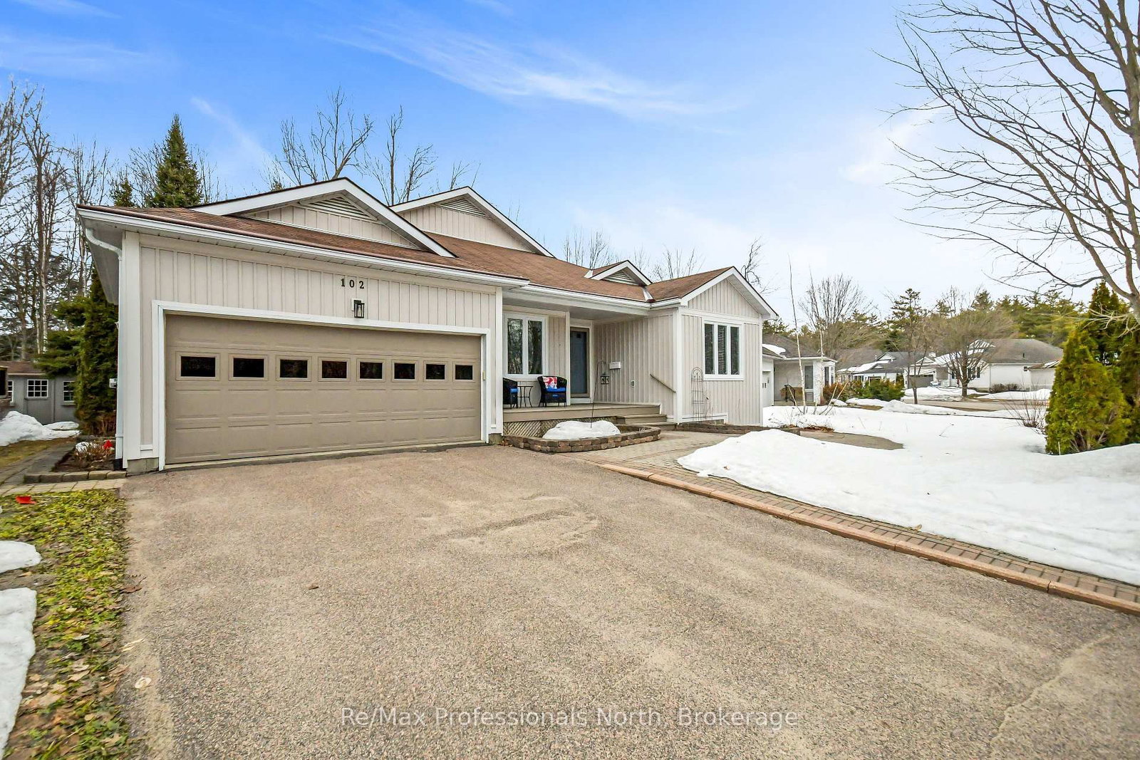 Pride of ownership exudes this bright and airy open-concept bungalow, nestled in sought after Pineridge adult community and backing onto a peaceful woodland setting. The Bungalow on 102 PINERIDGE Gate has 2 bedrooms, 2 bathrooms, and is located on a 137 x 55.77 ft loton < .50 acres in the community of Muskoka (S) . Enjoy your morning coffee or evening relaxation overlooking the gracious rear interlocking patio surrounded by nature. A sheltered front veranda leads into a warm and welcoming foyer, thoughtfully designed with convenient access to the main bathroom perfect after gardening or outdoor projects. The spacious kitchen features a charming breakfast nook and direct access to the attached garage, which fits two vehicles and includes a built-in workbench, rear shelving, as well as a separate man door for added functionality. The inviting living room is the heart of the home, showcasing vaulted ceilings and a cozy corner gas fireplace, creating a comfortable space to enjoy year-round. The primary bedroom offers a walk through double closet and a private ensuite bath. Hard surface flooring throughout adds style and ease of mobility along with lower light switches and wider hallways. The full height (6'6" tall) basement, offers excellent additional development space for storage, a workshop, hobby area, or a fun playroom for visiting grandchildren. Laundry is located in the basement, with mechanical equipment and sump pump. The foundation recently (2025) received excavation and waterproofing to one side to prevent any water penetration which it is now completely dry and functioning well. Conveniently located with easy access to shopping and Highway 11 South for commuting or travel. Residents also enjoy access to the private Pineridge Recreation Centre, with a homeowner's fee of just $380/year.