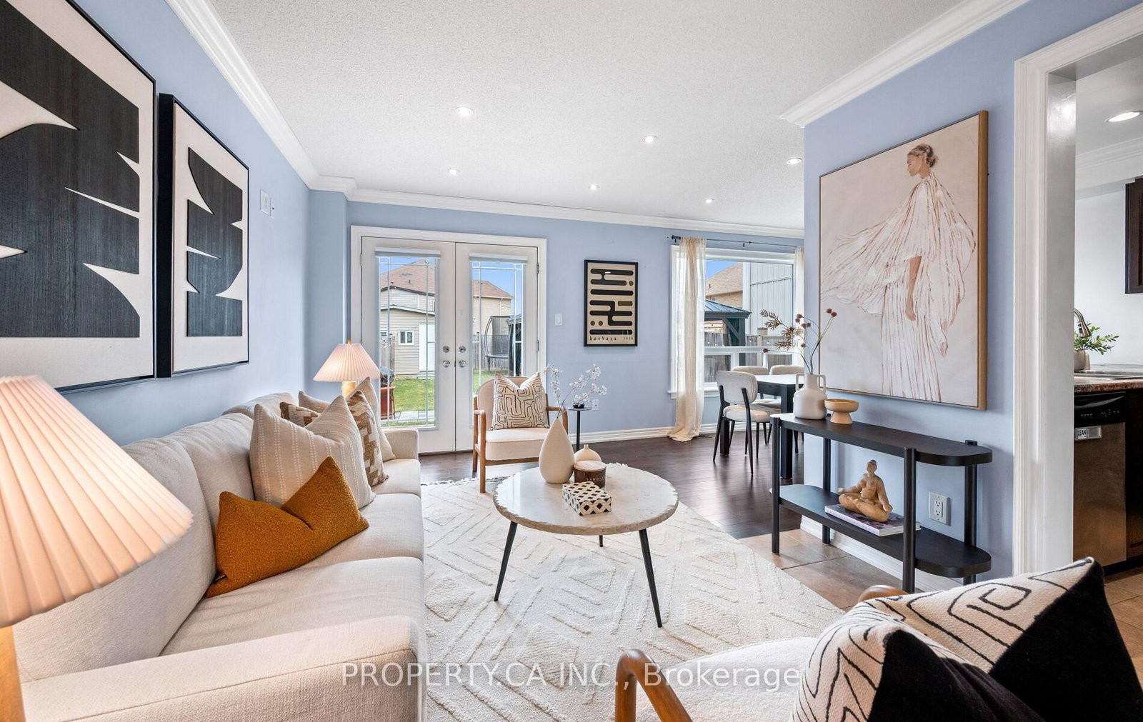 • Living Room: Crown Moulding, W/O To Patio, Open Concept