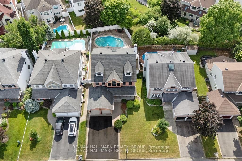 Ultra-unique 3-storey home in prestigious Fallingbrook boasts 6 bedrooms, 4. The 3-Storey on 1404 Montresor Way has 4 bedrooms, 5 bathrooms, and is located on a 100.07 x 50 ft lot in the community of Fallingbrook/Ridgemount .5 baths, and an in-ground pool perfect for the multigenerational family. This charming detached property features a spacious open-concept kitchen designed for the home chef, a formal dining area, great room, and a sunken family room with fireplace, all with gleaming hardwood throughout the main level. You'll also find a convenient main floor laundry and mudroom with side entry to the backyard and access to the double car garage.On the second floor, enjoy the primary wing, which features a walk-in closet, luxurious 5-piece ensuite, and a private owners retreat, along with three other generously sized bedrooms and a full bathroom. The third-level loft offers added flexibility with a walk-in closet and a large 4-piece bathroom perfect as a guest suite, teen retreat, or additional living space. The fully finished basement offers even more room to grow with a second kitchen, large rec room, 2 den/home office rooms, full 4-piece bath, and plenty of storage. Step outside to your private fenced backyard oasis, complete with an in-ground pool, interlock patio, and storage shed, ideal for relaxing or entertaining. Located just minutes from schools, shopping, parks, public transit, walking trails, HWY 174, and Petrie Island!