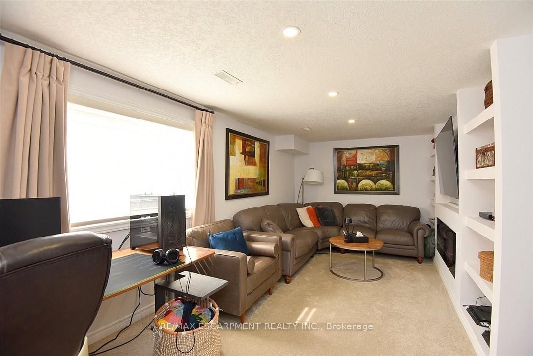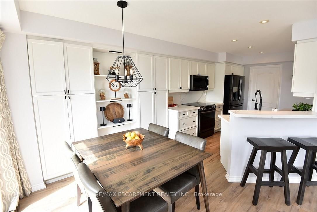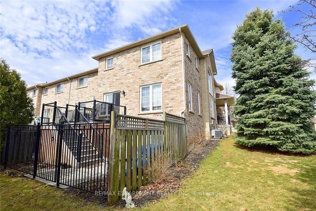 Welcome to this beautifully maintained end-unit townhome in the heart of Ancaster, offering exceptional curb appeal and an impressive amount of living space. The 2-Storey on 7-39 Panabaker Drive has 3 bedrooms, 4 bathrooms, and is located in the community of Ancaster . With approximately 2,452 sq ft of finished living space (1860 sqft above grade + 592 sqft below), this home is ideal for families seeking both comfort and functionality. The main level features a grand double-door entry, elegant Palladian-style windows in the dining area, a main floor office/den, and spacious principal rooms. The updated kitchen offers granite countertops, a breakfast bar, built-in pantry cabinetry, and a bright dinette area, with convenient access to the backyard. A main floor laundry room, updated 2-piece powder room, and custom window treatments complete this level. Upstairs, the generous primary suite includes a beautifully updated ensuite, complemented by two additional bedrooms and a recently renovated 4-piece family bathroom with quality finishes. Newer broadloom adds warmth throughout the second level. The finished lower level provides additional living space with a family room featuring built-in shelving/entertainment unit, a home office area, gym space, and a 2-piece bathroom. Enjoy a fully landscaped, fenced backyard with a composite deck, stone patio, and gated access-perfect for outdoor living and entertaining. Ideally located close to downtown Ancaster, parks, schools including Bishop Tonnos, highway access, and everyday amenities.