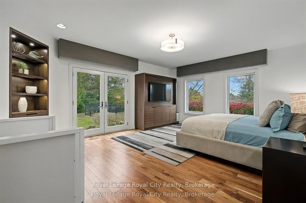 Set high on a hill and surrounded by mature trees and backing onto parkland, this extraordinary residence offers the ultimate in privacy & sophistication. The 2-Storey on 20 Fox Run Drive has 4 bedrooms, 6 bathrooms, and is located on a 363.15 x 326.02 ft lot in the community of Rural Puslinch East . A classic, timeless exterior, perfectly situated in Fox Run Estates, one of the area's most coveted estate communities. Over 7300 sq ft of finished living space, it effortlessly blends elegance, comfort, design, and a touch of pizzazz. Magnificently located within minutes of all amenities as well as major transportation arteries, and yet a peaceful tranquil setting. Step inside and prepare to be impressed. The grand foyer boasting rich walnut flooring is flanked by a handsome home office on one side and an elegant formal dining room on the other - perfect for hosting special occasions. The private primary wing is a true retreat, complete with a newly renovated spa-like ensuite, a custom walk-in closet with Birdseye Maple cabinetry, and a private deck leading to a hot tub - the perfect spot to unwind at day's end. The state-of-the-art Downsview kitchen is a chef's dream, featuring an enormous granite island and abundant workspace for multiple cooks to collaborate in style. The bright breakfast area enjoys scenic countryside views, while the adjacent 2 storey sitting area offers a sunny sanctuary. This wing also provides access to a private front courtyard, a second main-floor powder room, laundry room and 3 car garage, along with convenient access to the rear yard and pool area. At the heart of the home, the family room is defined by a granite faced gas fireplace. Custom cabinetry houses an entertainment centre and French doors lead to an expansive rear deck overlooking the pool - a seamless blend of indoor and outdoor living. Upstairs, 2 bedrooms share a full Jack & Jill bath Third bedroom features its own private ensuite. Prepare to be dazzled once again on the lower level, where a recent renovation has transformed the space into an entertainer's dream.
