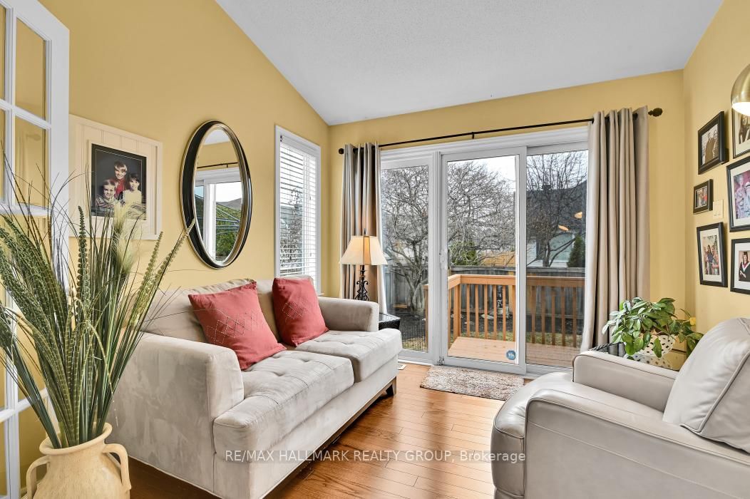 Welcome to 18 Spinney Way in Barrhaven. The Bungalow on 18 Spinney Way has 2 bedrooms, 3 bathrooms, and is located on a 101.61 x 55.97 ft lot in the community of Barrhaven - Longfields . This beautiful Tartan Banff bungalow model features approximately 1,747 sq. ft. of living space. The main level offers a bright, light-filled open-concept layout, with vaulted ceilings and large windows. It includes a large living room, dining area, 3-sided gas fireplace and kitchen with island, all with hardwood floors. You will find a spacious foyer, a large study/office at the entrance, suitable for professionals working from home and meeting clients. It boasts two bedrooms. Some families have adapted the office to serve as a third main-floor bedroom. Recent updates to the home include new hardwood floors, fresh neutral paint, refinished kitchen cabinets, and a new dishwasher. The double garage comes with built-in shelving, has been freshly painted, and features an entry to the main floor laundry room, along with a new garage door opener. The primary suite has new hardwood floors and an updated bathroom, with a glass shower and double sinks. A bright solarium off the dining room has new hardwood floors, and leads to a fully fenced south-facing backyard, complete with a deck, patio and perennial gardens. The lower level features an additional bedroom, 4 pc bathroom and a large family room with a gas fireplace, currently rented. The front of the home showcases a brick patio overlooking a serene forest park. The neutral carpets on the stairs and in the lower level were replaced in 2022. The roof was replaced approximately 7-8 years ago, and the furnace was replaced in approximately 2019 (currently rented). Located on a quiet street, this community was originally built with 50 bungalows on two streets and is friendly to those aged 55 and older. The area is conveniently close to bus routes, stores, MOVATI, and excellent Catholic and public elementary and high schools within walking distance. You will also find great neighbours in this welcoming community! 24-hour irrevocable on offers.