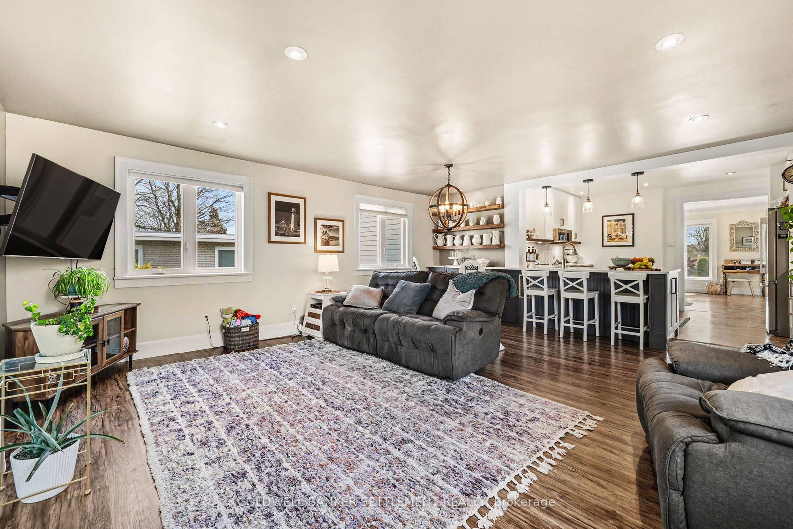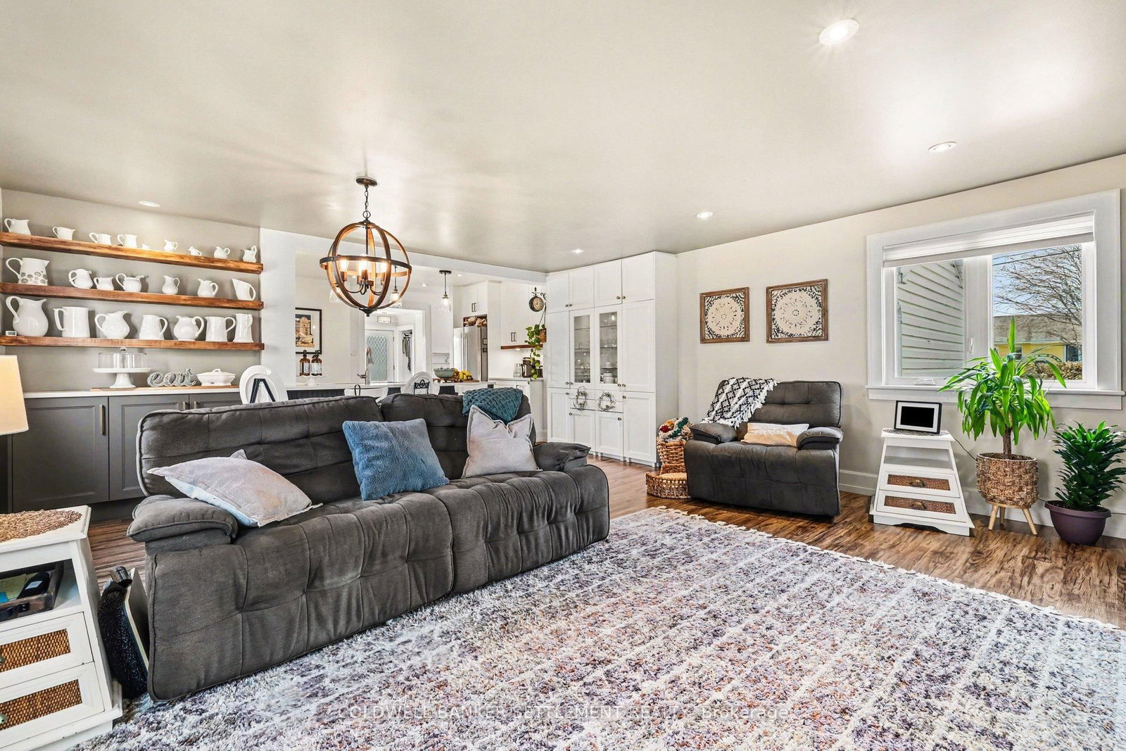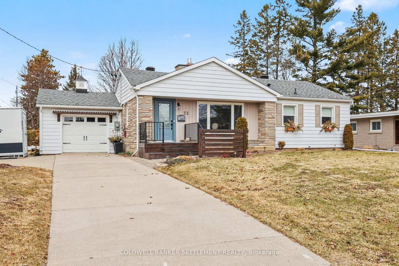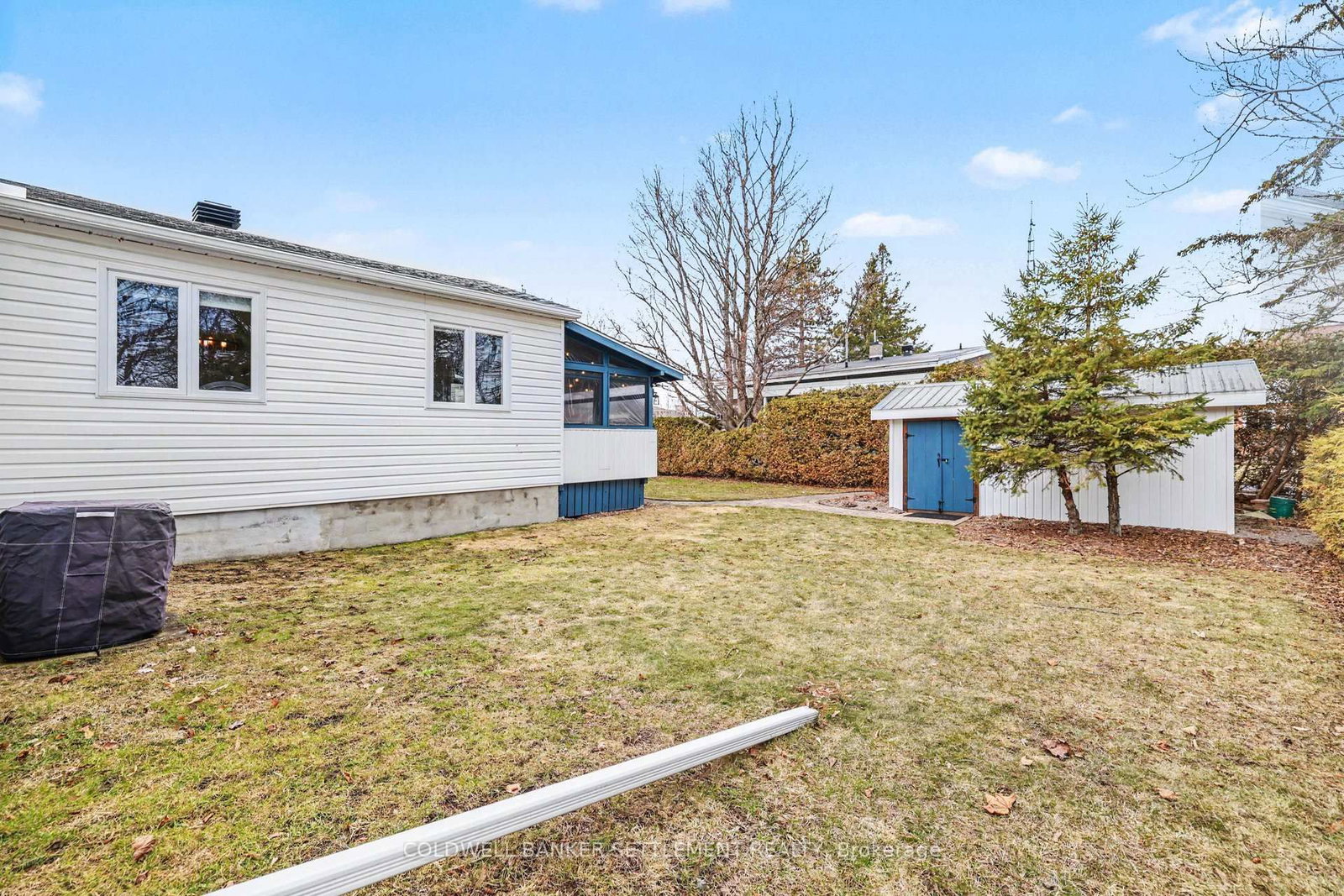 Tucked away on a quiet in-town street, this fully finished and tastefully upgraded bungalow offers the perfect blend of comfort, style, and functionality-just moments from all amenities while enjoying a peaceful, private setting. The Bungalow on 22 Broadview Avenue W has 3 bedrooms, 2 bathrooms, and is located on a 114.86 x 79.85 ft lot in the community of Smiths Falls . Situated on a desirable corner lot and bordered by a mature cedar hedge, the backyard provides exceptional privacy and a serene outdoor retreat complete with a patio, a charming 3-season sunroom overlooking the yard, and a storage shed with hydro. Inside, the home showcases a thoughtfully designed layout. The open concept dining and sitting area is anchored by a cozy gas fireplace, creating an inviting space for both everyday living and entertaining. The beautifully updated kitchen is truly a standout, featuring Corian countertops, a large breakfast bar, marble tile backsplash, elegant gold hardware, wood-accent open shelving, built-in cabinetry, and a dedicated coffee station. The kitchen flows seamlessly into the living area and opens directly to the sunroom, extending your living space outdoors. The main floor offers three well-sized bedrooms and a stylish 5-piece bathroom, providing comfortable accommodation for family or guests. The attached garage with interior entry adds convenience and functionality, complete with storage shelving and a workbench area for projects and organization. The fully finished lower level has been designed with versatility in mind, offering a spacious games area in the welcoming rec room with an artfully designed built-in bar and electric fireplace, a large office space, and a flexible room perfect for overnight guests. Additional highlights include abundant storage with custom built-ins and a barn door cupboard, a beautifully finished laundry room, and a 3-piece bathroom with shower. This is a rare opportunity to enjoy refined bungalow living in a quiet, in-town location-where thoughtful upgrades, flexible living spaces, and a private outdoor setting come together seamlessly.