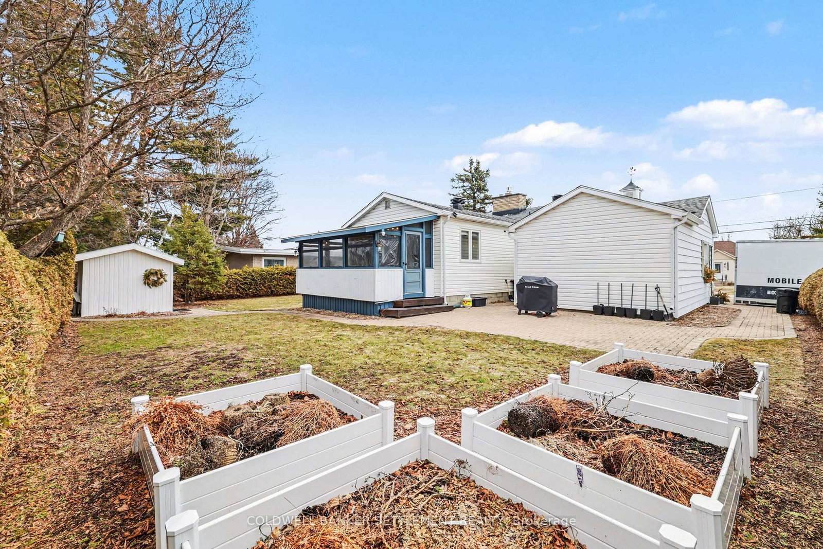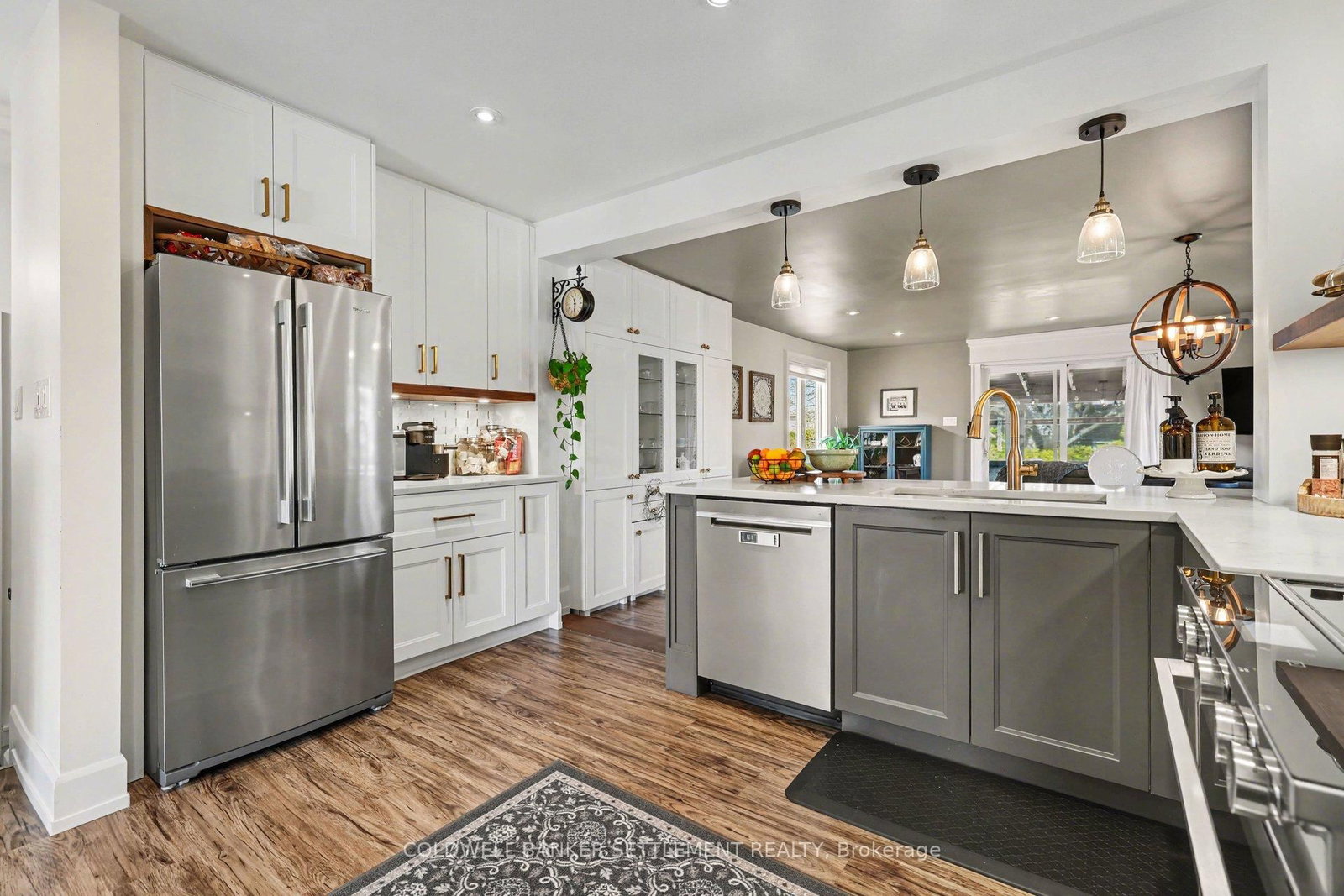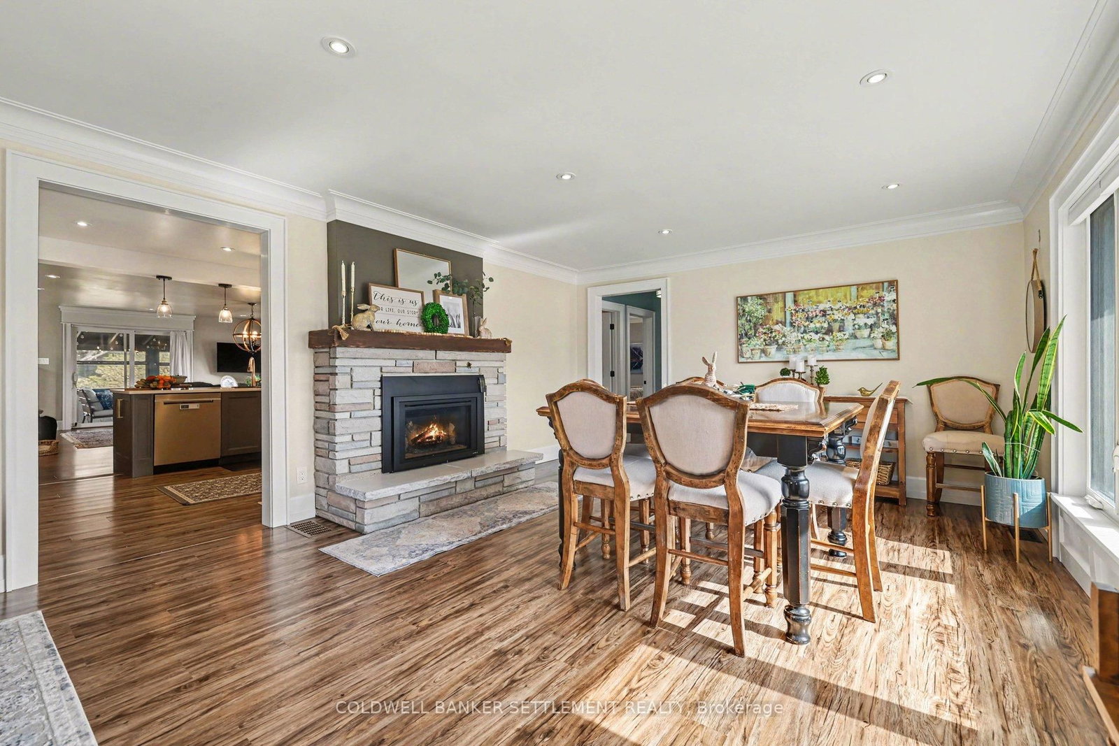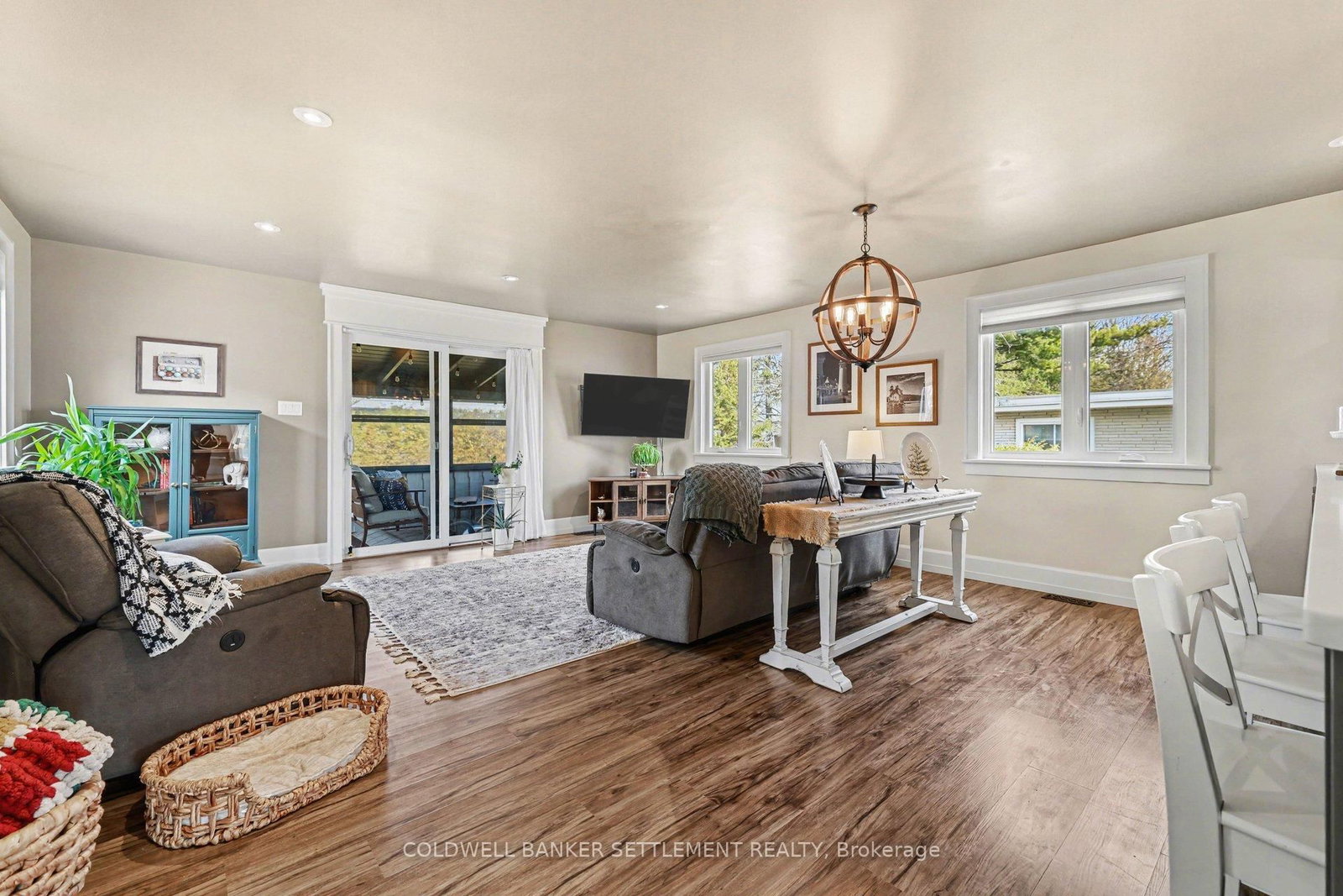 Tucked away on a quiet in-town street, this fully finished and tastefully upgraded bungalow offers the perfect blend of comfort, style, and functionality-just moments from all amenities while enjoying a peaceful, private setting. The Bungalow on 22 Broadview Avenue W has 3 bedrooms, 2 bathrooms, and is located on a 114.86 x 79.85 ft lot in the community of Smiths Falls . Situated on a desirable corner lot and bordered by a mature cedar hedge, the backyard provides exceptional privacy and a serene outdoor retreat complete with a patio, a charming 3-season sunroom overlooking the yard, and a storage shed with hydro. Inside, the home showcases a thoughtfully designed layout. The open concept dining and sitting area is anchored by a cozy gas fireplace, creating an inviting space for both everyday living and entertaining. The beautifully updated kitchen is truly a standout, featuring Corian countertops, a large breakfast bar, marble tile backsplash, elegant gold hardware, wood-accent open shelving, built-in cabinetry, and a dedicated coffee station. The kitchen flows seamlessly into the living area and opens directly to the sunroom, extending your living space outdoors. The main floor offers three well-sized bedrooms and a stylish 5-piece bathroom, providing comfortable accommodation for family or guests. The attached garage with interior entry adds convenience and functionality, complete with storage shelving and a workbench area for projects and organization. The fully finished lower level has been designed with versatility in mind, offering a spacious games area in the welcoming rec room with an artfully designed built-in bar and electric fireplace, a large office space, and a flexible room perfect for overnight guests. Additional highlights include abundant storage with custom built-ins and a barn door cupboard, a beautifully finished laundry room, and a 3-piece bathroom with shower. This is a rare opportunity to enjoy refined bungalow living in a quiet, in-town location-where thoughtful upgrades, flexible living spaces, and a private outdoor setting come together seamlessly.