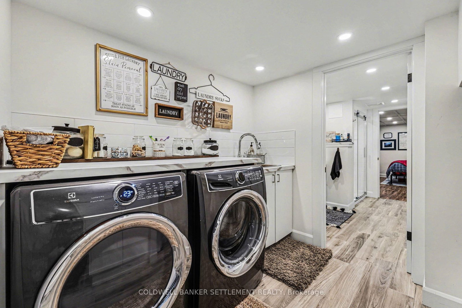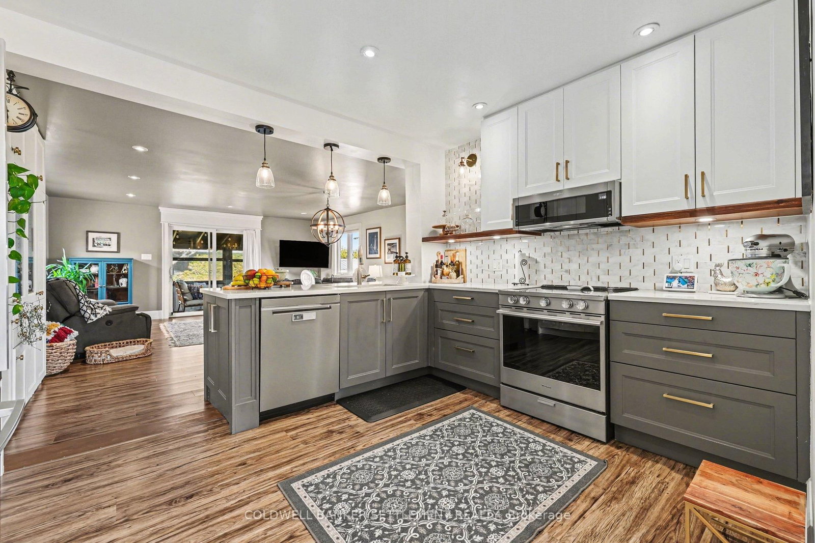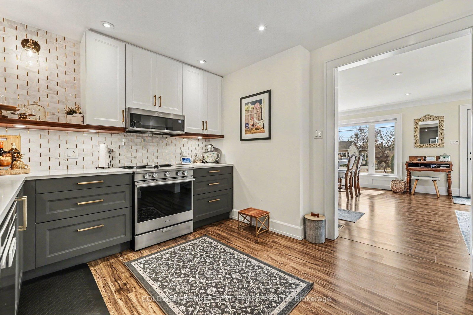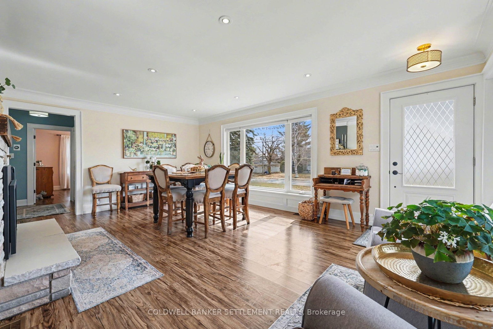 Tucked away on a quiet in-town street, this fully finished and tastefully upgraded bungalow offers the perfect blend of comfort, style, and functionality-just moments from all amenities while enjoying a peaceful, private setting. The Bungalow on 22 Broadview Avenue W has 3 bedrooms, 2 bathrooms, and is located on a 114.86 x 79.85 ft lot in the community of Smiths Falls . Situated on a desirable corner lot and bordered by a mature cedar hedge, the backyard provides exceptional privacy and a serene outdoor retreat complete with a patio, a charming 3-season sunroom overlooking the yard, and a storage shed with hydro. Inside, the home showcases a thoughtfully designed layout. The open concept dining and sitting area is anchored by a cozy gas fireplace, creating an inviting space for both everyday living and entertaining. The beautifully updated kitchen is truly a standout, featuring Corian countertops, a large breakfast bar, marble tile backsplash, elegant gold hardware, wood-accent open shelving, built-in cabinetry, and a dedicated coffee station. The kitchen flows seamlessly into the living area and opens directly to the sunroom, extending your living space outdoors. The main floor offers three well-sized bedrooms and a stylish 5-piece bathroom, providing comfortable accommodation for family or guests. The attached garage with interior entry adds convenience and functionality, complete with storage shelving and a workbench area for projects and organization. The fully finished lower level has been designed with versatility in mind, offering a spacious games area in the welcoming rec room with an artfully designed built-in bar and electric fireplace, a large office space, and a flexible room perfect for overnight guests. Additional highlights include abundant storage with custom built-ins and a barn door cupboard, a beautifully finished laundry room, and a 3-piece bathroom with shower. This is a rare opportunity to enjoy refined bungalow living in a quiet, in-town location-where thoughtful upgrades, flexible living spaces, and a private outdoor setting come together seamlessly.